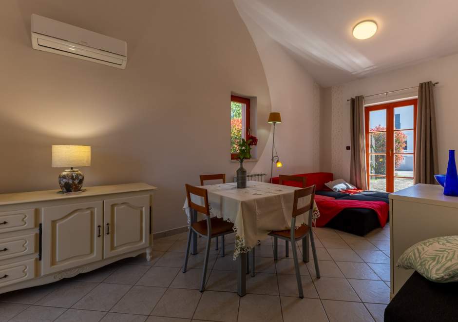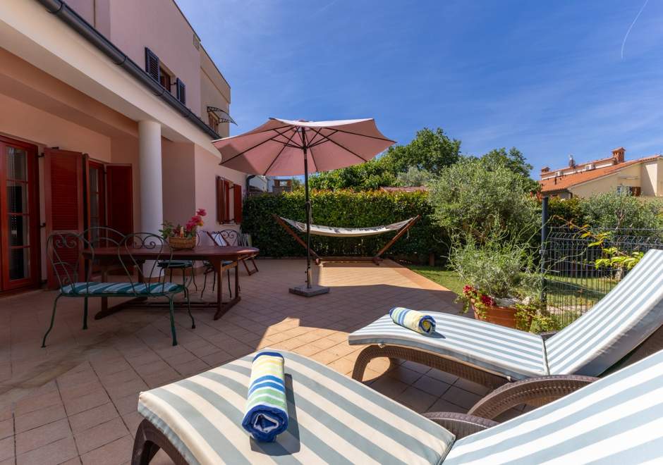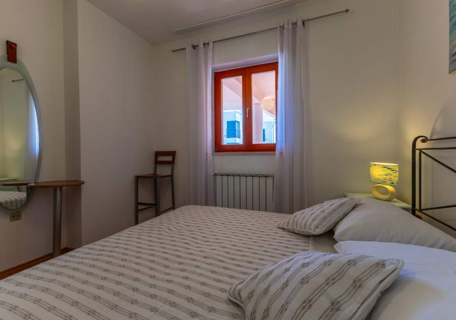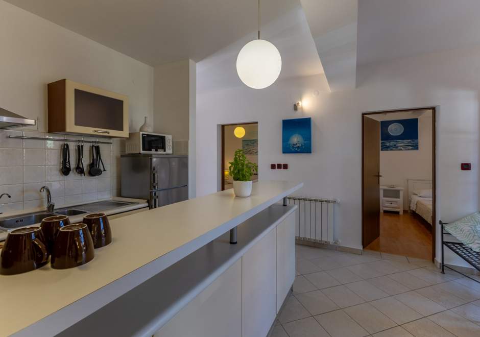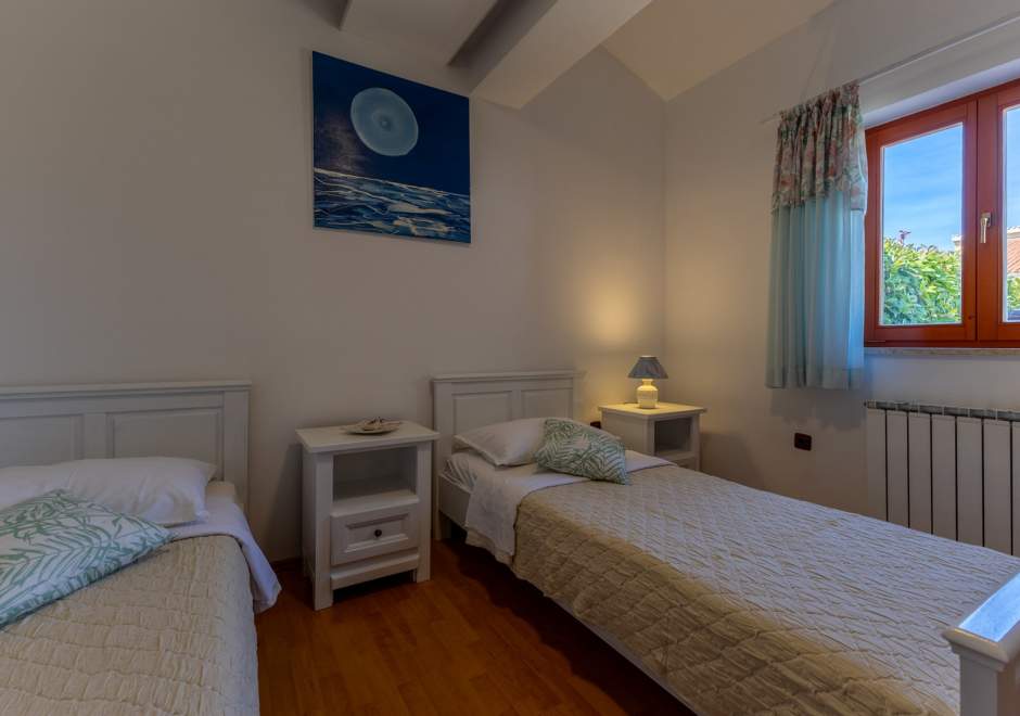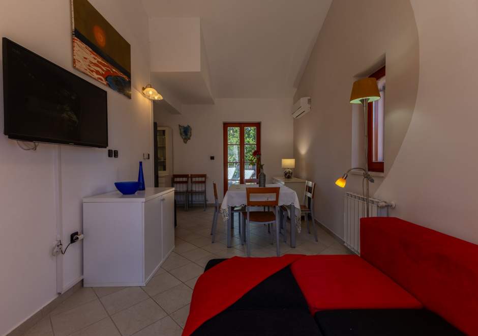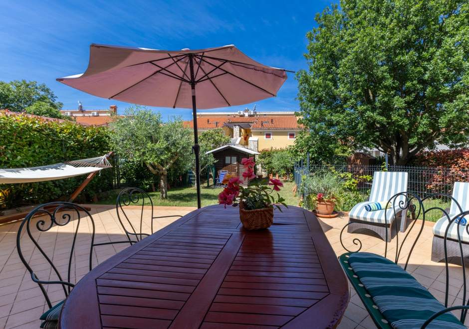Dieses komfortable und geräumige Apartment im ruhigen Dorf Volme in der Nähe von Pula ist ideal für einen Familienurlaub oder einen Aufenthalt mit Freunden. Es verfügt über zwei Schlafzimmer – eines mit Doppelbett, das andere mit zwei Einzelbetten –, ein geräumiges Wohnzimmer mit angeschlossenem Esszimmer und voll ausgestatteter Küche sowie ein modernes Badezimmer mit Waschmaschine. Der größte Vorteil dieses Apartments ist die große private Terrasse mit Garten – ideal zum Entspannen und Essen im Freien. Gästen steht außerdem ein privater Parkplatz zur Verfügung. Der erste Strand ist nur wenige Gehminuten entfernt. Haustiere sind gegen Gebühr willkommen. Die Lage ist ideal für Radsportbegeisterte und Liebhaber der Naturstrände am Kap Kamenjak.