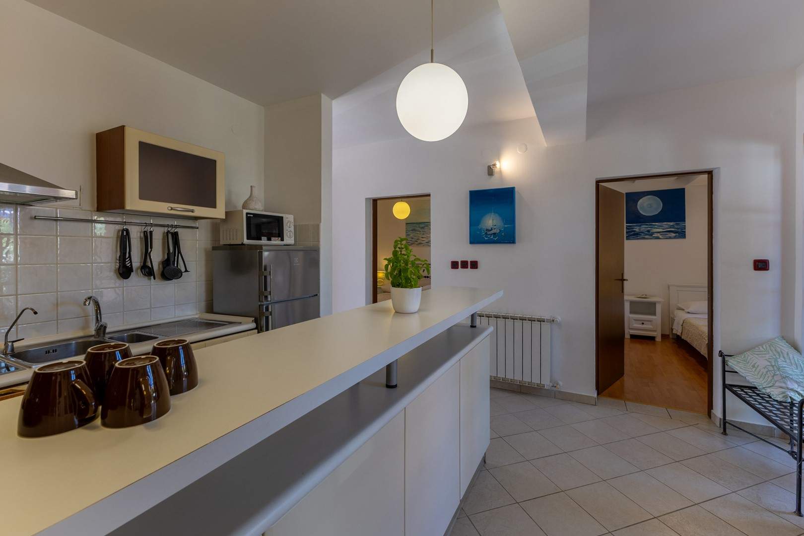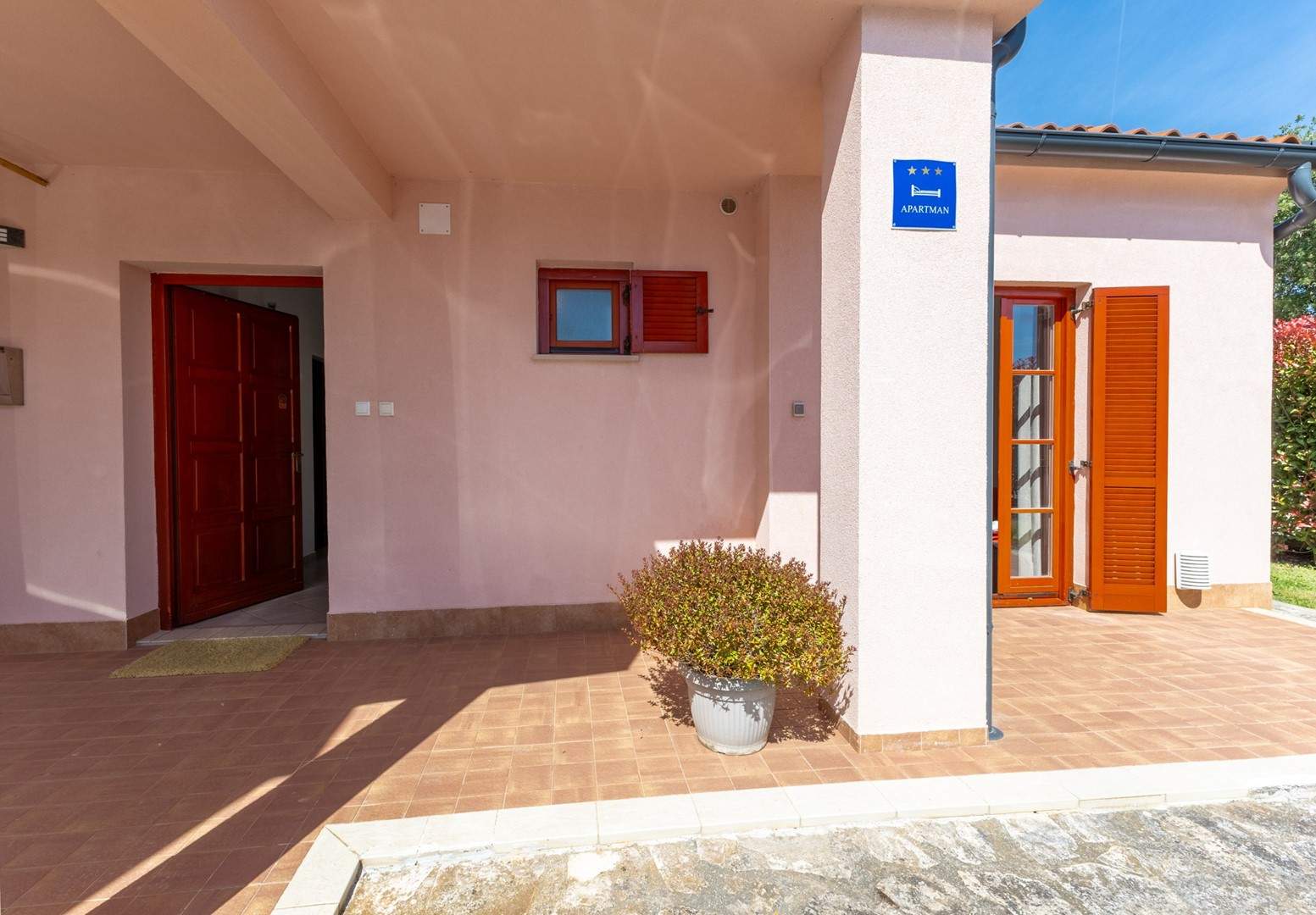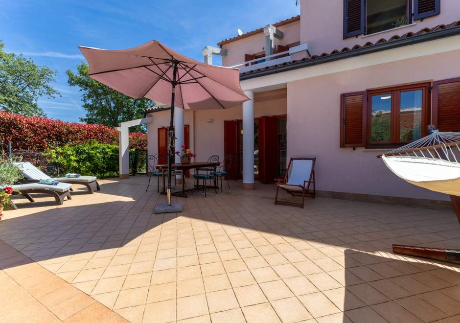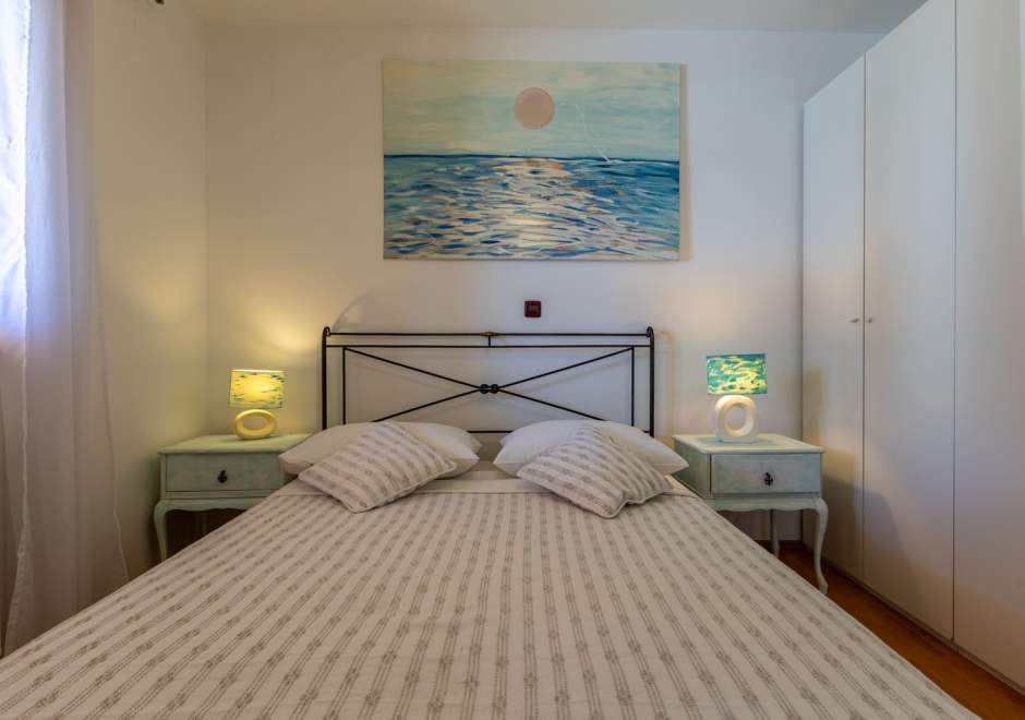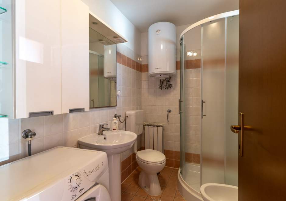 Dieses komfortable und geräumige Apartment im ruhigen Dorf Volme in der Nähe von Pula ist ideal für einen Familienurlaub oder einen Aufenthalt mit Freunden. Es verfügt über zwei Schlafzimmer – eines mit Doppelbett, das andere mit zwei Einzelbetten –, ein geräumiges Wohnzimmer mit angeschlossenem Esszimmer und voll ausgestatteter Küche sowie ein modernes Badezimmer mit Waschmaschine. Der größte Vorteil dieses Apartments ist die große private Terrasse mit Garten – ideal zum Entspannen und Essen im Freien. Gästen steht außerdem ein privater Parkplatz zur Verfügung. Der erste Strand ist nur wenige Gehminuten entfernt. Haustiere sind gegen Gebühr willkommen. Die Lage ist ideal für Radsportbegeisterte und Liebhaber der Naturstrände am Kap Kamenjak.