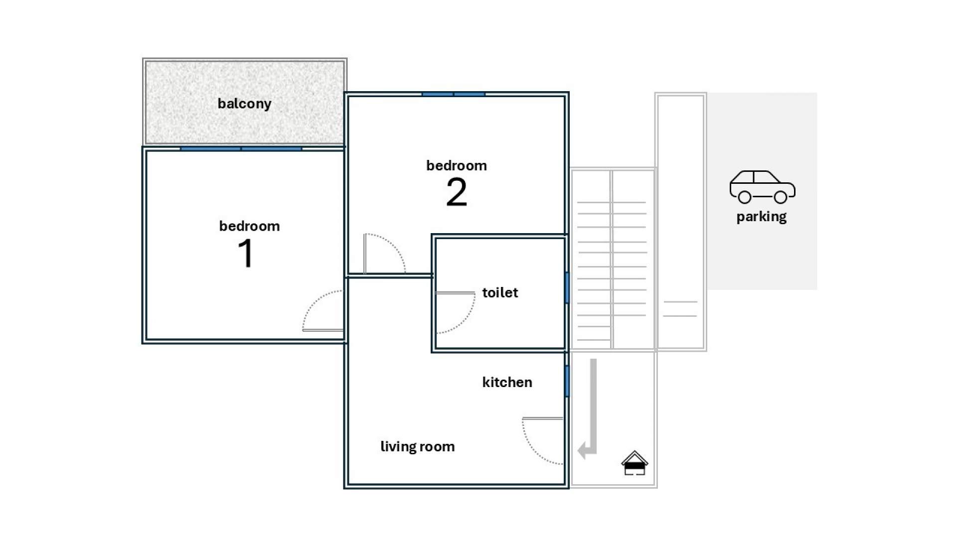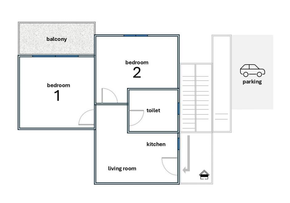 Die Wohnung befindet sich im ersten Stock eines Einfamilienhauses und ist ideal für bis zu 5 Personen. Sie verfügt über eine voll ausgestattete Küche mit Essbereich, zwei komfortable Schlafzimmer, ein Badezimmer und einen geräumigen Balkon, der zum Entspannen im Freien einlädt.