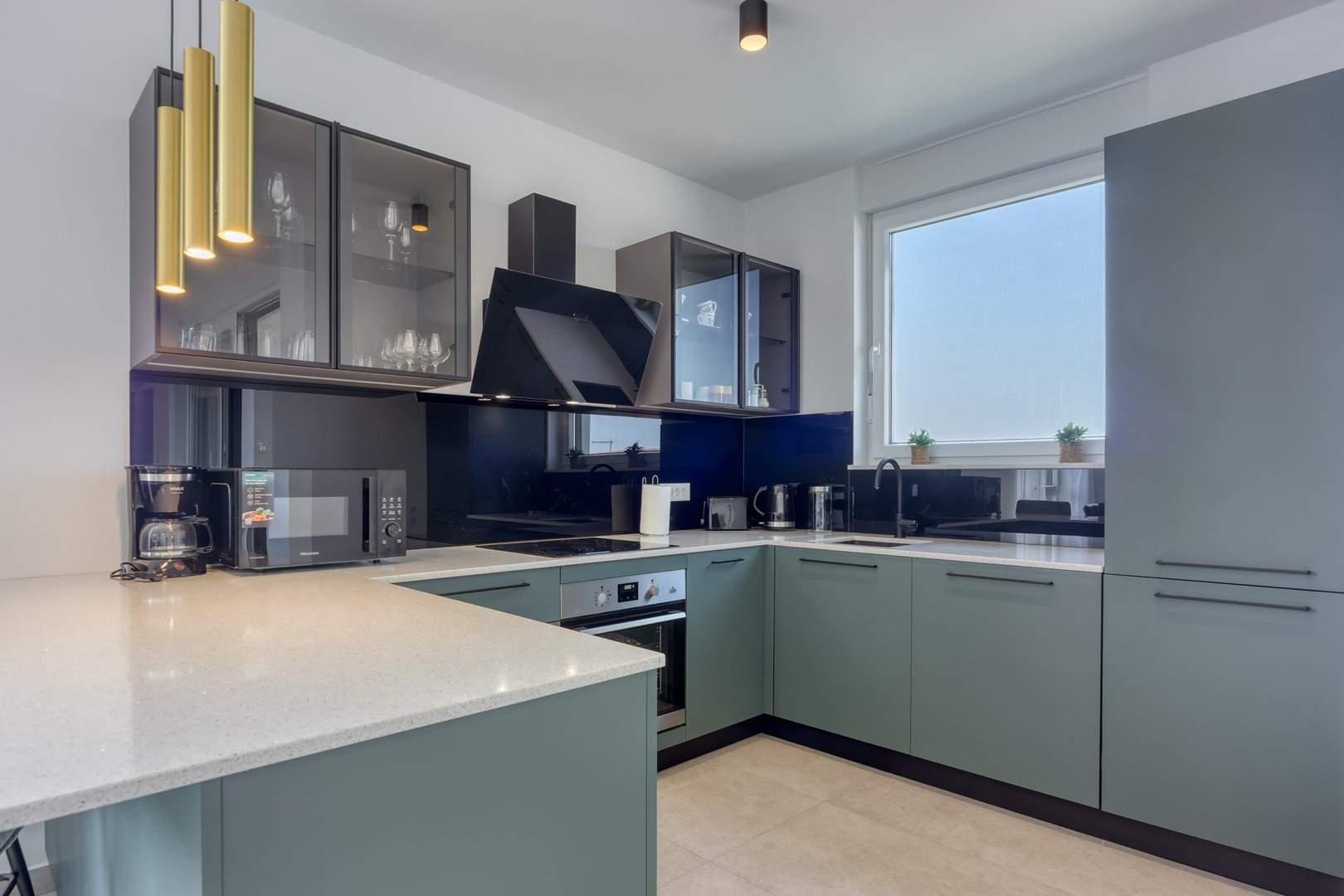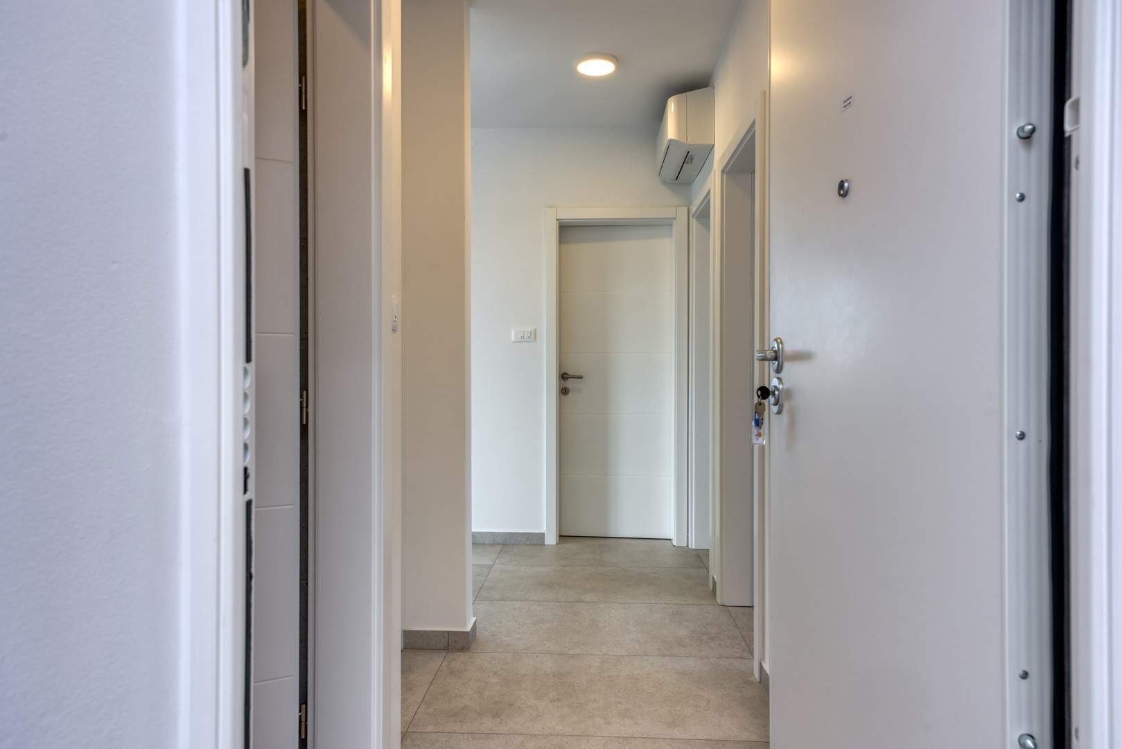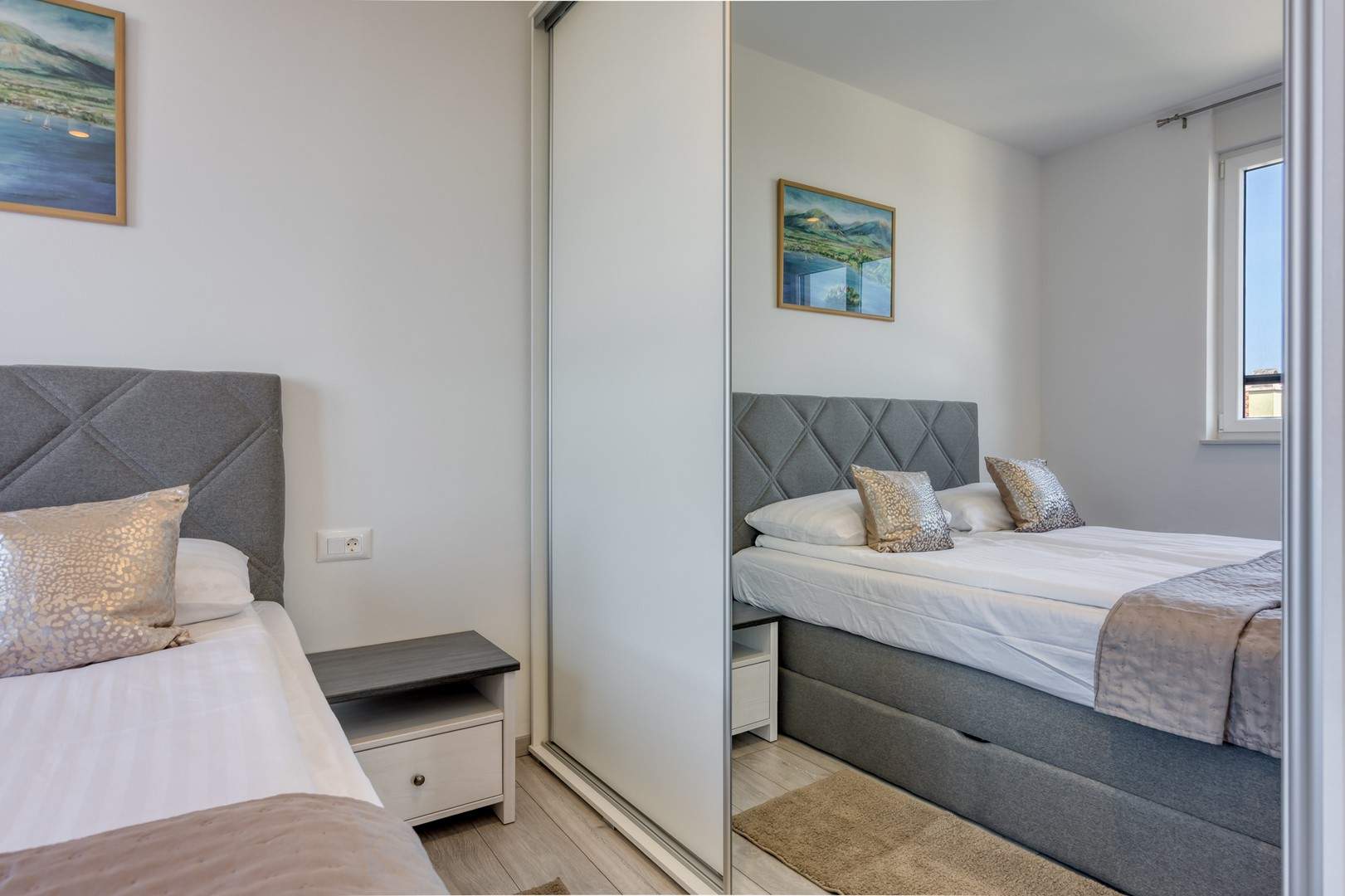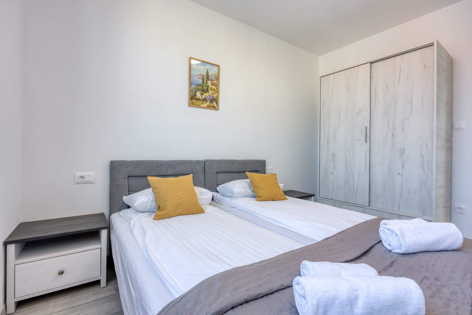Das modern und komfortabel eingerichtete Apartment Monika Nr. 4 befindet sich im 2. Stock eines Neubau-Apartmenthauses und ist ideal für einen Familienurlaub oder eine Gruppe von Freunden. Das Apartment verfügt über ein geräumiges Wohnzimmer mit einer voll ausgestatteten Küche, die mit allen notwendigen Geräten und Annehmlichkeiten ausgestattet ist. Der Balkon bietet zusätzlichen Komfort und die Möglichkeit, die frische Luft mit Blick auf die Stadt und das Meer in der Ferne zu genießen.