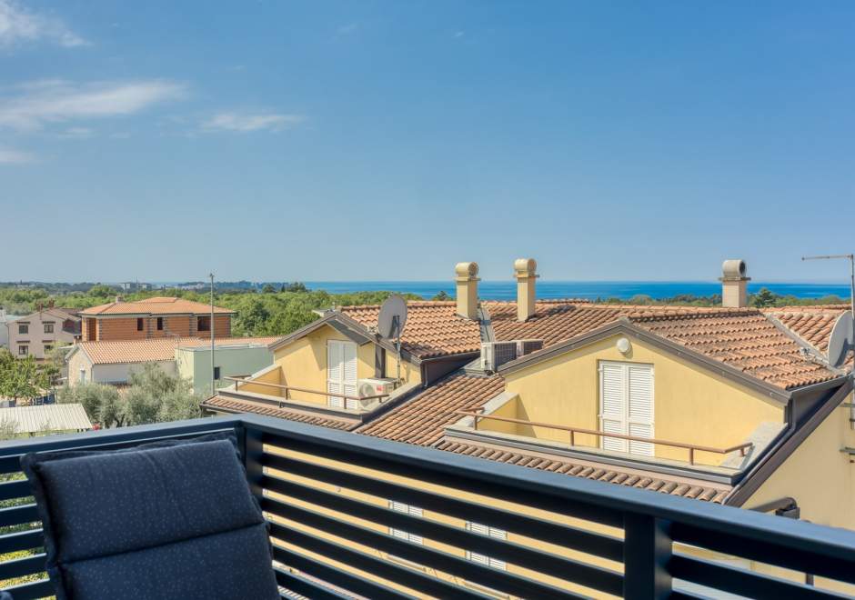 Modern eingerichtetes Apartment mit 2 Schlafzimmern, einem schönen Balkon, privatem Parkplatz und Meerblick
