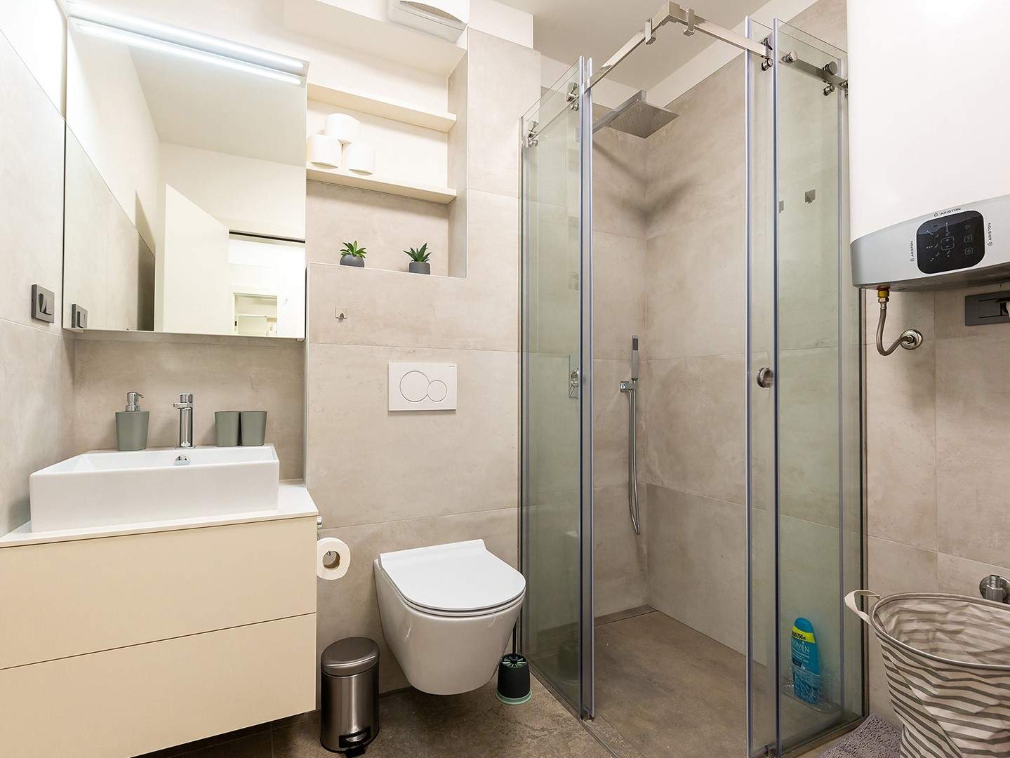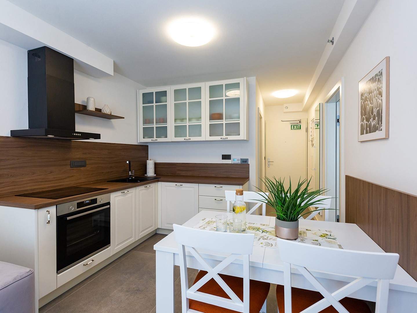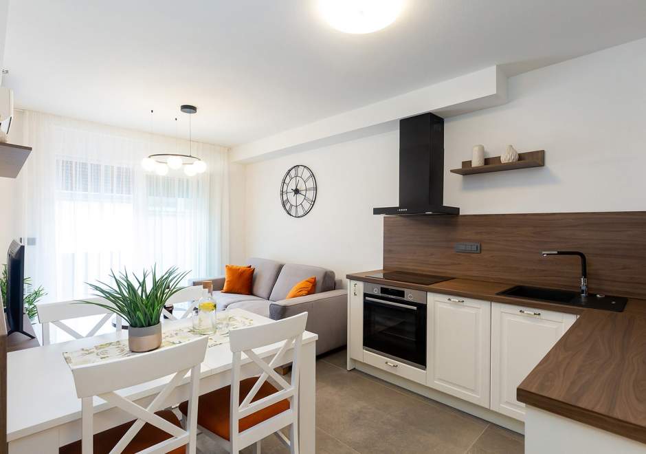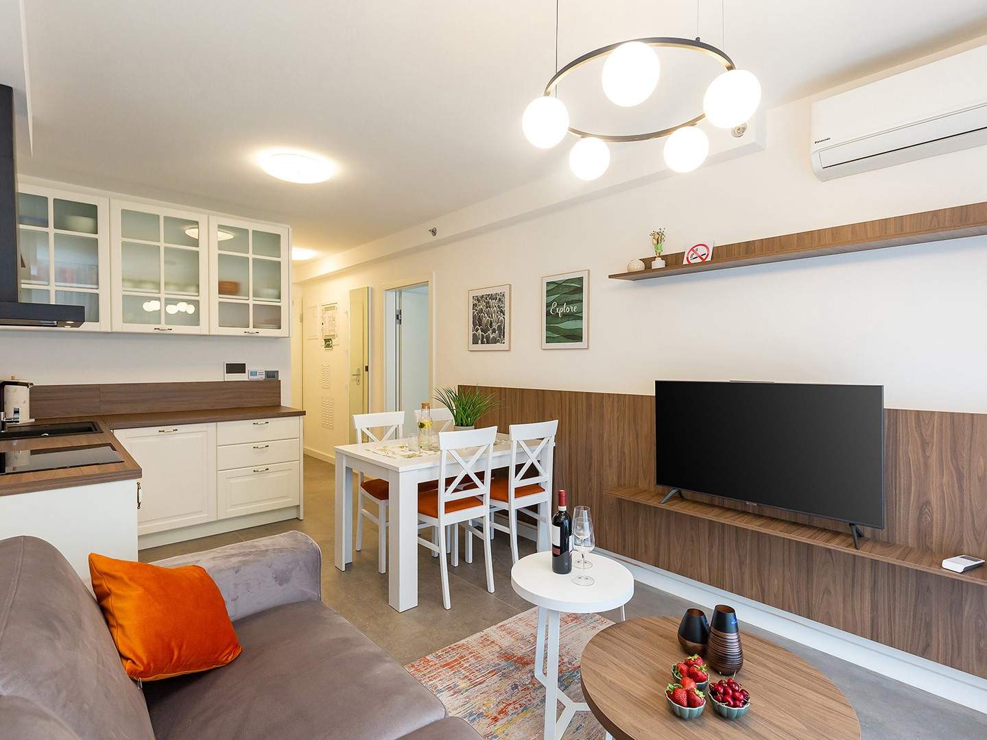 Das voll klimatisierte Apartment mit den 34qm eignet sich ideal für Pärchen. Seine Lage bietet seinen Gästen einen ruhigen Urlaub und zur gleichen Zeit ist es in der Nähe der Strände, Cafés, Restaurants. Im ersten Stock gelegen Wohnung verfügt über ein geräumiges Wohn- / Esszimmer mit Balkon, eine voll ausgestattete offene Küche mit Geschirrspüler, ein komfortables Schlafzimmer mit Kingsize-Doppelbett und einem modernen Badezimmer.