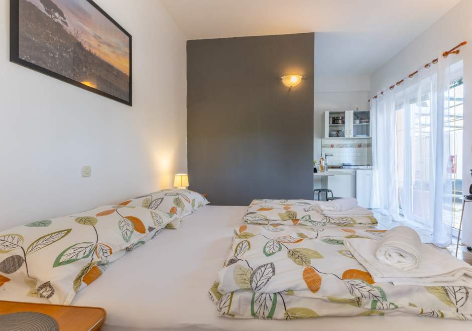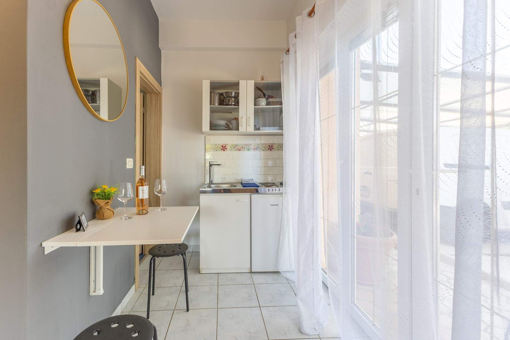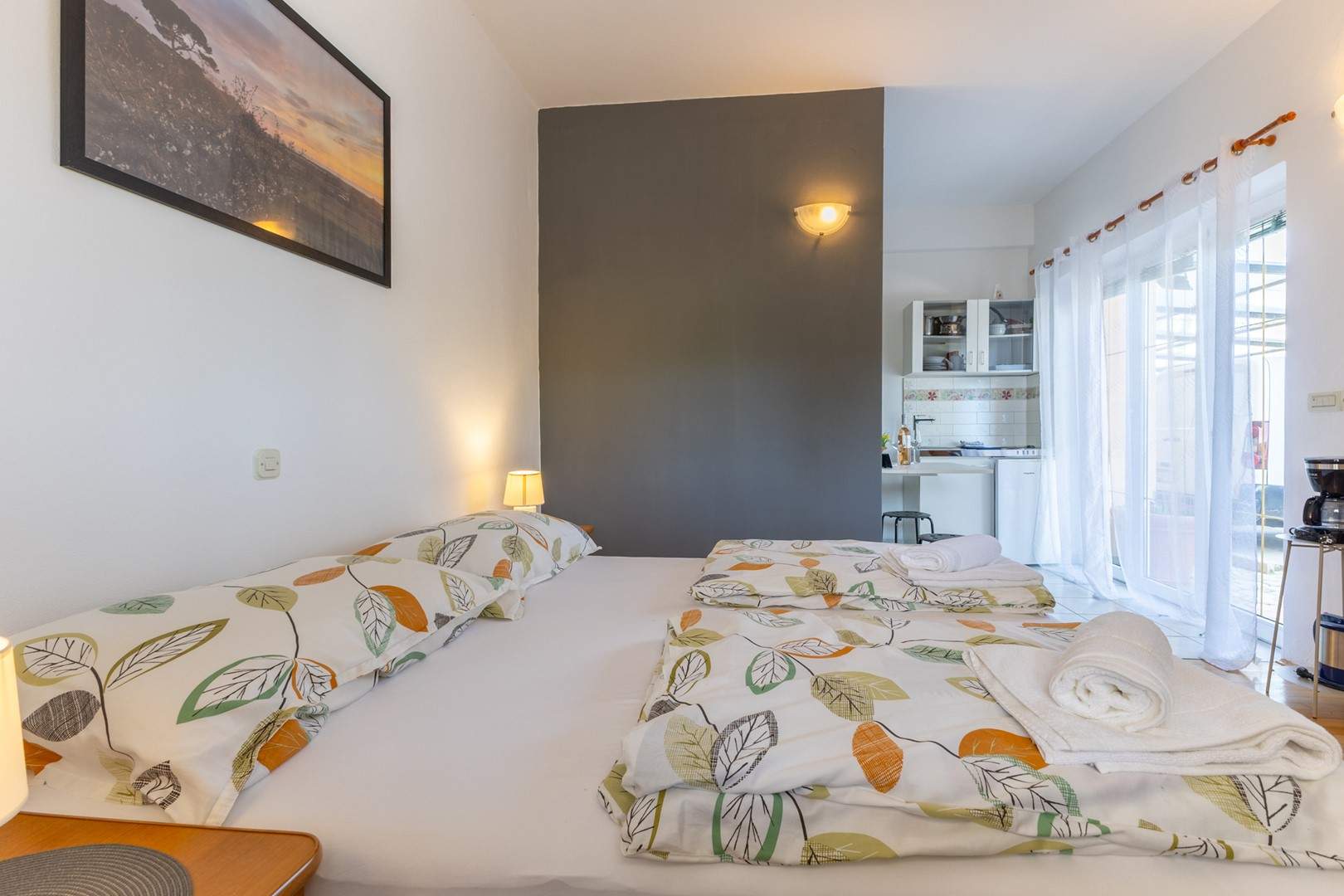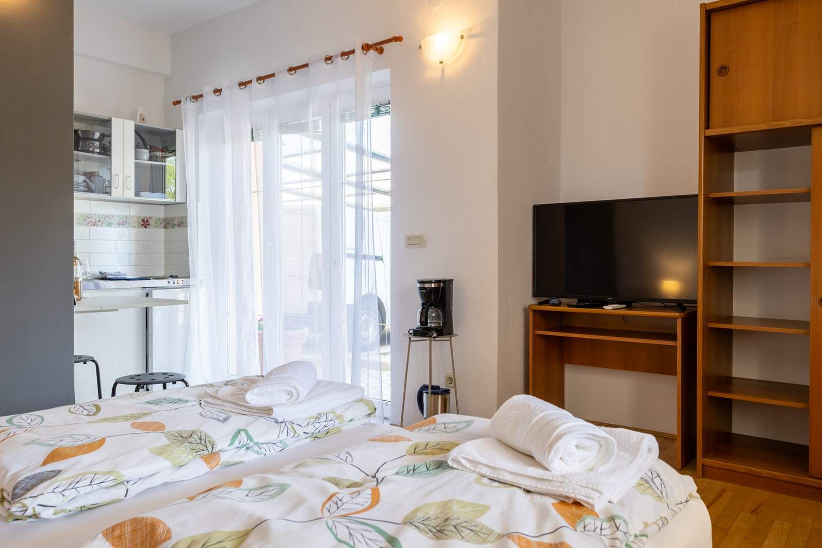 Ein gemütliches Studio-Apartment in der ruhigen Gegend von Červar bei Poreč ist die perfekte Wahl für einen entspannten Urlaub am Meer. Es befindet sich im Erdgeschoss und bietet somit leichten Zugang und zusätzlichen Komfort, insbesondere für Paare oder Alleinreisende. Das Apartment bietet Platz für bis zu 2 Personen und ist funktional und komfortabel eingerichtet. Der offene Wohnbereich umfasst einen Schlafbereich, eine voll ausgestattete Küchenzeile, einen Essbereich sowie ein eigenes Badezimmer. Alle wichtigen Haushaltsgeräte, Küchenutensilien, Bettwäsche und Handtücher stehen zur Verfügung. Die hellen und einladenden Räumlichkeiten eignen sich ideal für Kurztrips und längere Aufenthalte. Der nächste Strand ist nur 10 Gehminuten entfernt, sodass Sie das Meer auch ohne Auto genießen können. Geschäfte, Restaurants und andere Annehmlichkeiten sind ebenfalls bequem zu erreichen, was dieses Studio zu einem praktischen und angenehmen Ausgangspunkt für Ihren Urlaub macht.