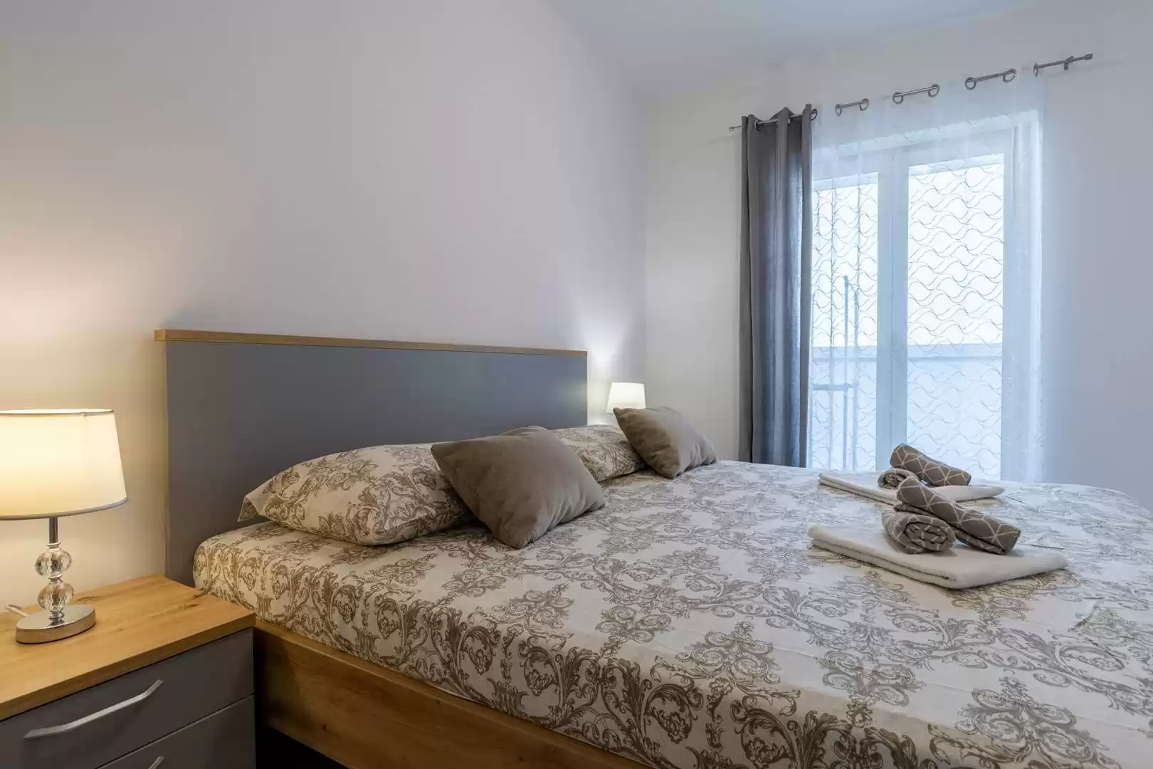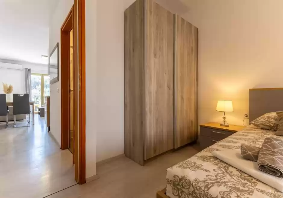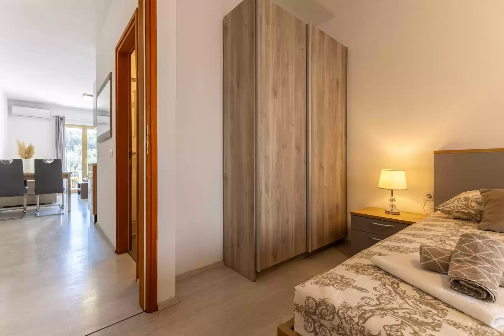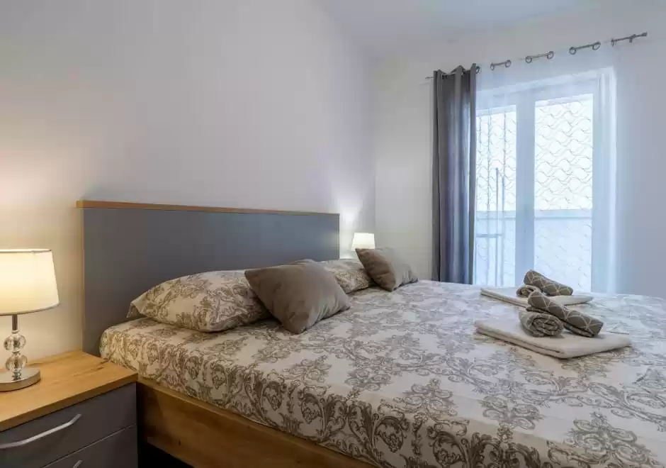 Die 4-Personen-Wohnung befindet sich im zweiten Stock in einem ruhigen Teil von Vrsar und ist ideal für einen erholsamen Urlaub. Sie besteht aus einem Schlafzimmer mit einem komfortablen Doppelbett und einem Wohnzimmer mit Schlafcouch und eignet sich daher perfekt für eine Familie oder eine kleinere Gruppe. Den Gästen stehen eine voll ausgestattete Küche mit Essbereich, ein Badezimmer mit Dusche und Waschmaschine sowie ein Balkon zur Verfügung, der sich ideal für den Morgenkaffee oder entspannte Abende eignet. Zur Wohnung gehört außerdem ein sicherer Parkplatz. Der Eigentümer stellt außerdem Parkkarten für das Parken im Zentrum von Vrsar zur Verfügung. Sie liegt etwa 1000 Meter vom Meer und 800 Meter vom Zentrum von Vrsar entfernt. Dadurch sind Strände, Restaurants und alle wichtigen Einrichtungen bequem zu erreichen, während Sie gleichzeitig Ruhe und Privatsphäre genießen.
