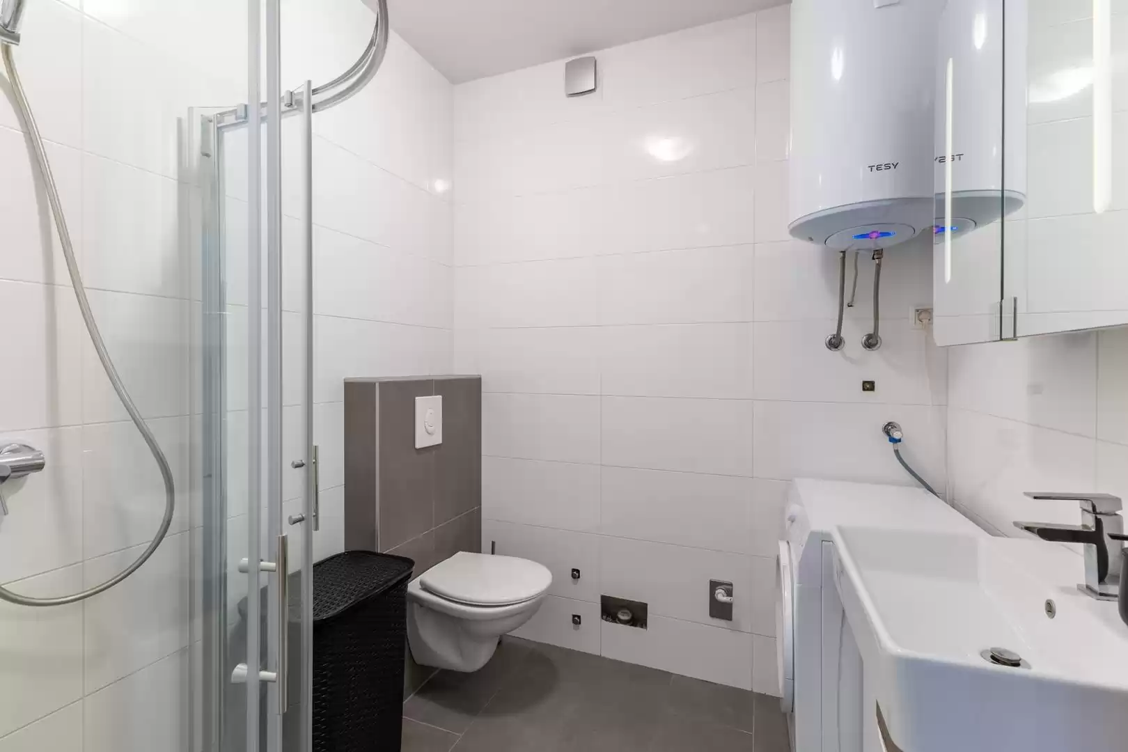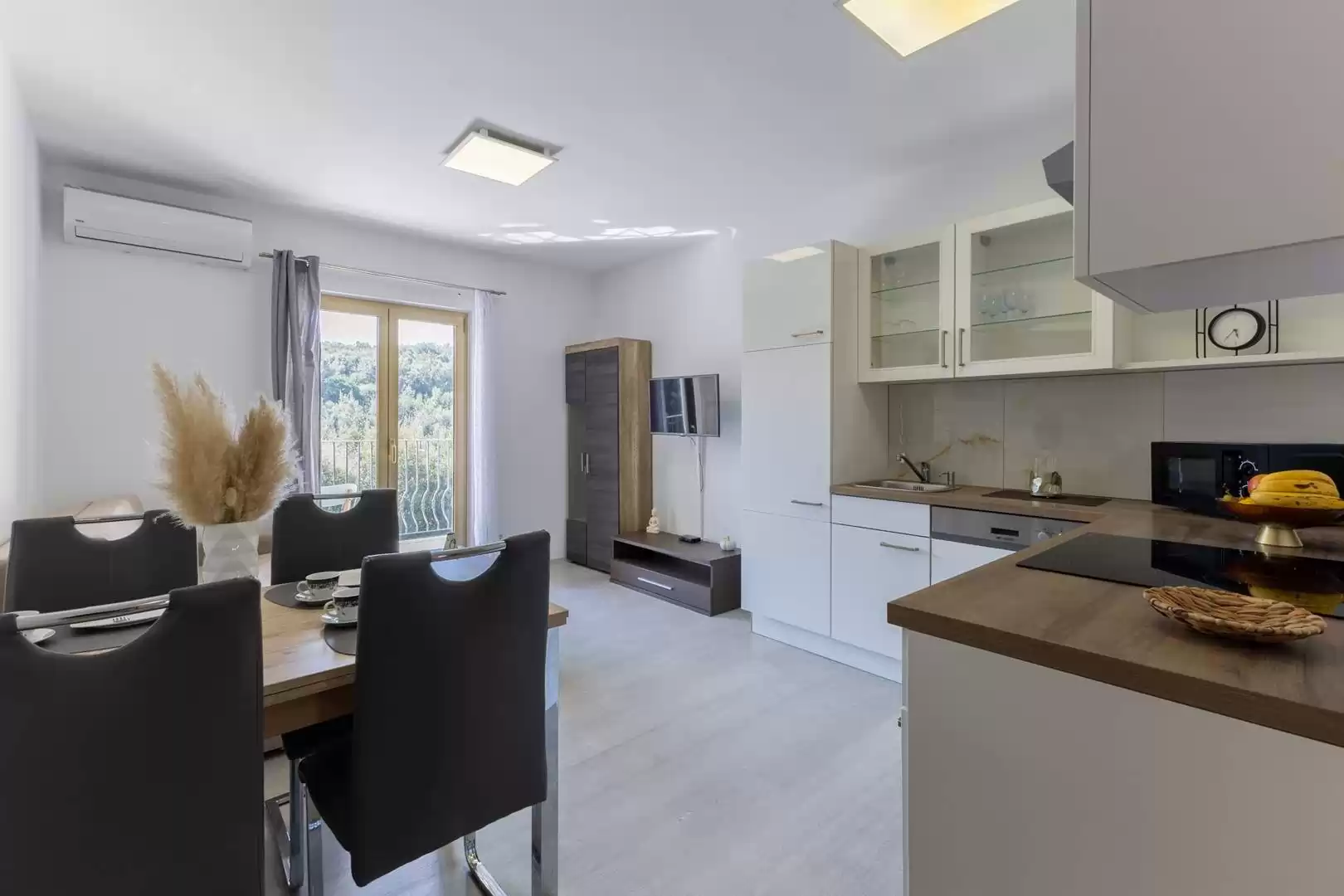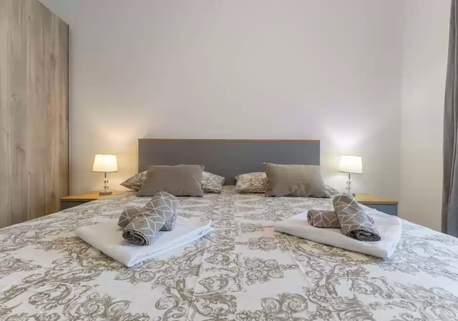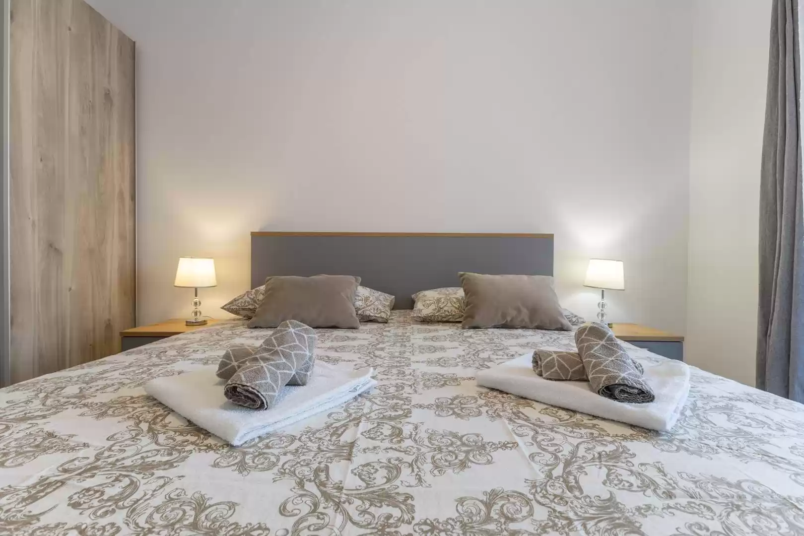 Die 4-Personen-Wohnung befindet sich im zweiten Stock in einem ruhigen Teil von Vrsar und ist ideal für einen erholsamen Urlaub. Sie besteht aus einem Schlafzimmer mit einem komfortablen Doppelbett und einem Wohnzimmer mit Schlafcouch und eignet sich daher perfekt für eine Familie oder eine kleinere Gruppe. Den Gästen stehen eine voll ausgestattete Küche mit Essbereich, ein Badezimmer mit Dusche und Waschmaschine sowie ein Balkon zur Verfügung, der sich ideal für den Morgenkaffee oder entspannte Abende eignet. Zur Wohnung gehört außerdem ein sicherer Parkplatz. Der Eigentümer stellt außerdem Parkkarten für das Parken im Zentrum von Vrsar zur Verfügung. Sie liegt etwa 1000 Meter vom Meer und 800 Meter vom Zentrum von Vrsar entfernt. Dadurch sind Strände, Restaurants und alle wichtigen Einrichtungen bequem zu erreichen, während Sie gleichzeitig Ruhe und Privatsphäre genießen.