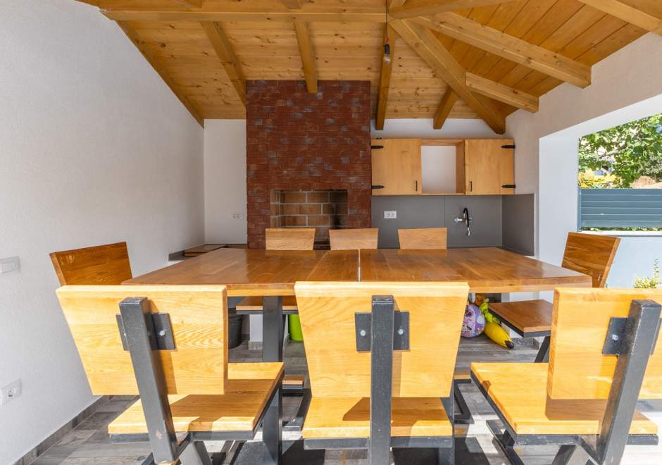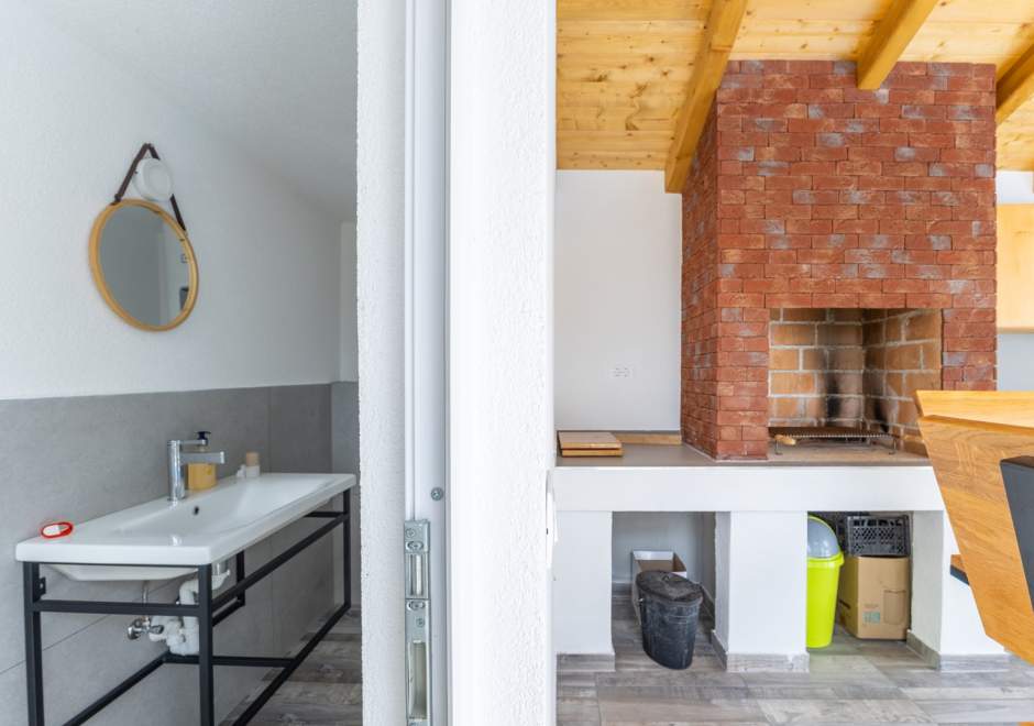 Dieses schöne Haus mit Swimmingpool befindet sich im ruhigen und idyllischen Dorf Rovinjsko selo, ein perfekter Ort zum Entspannen und Genießen der Privatsphäre. Da sie in diesem Jahr neu gebaut wurde, ist alles darin modern eingerichtet und an hohe Komfortstandards angepasst. Villa Manda bietet dank ihres wunderschönen privaten Pools unglaublichen Genuss in den Sommermonaten. Genießen Sie erfrischende Momente im Wasser, während Sie auf den Sonnenliegen entspannen und die spektakuläre Aussicht auf die umliegende Landschaft genießen. Im Inneren des Hauses finden Sie geräumige und elegant eingerichtete Räume, die einen angenehmen Aufenthalt garantieren. Es besteht aus vier komfortablen Schlafzimmern, jedes mit eigenem Bad, was den Gästen absolute Privatsphäre bietet. Alle Badezimmer sind modern ausgestattet und bieten absoluten Komfort und Luxus.
