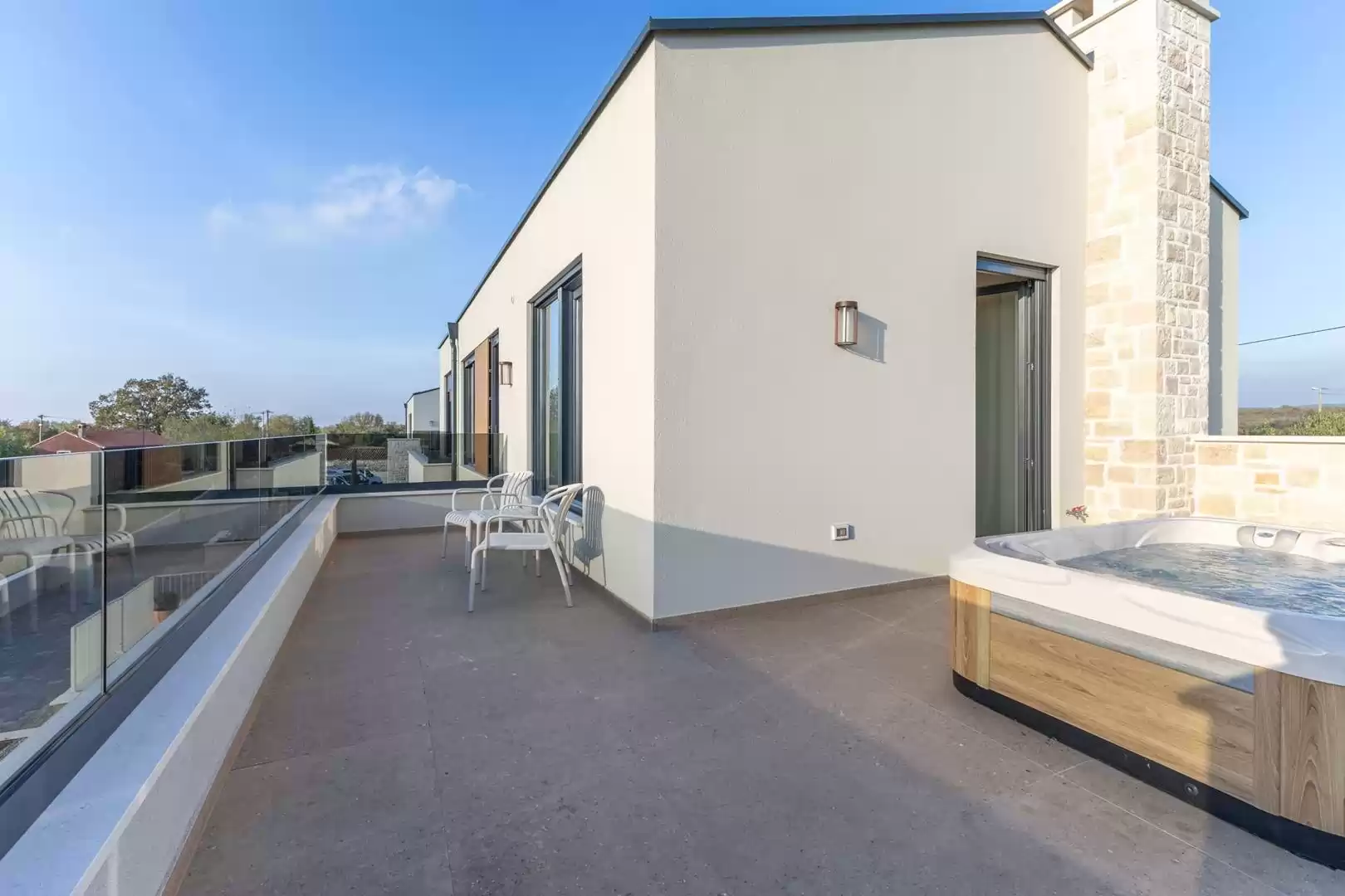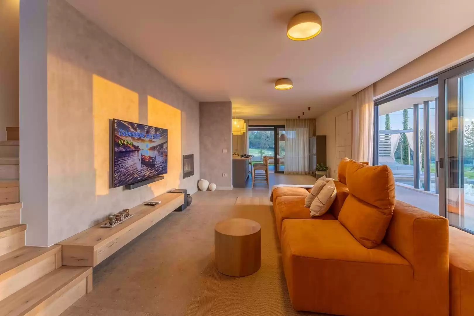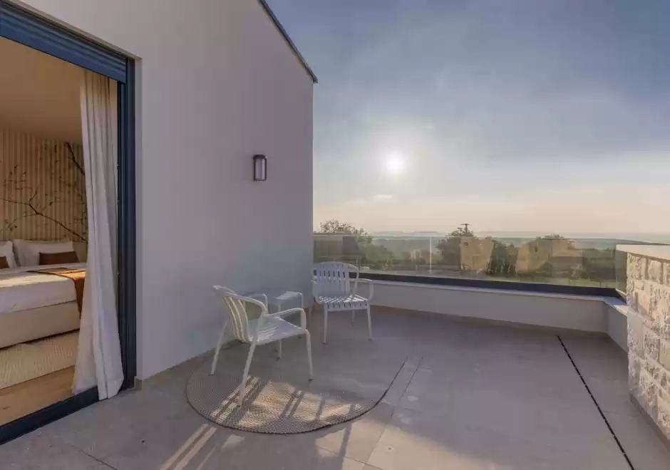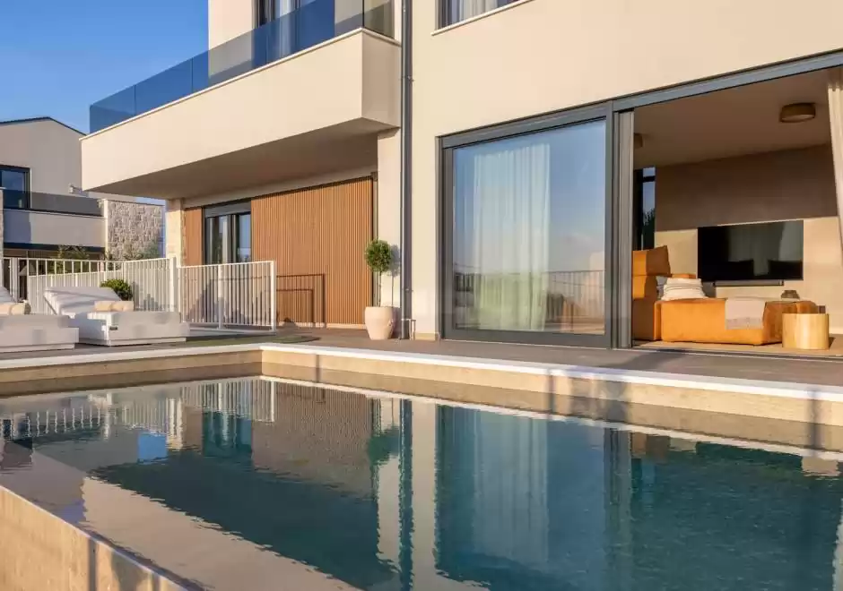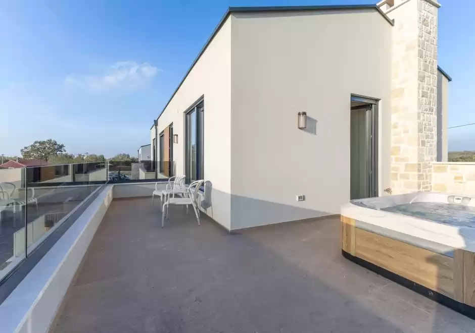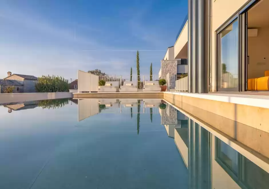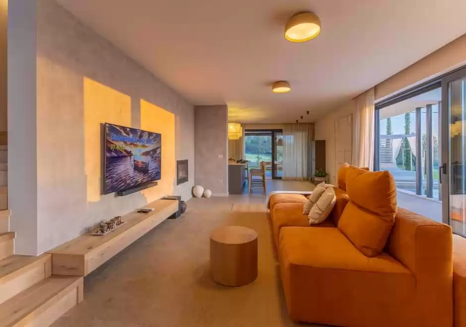 Die Villa Sella Marron ist ein herausragendes Beispiel modernen istrischen Luxus und fügt sich harmonisch in die ruhige Siedlung Selina ein. Das neu erbaute Haus besticht durch seine elegante Architektur, sein zeitgenössisches Design und sein außergewöhnlich harmonisches Interieur, in dem jedes Detail sorgfältig ausgewählt wurde, um eine Atmosphäre vollkommenen Komforts zu schaffen.