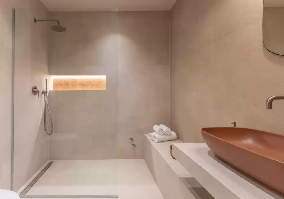 Die Villa bietet drei geräumige Schlafzimmer mit jeweils eigenem Bad, zwei davon mit Balkon und eines mit privatem Whirlpool – ein idealer Ort zum Entspannen mit Blick auf die friedliche Landschaft. Für zusätzliches Wohlbefinden steht den Gästen die Sauna zur Verfügung.
