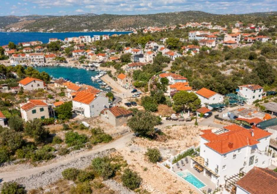 Villa Leylandii ist eine neue, luxuriöse Villa im ruhigen Küstenort Ražanj, nur 50 Meter vom Meer und 400 Meter vom Kiesstrand entfernt – ideal für einen erholsamen Urlaub mit Familie oder Freunden in der Nähe von Rogoznica. Die Villa bietet 200 m2 Wohnfläche auf einem privaten Grundstück von 630 m2 und erstreckt sich über ein Erdgeschoss und ein Obergeschoss. Im Erdgeschoss befinden sich eine voll ausgestattete Küche, ein Essbereich und ein gemütliches Wohnzimmer sowie ein zusätzlicher Aufenthaltsraum mit Kamin, ein Schlafzimmer und ein separates WC. Im Obergeschoss befinden sich drei geräumige Schlafzimmer, jedes mit eigenem modernen Badezimmer, ein zusätzliches Badezimmer, ein separates WC, eine Waschküche sowie zwei Balkone mit teilweisem Meerblick. Im Außenbereich erwartet Sie ein privater, beheizter Pool mit integriertem Whirlpool – perfekt für entspannte Stunden den ganzen Tag über. Die Villa Leylandii vereint Komfort, Eleganz und Meeresnähe und bietet den idealen Ort für einen luxuriösen Urlaub in Dalmatien.