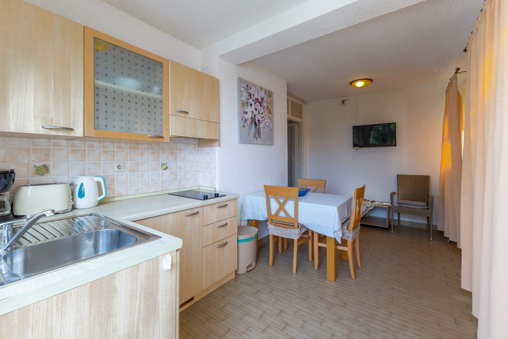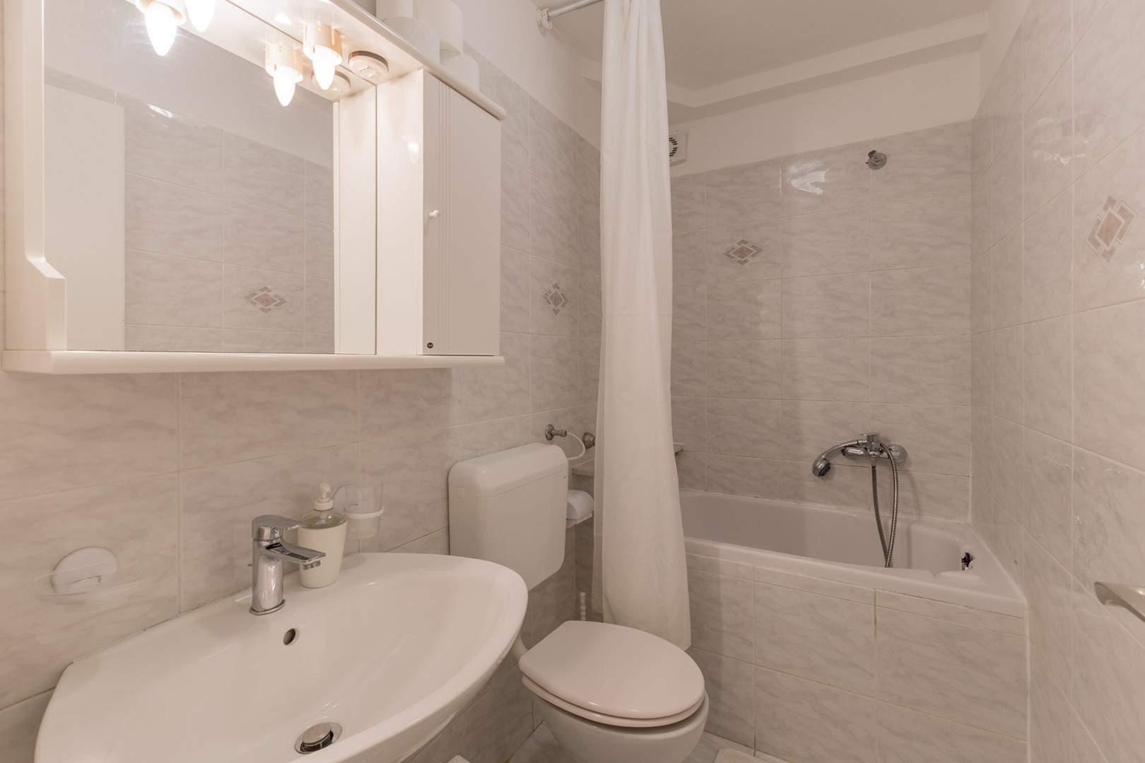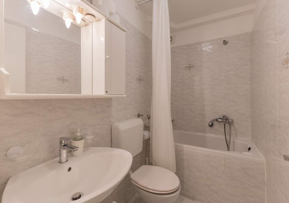 Guests have access to a functional kitchen with a dining area, fully equipped for preparing meals, while the bathroom with a bathtub provides additional comfort during their stay. The furniture is classically styled, but the space is neat, bright and well-maintained, providing a homely atmosphere.