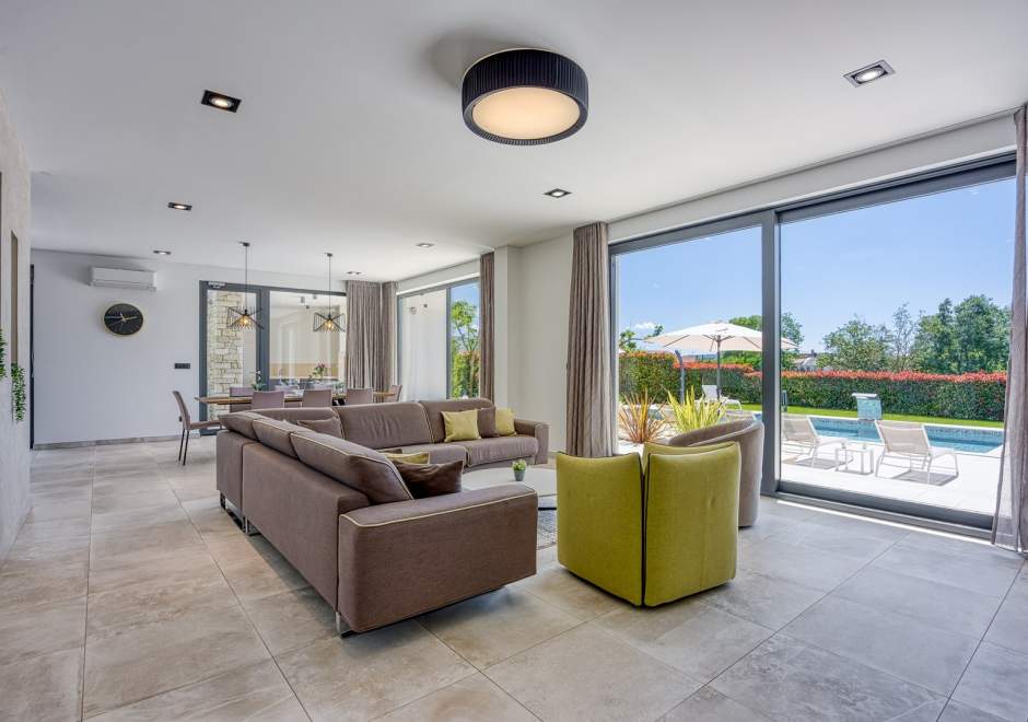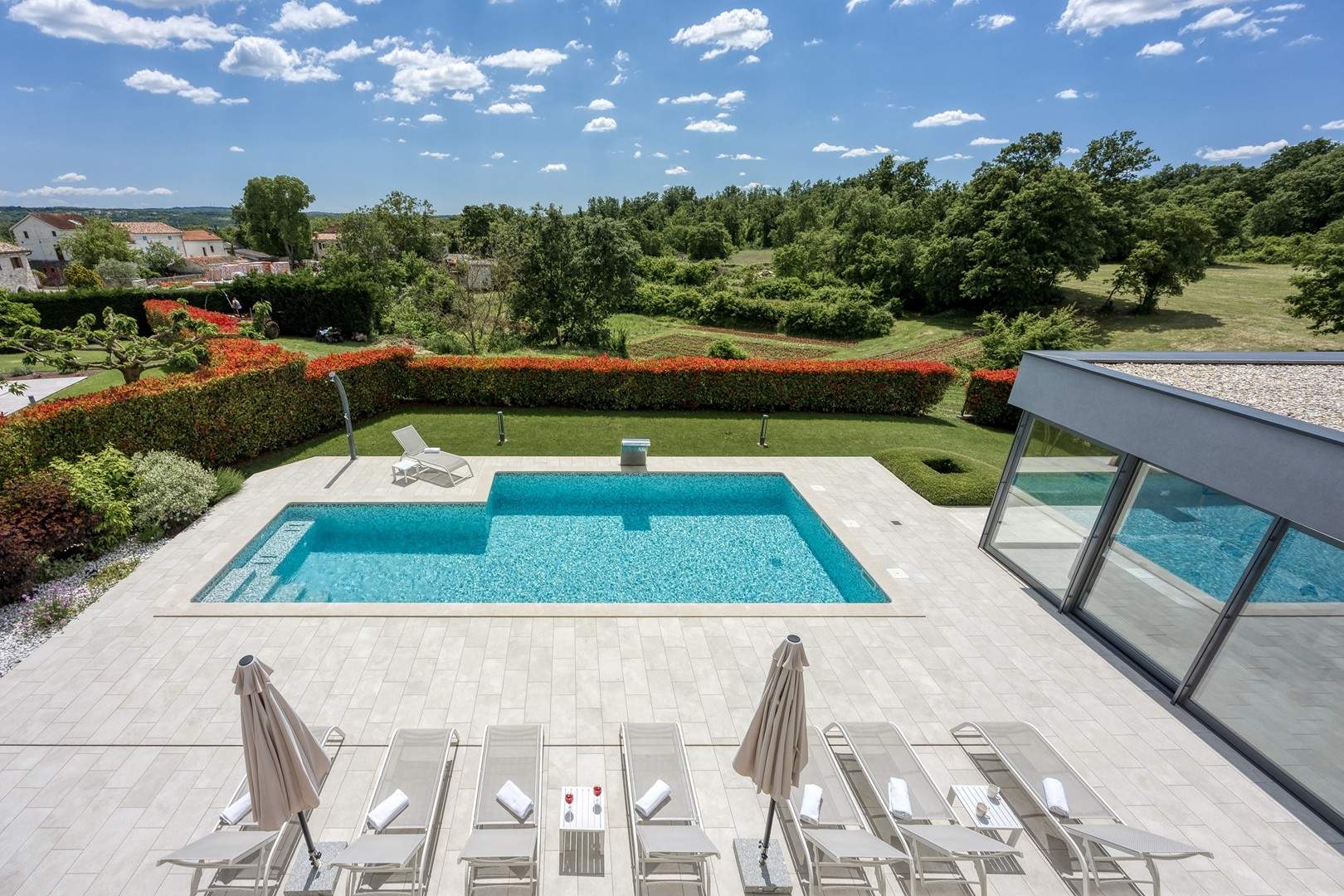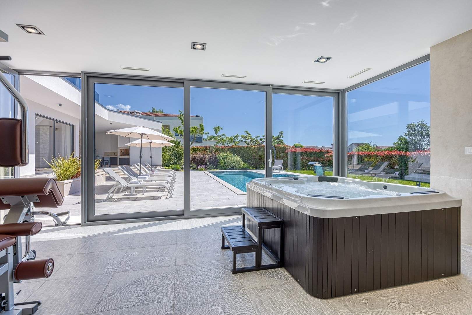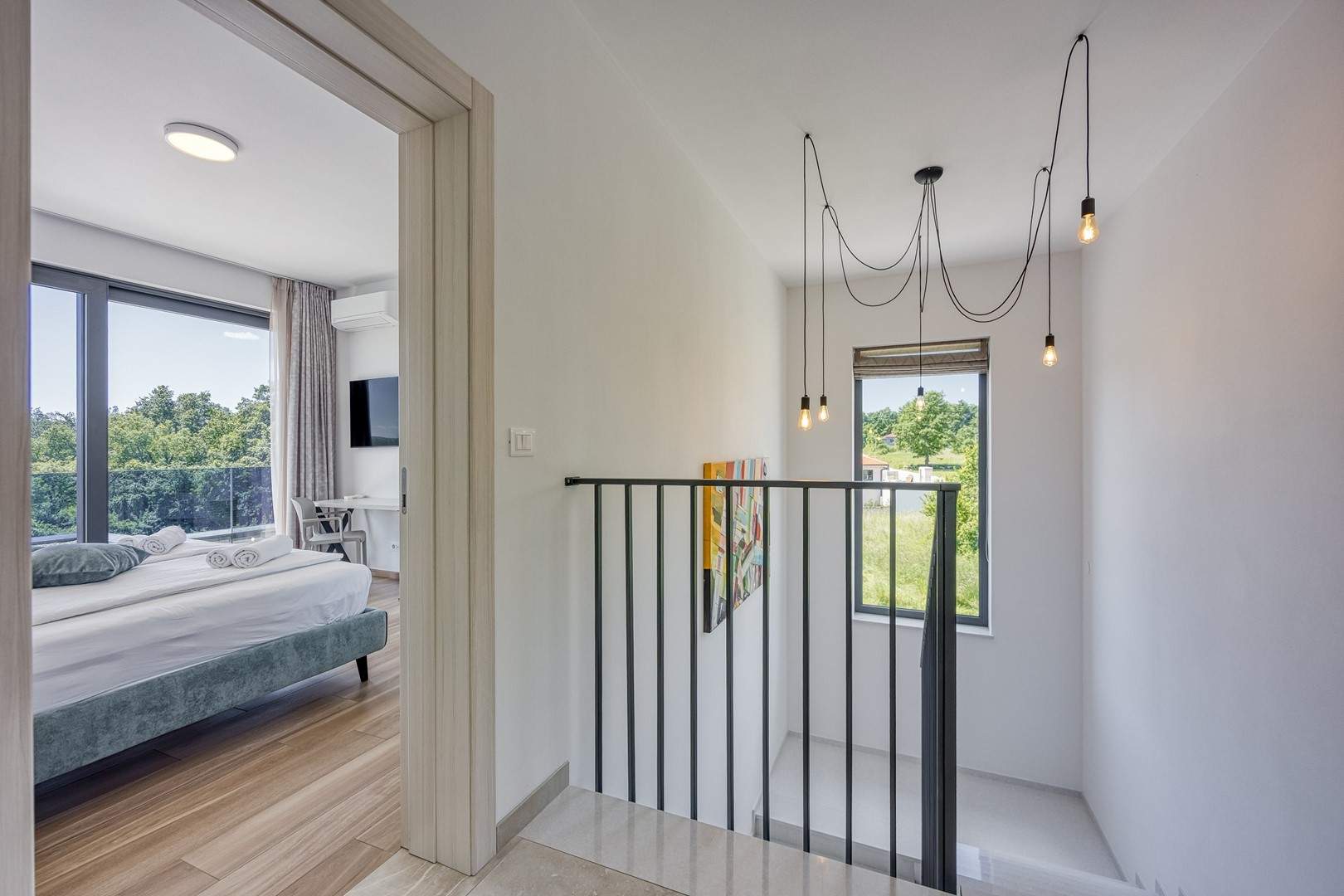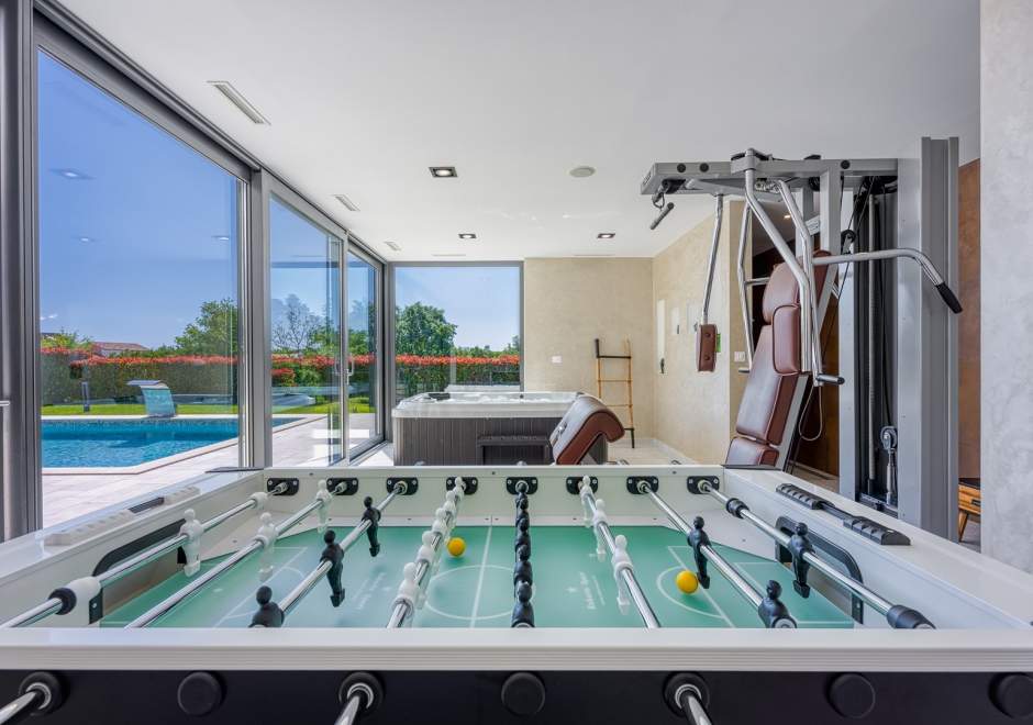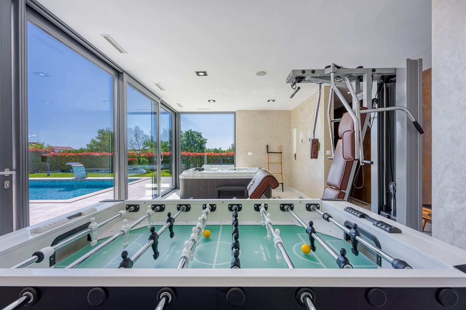The villa is located in the tranquil town of Kringa with a small supermarket in central Istria, in the middle between Porec and Pazin, about 20 minutes from the beach. However, since we didn't want to take a typical holiday by the sea, the location was ideal. Buggy walks, learning about Istrian history, enjoying typical Istrian food, wine tasting, trips to coastal towns - all possible on foot or with a short drive. The quiet location of the villa in the middle of nature with no direct neighbors to the used garden area was also very pleasant. It was a very exciting, relaxing and varied week, which was crowned every evening by a visit to the wellness area and jacuzzi. Our children (1 year, 3 years) also liked it very much, especially the trampoline and the open spaces in the garden and the pool were used extensively.