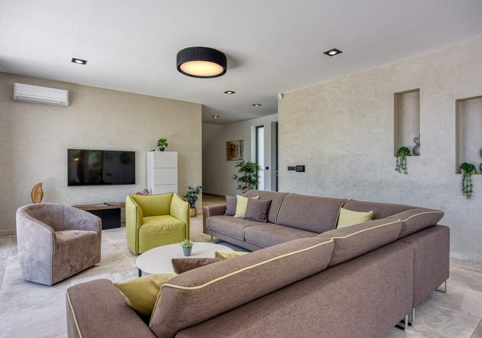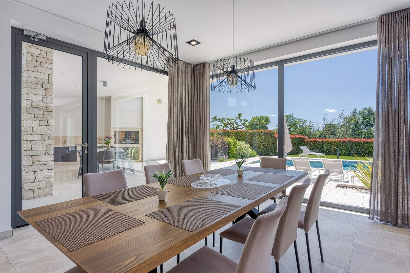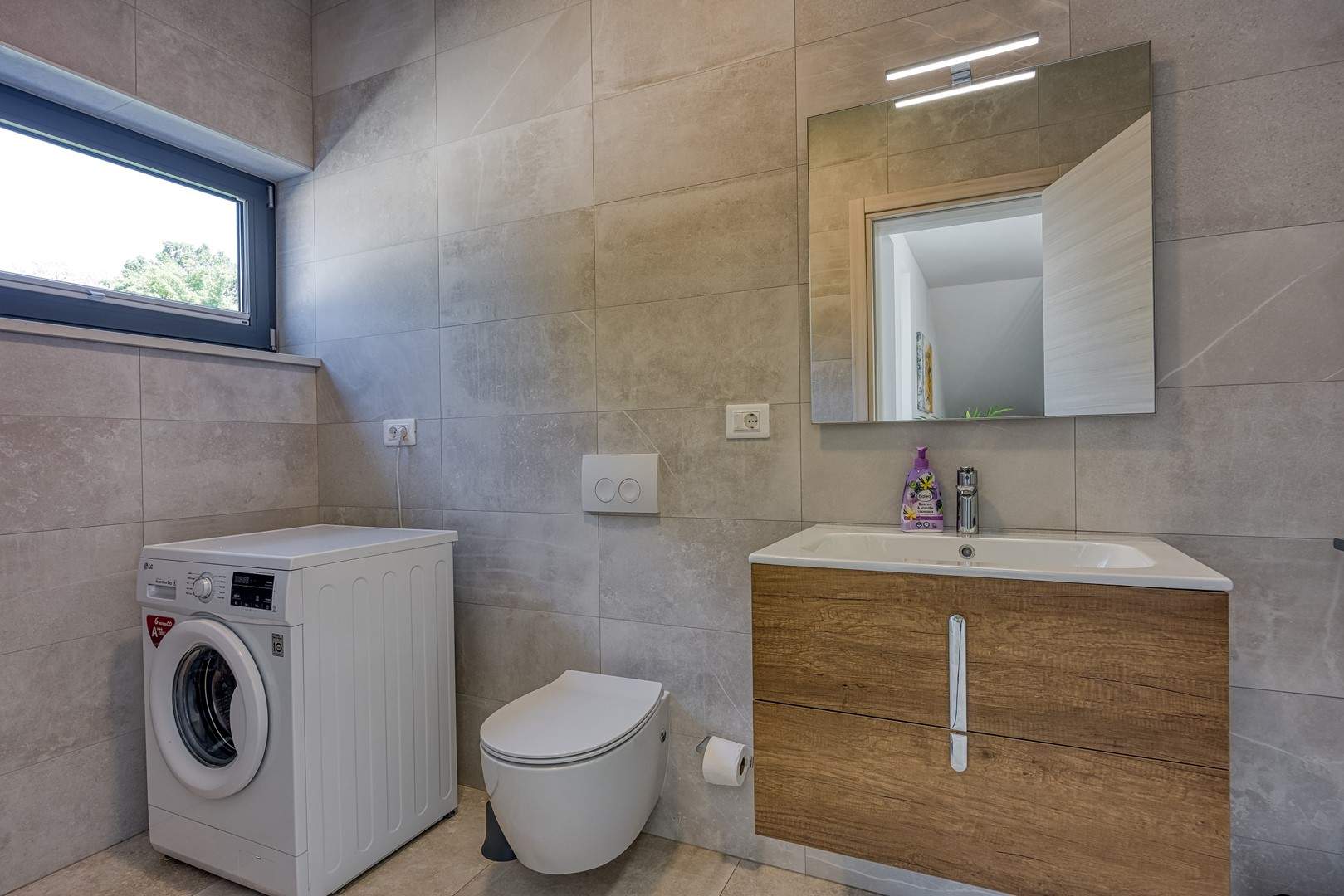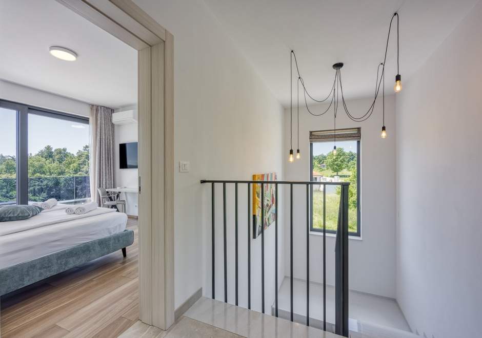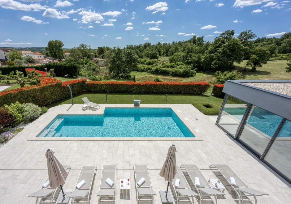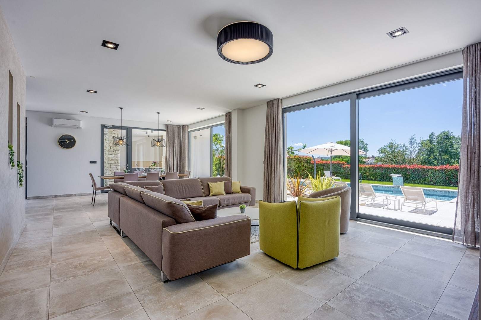 The villa is located in the tranquil town of Kringa with a small supermarket in central Istria, in the middle between Porec and Pazin, about 20 minutes from the beach. However, since we didn't want to take a typical holiday by the sea, the location was ideal. Buggy walks, learning about Istrian history, enjoying typical Istrian food, wine tasting, trips to coastal towns - all possible on foot or with a short drive. The quiet location of the villa in the middle of nature with no direct neighbors to the used garden area was also very pleasant. It was a very exciting, relaxing and varied week, which was crowned every evening by a visit to the wellness area and jacuzzi. Our children (1 year, 3 years) also liked it very much, especially the trampoline and the open spaces in the garden and the pool were used extensively.