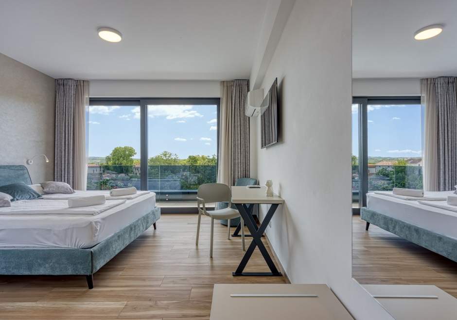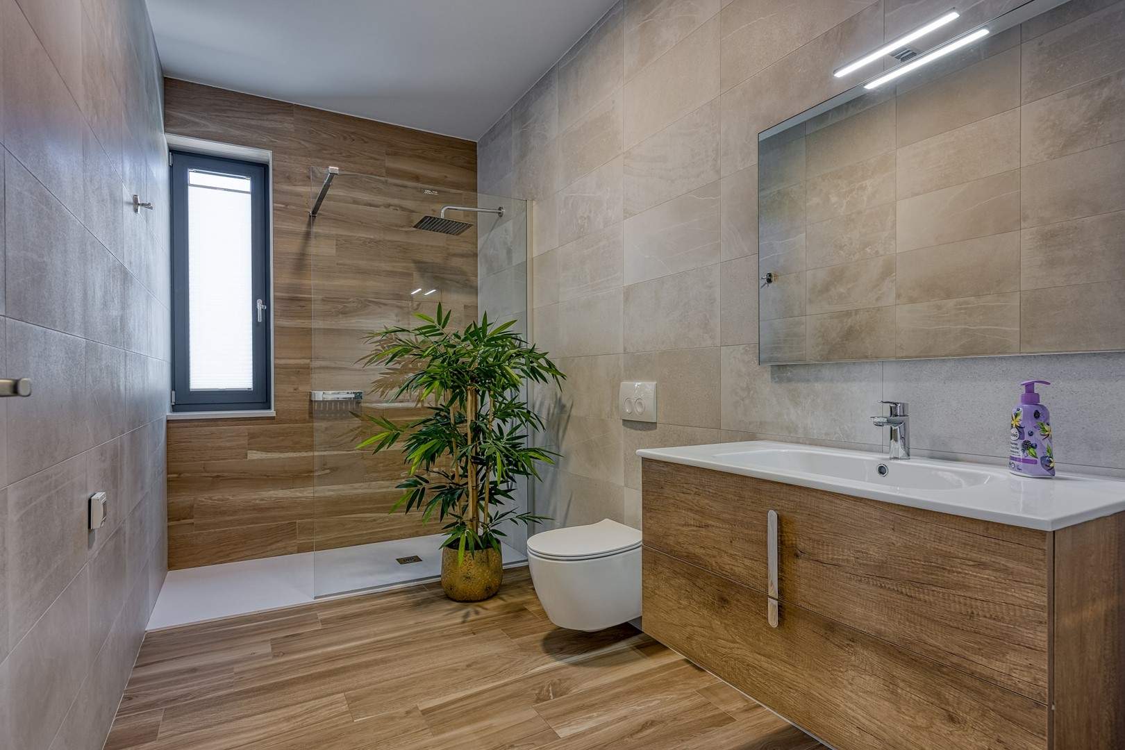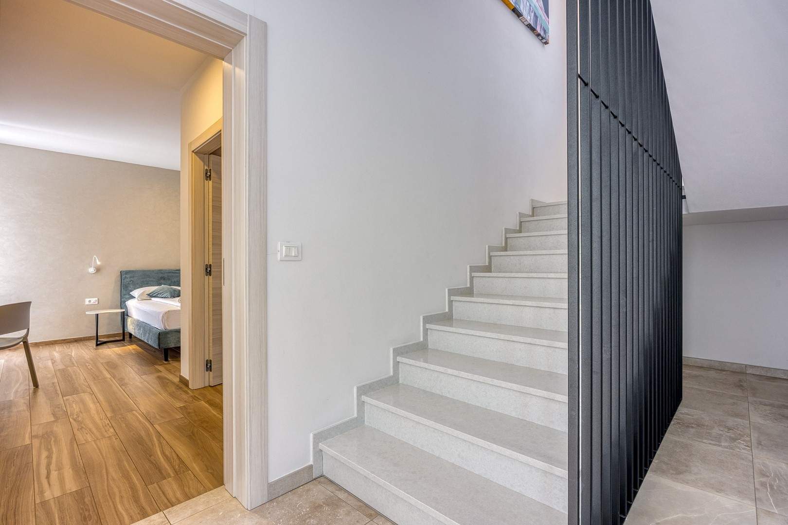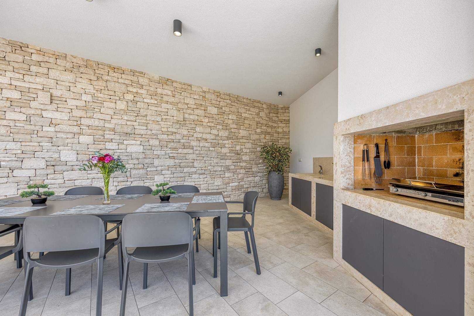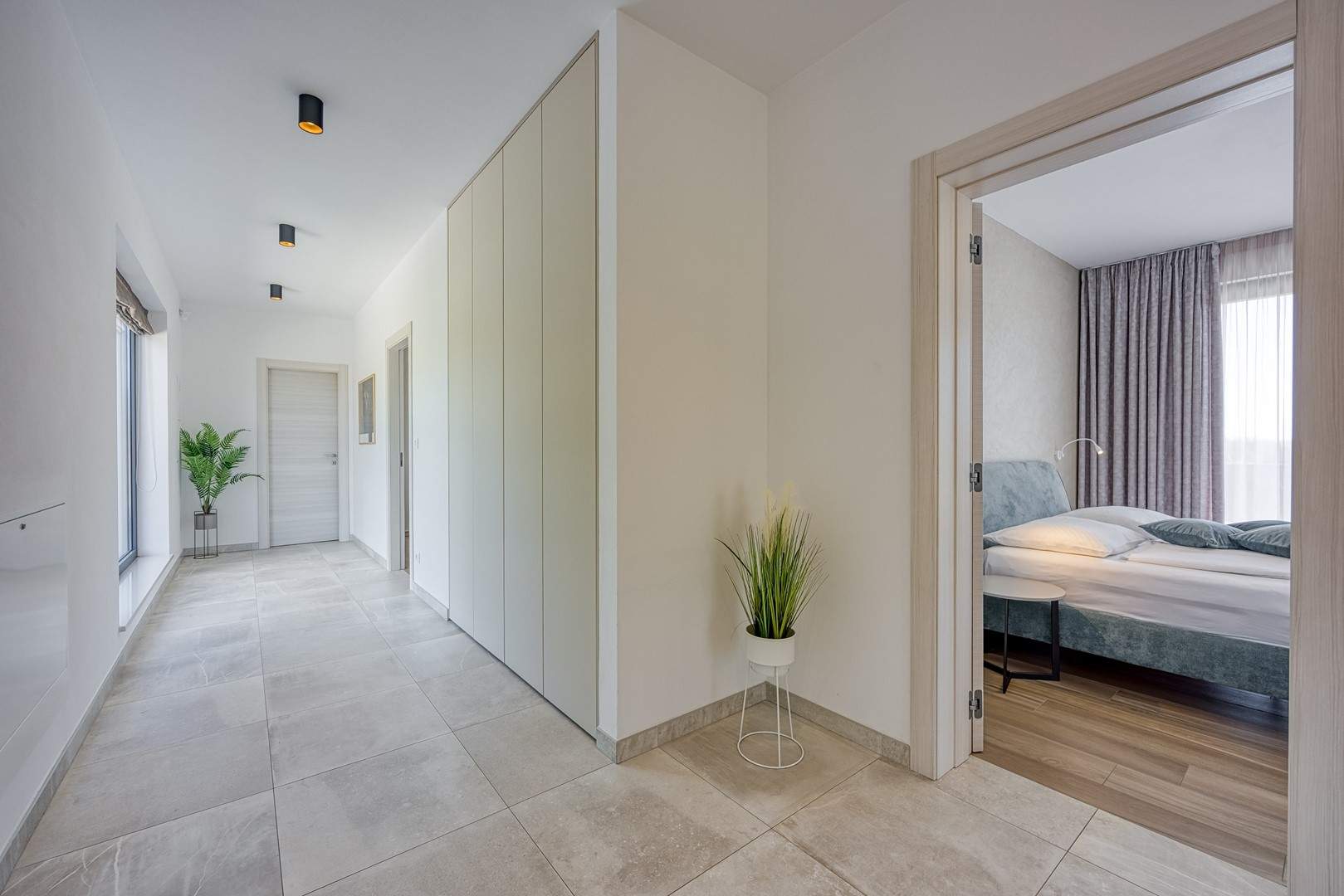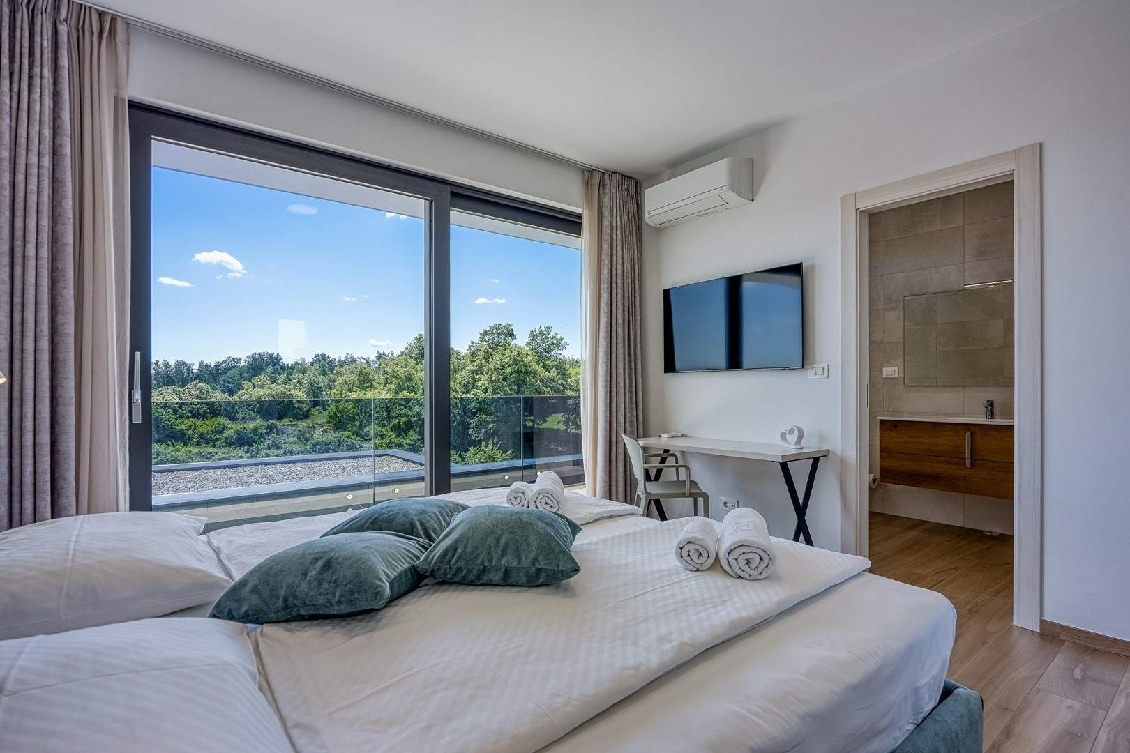 The villa is located in the tranquil town of Kringa with a small supermarket in central Istria, in the middle between Porec and Pazin, about 20 minutes from the beach. However, since we didn't want to take a typical holiday by the sea, the location was ideal. Buggy walks, learning about Istrian history, enjoying typical Istrian food, wine tasting, trips to coastal towns - all possible on foot or with a short drive. The quiet location of the villa in the middle of nature with no direct neighbors to the used garden area was also very pleasant. It was a very exciting, relaxing and varied week, which was crowned every evening by a visit to the wellness area and jacuzzi. Our children (1 year, 3 years) also liked it very much, especially the trampoline and the open spaces in the garden and the pool were used extensively.