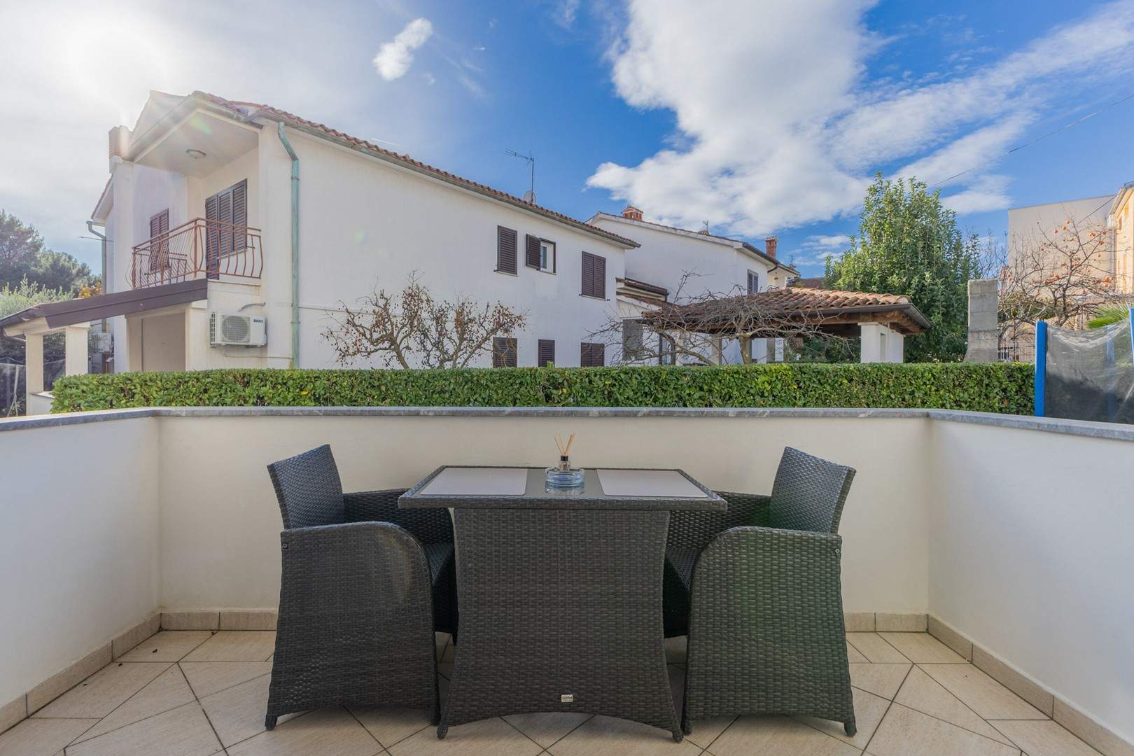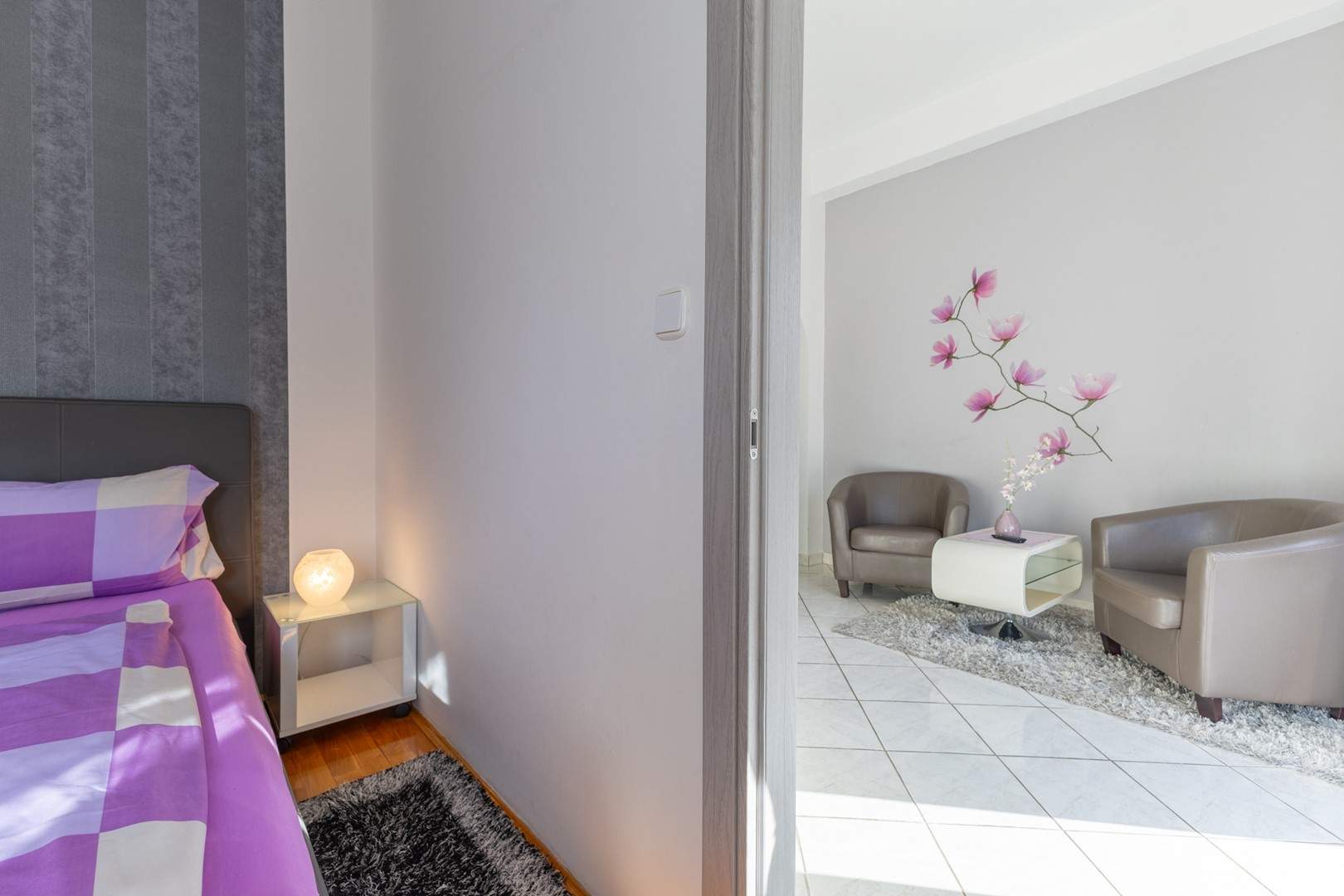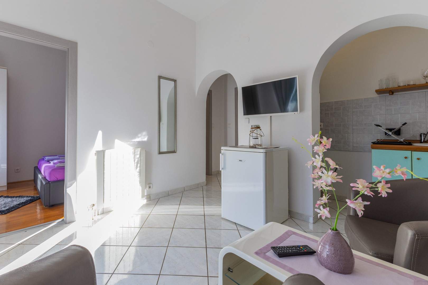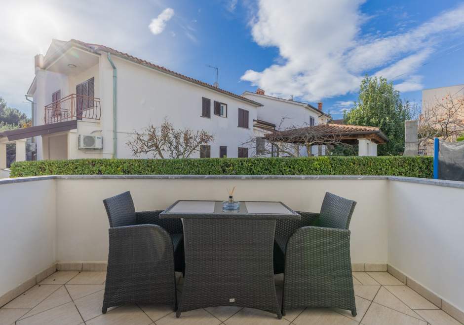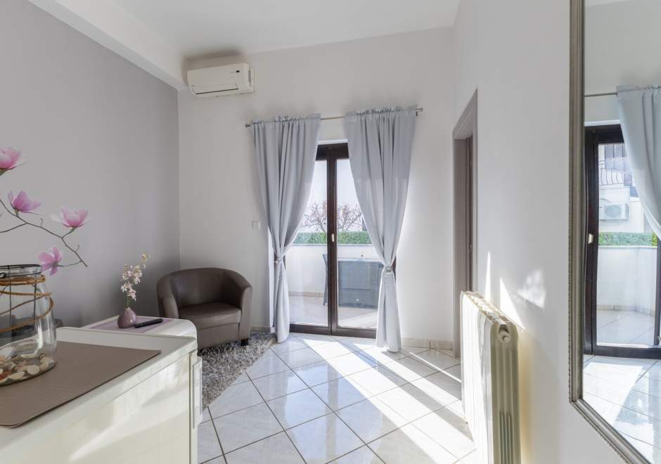 Ovaj šarmantni apartman na prvom katu obiteljske kuće idealan je za goste koji traže miran i praktičan smještaj u blizini obale. Potpuno je opremljen za udoban boravak, uključujući klimatizaciju, besplatni Wi-Fi i osigurano parkirno mjesto ispred kuće. Spavaća soba ima udoban bračni krevet, a kupaonica sadrži tuš. Otvoreni dnevni prostor spaja kuhinju, blagovaonicu i kutak za opuštanje, a kuhinja je opremljena svim potrebnim aparatima. U vrtu je natkrivena terasa i zajednički vrt, opremljeni roštiljem i vrtom garniturom za sve goste — idealno za jutarnju kavu ili večernji čašu vina. Jednostavan i funkcionalan raspored čini apartman izvrsnom bazom za istraživanje lokalnih atrakcija, plaža i sadržaja.