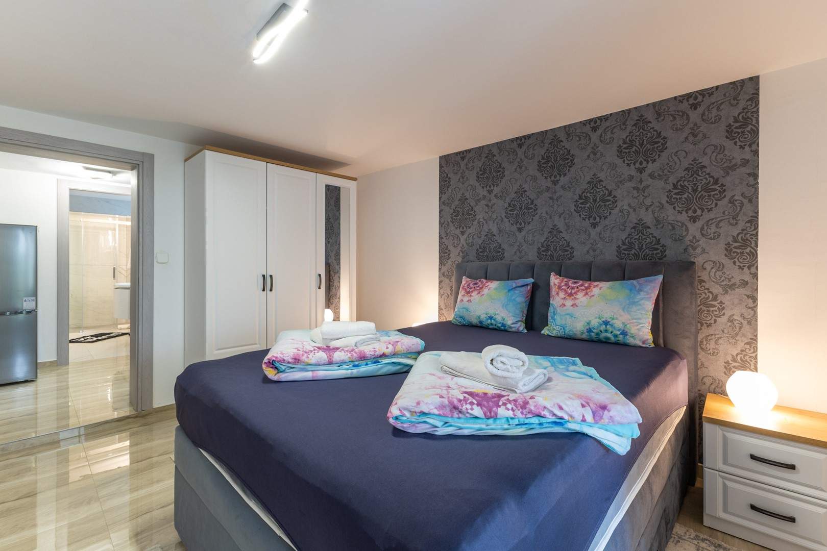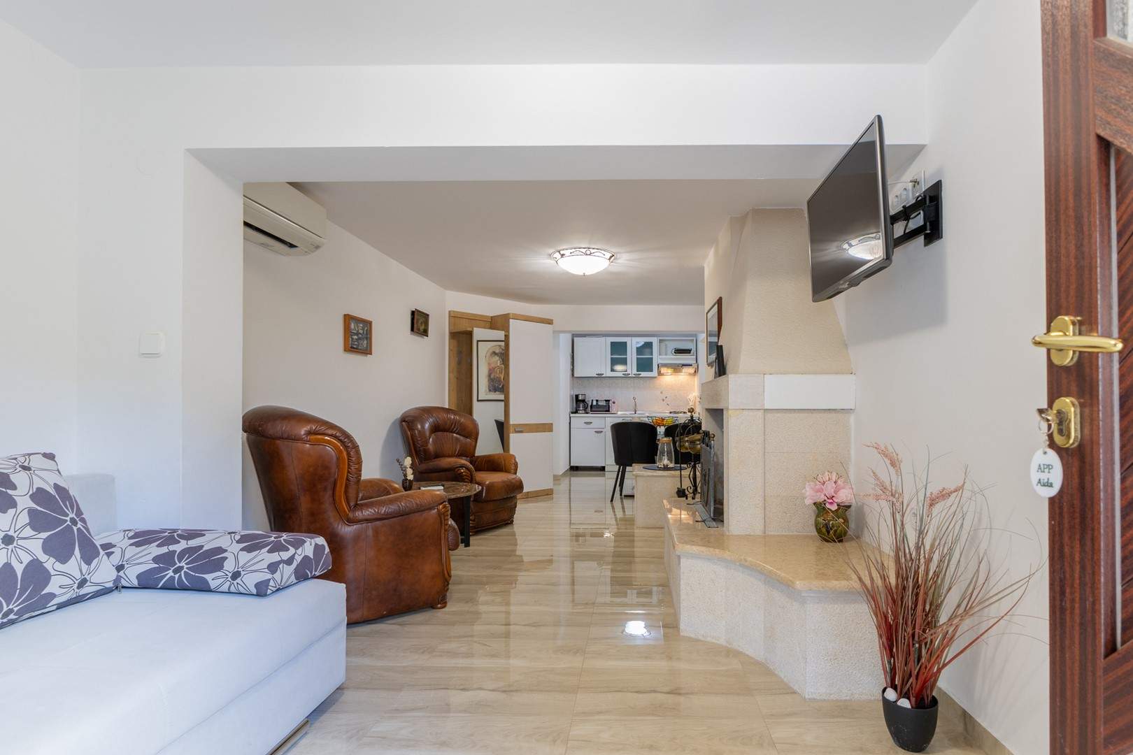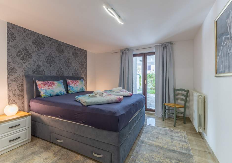 Ovaj šarmantni apartman u prizemlju obiteljske kuće idealan je za goste koji traže miran i praktičan smještaj blizu obale. Apartman je potpuno opremljen za udoban boravak, uključujući klimatizaciju, besplatni Wi-Fi i osigurano parkirno mjesto ispred kuće. Spavaća soba ima udoban bračni krevet, kupaonica je s tušem. Otvoreni dnevni prostor povezuje kuhinju, blagovaonicu i kutak za opuštanje, a kuhinja je opremljena svim potrebnim aparatima, a u njemu se nalazi i sofa na razvlačenje za dodatne dvije osobe. Iz apartmana se izlazi u vrt koji ima natkrivenu terasu i zajednički vrt s roštiljem i vrtom garniturom za sve goste — idealno za jutarnju kavu ili večernji čašu vina. Jednostavan i funkcionalan raspored čini apartman izvrsnom bazom za istraživanje lokalnih atrakcija, plaža i sadržaja.