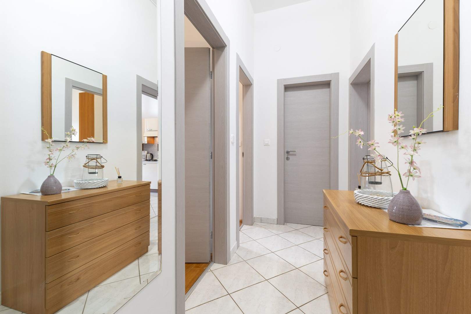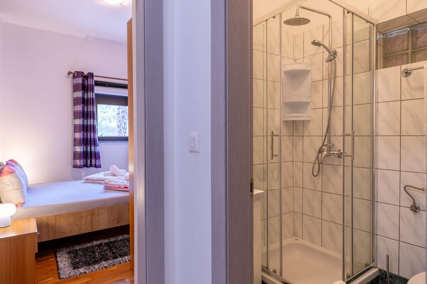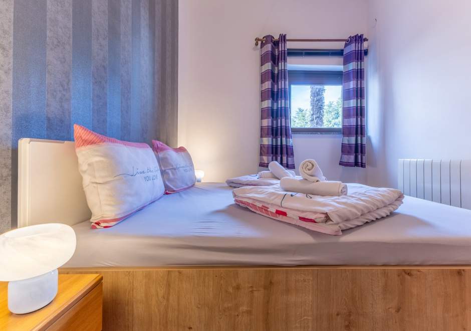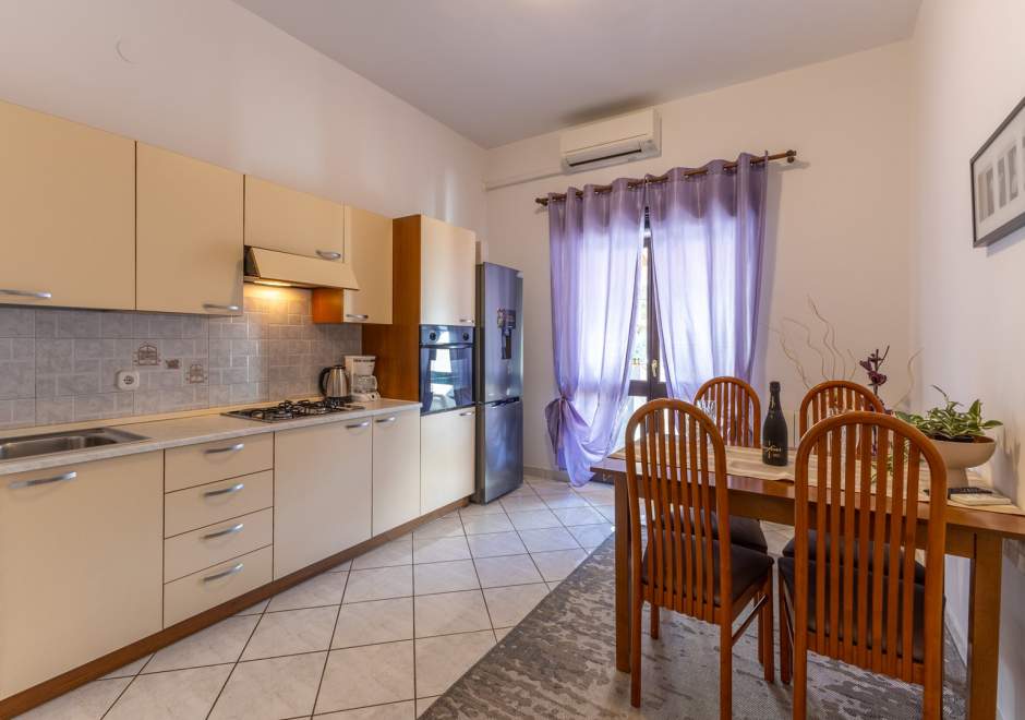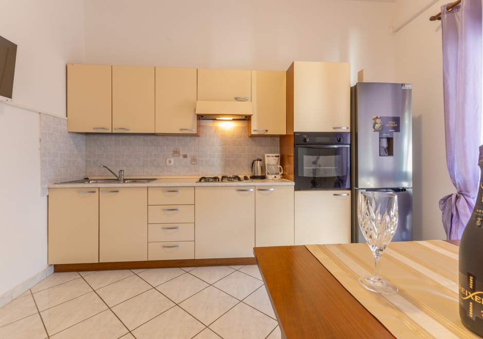Ovaj ugodan apartman na prvom katu obiteljske kuće pruža miran smještaj u blizini obale, idealan za goste koji žele udobnost i jednostavan pristup svim sadržajima. Apartman je praktično uređen te opremljen klima-uređajem, besplatnim Wi-Fi-jem i osiguranim parkirnim mjestom pred objektom. Ima dvije spavaće sobe s bračnim krevetom, kuhinju s blagovaonicom i tv-om te kupaonicu s tušem. Kuhinja sadržava sve potrebno za pripremu obroka. Gostima je na raspolaganju i zajednički vrt s roštiljem te vanjskom garniturom, gdje mogu provesti opuštena jutra ili tople ljetne večeri. Zahvaljujući jednostavnoj organizaciji prostora i odličnoj lokaciji, apartman je idealna polazišna točka za obilazak plaža, kulturnih znamenitosti i brojnih aktivnosti koje područje nudi.