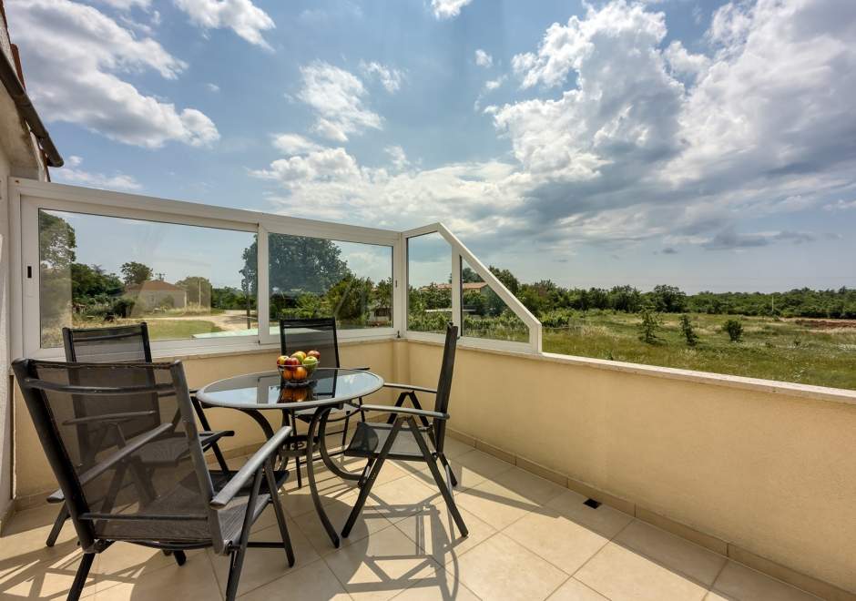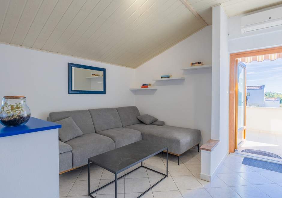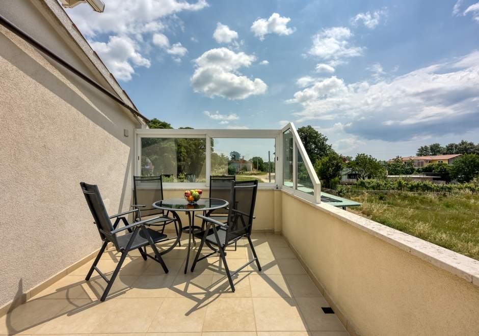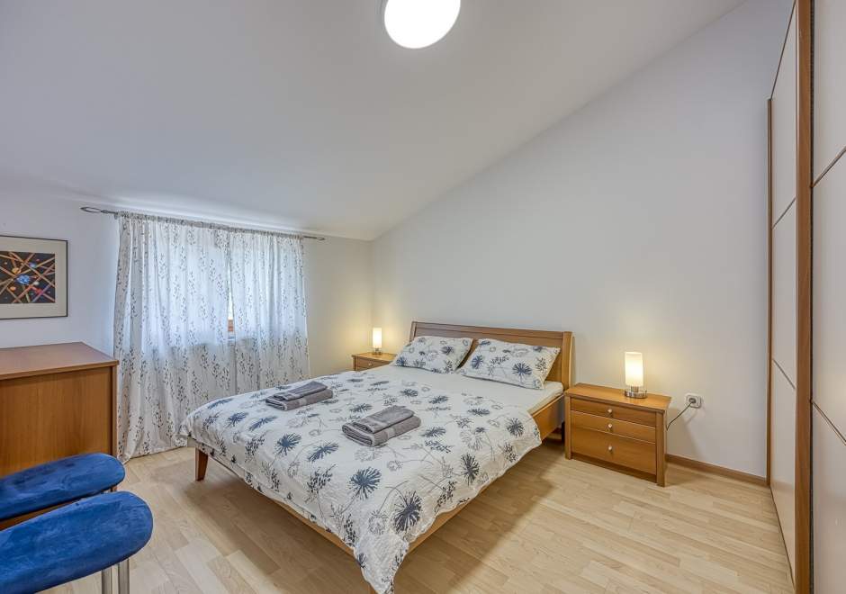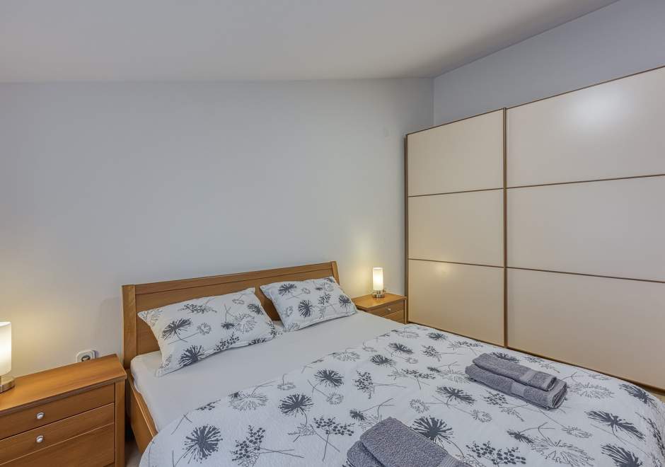 Dvosobni apartman sa balkonom i dijeljenim bazenom, popločanim dvorištem, parking, klima, wi-fi, gril