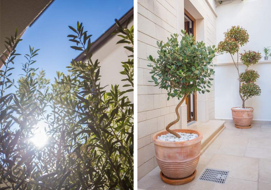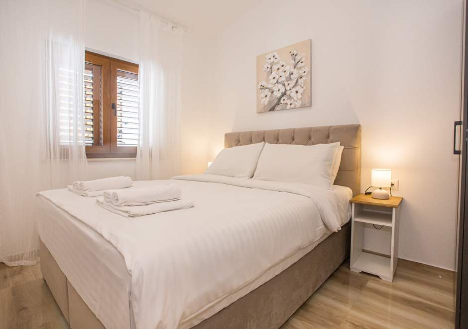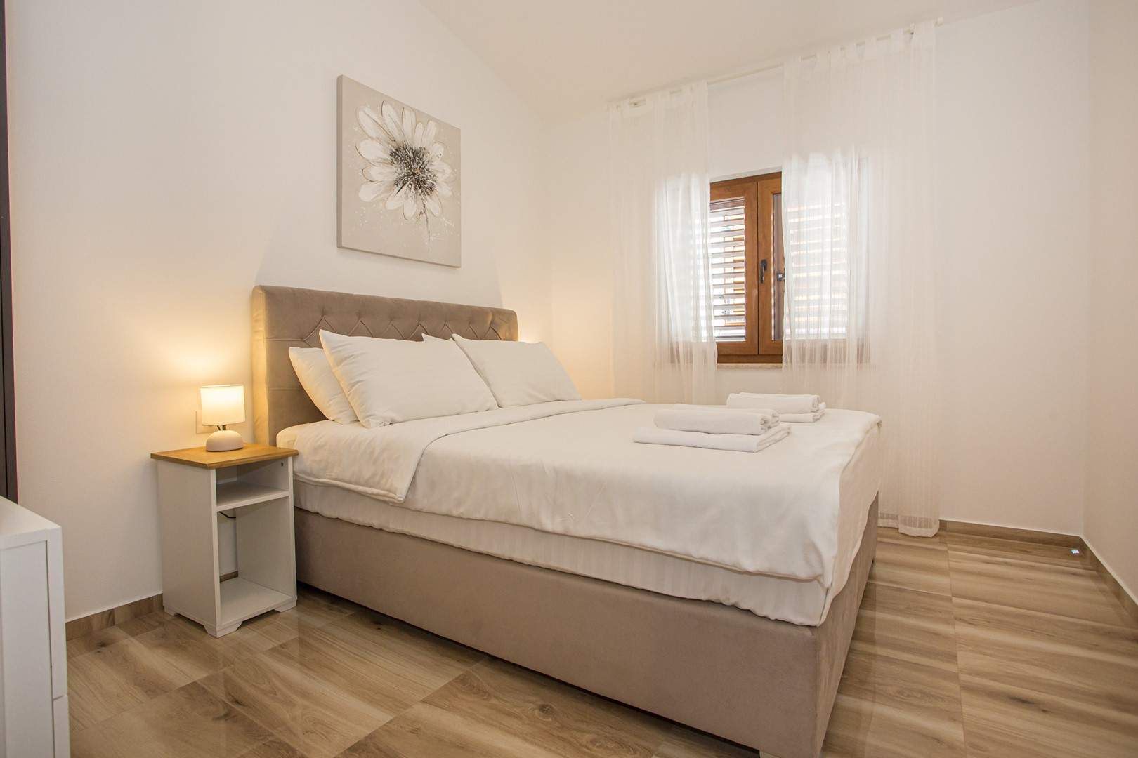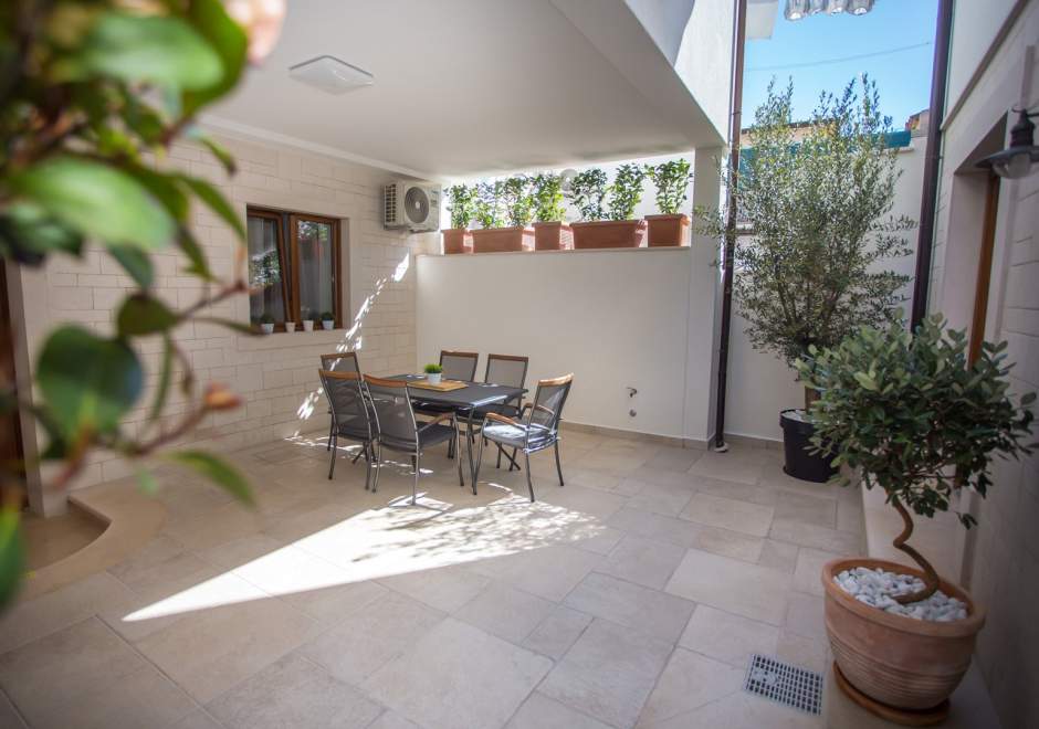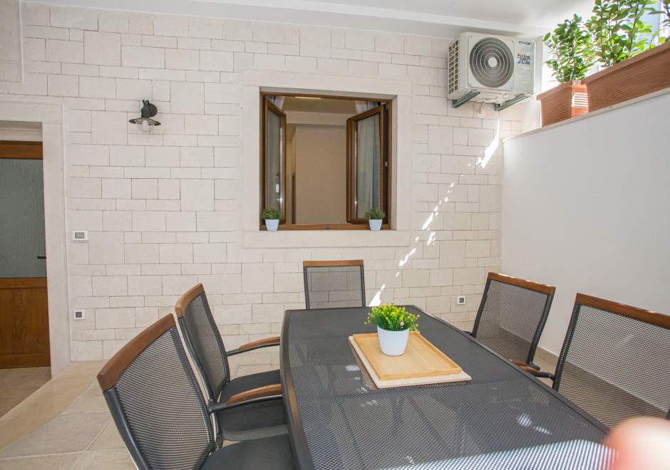 Ispred kuće je velika prostrana terasa sa stolom za objedovanje. Tu je i jedna odvojena spavaća soba, koja ima svoju kupaonu, SAT-TV i klimu, kao i podno grijanje.