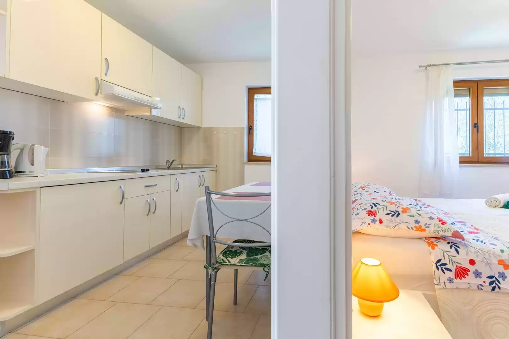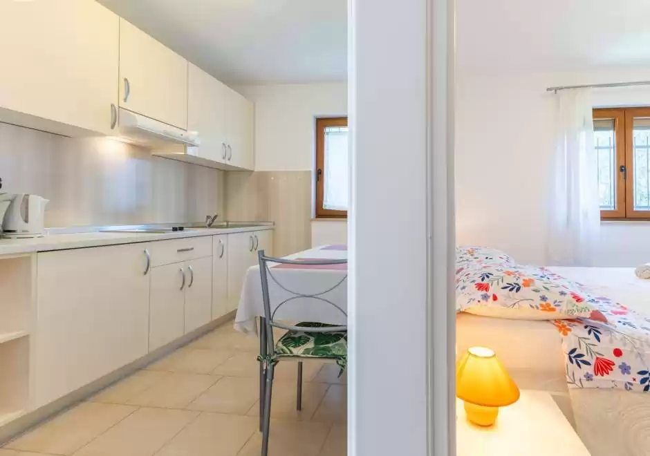 Svi apartmani sastoje se od udobne spavaće sobe s bračnim krevetom, kuhinje s dnevnim boravkom, kupaonice s tušem te SAT-TV-a. Iako apartmani nisu klimatizirani, zahvaljujući kvalitetnoj izolaciji osiguravaju ugodnu temperaturu tijekom ljetnih mjeseci.