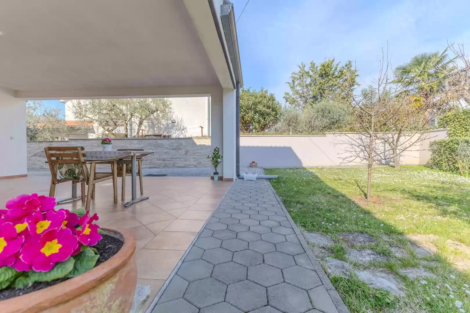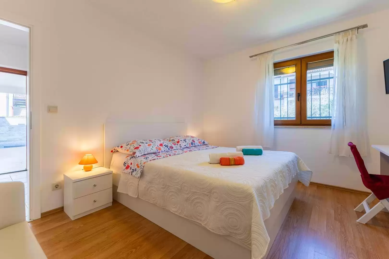 Najbliža plaža udaljena je svega oko 450 metara, dok se do centra Poreča može stići laganom šetnjom uz more za približno 1 kilometar, što dodatno doprinosi atraktivnosti lokacije. U neposrednoj blizini nalazi se i manji trgovački centar gdje gosti mogu pronaći sve potrebne namirnice i osnovne potrepštine za svakodnevni boravak. Apartmani Grace savršen su izbor za goste koji traže mir, blizinu mora i ugodnu atmosferu tijekom boravka u Poreču.