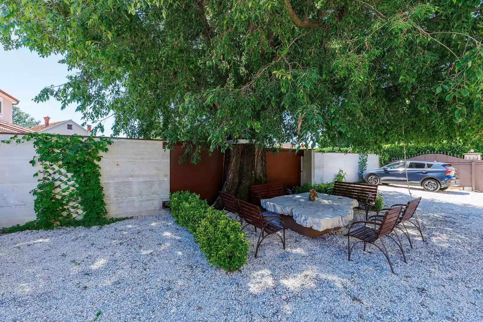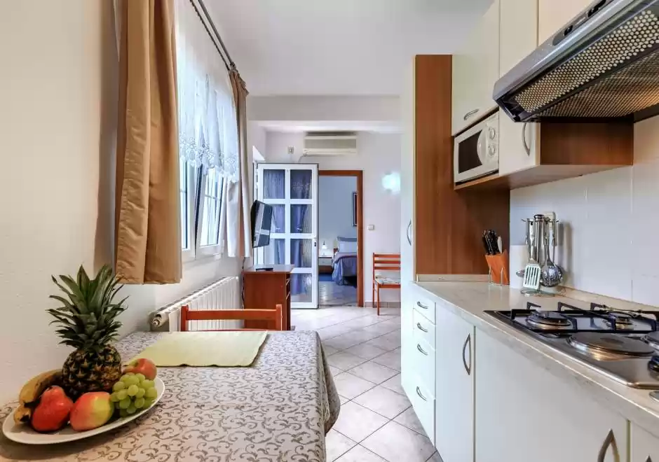 Posebnu pažnju posvetili smo vanjskom dijelu gdje se nalazi veliki vrt idealan za opuštanje i uživanje u prirodi. Za one koji dolaze vlastitim prijevozom osiguran je besplatan privatni parking unutar kompleksa. Apartmani su klimatizirani, a kao dodatna pogodnost svaki apartman ima svoju perilicu rublja.