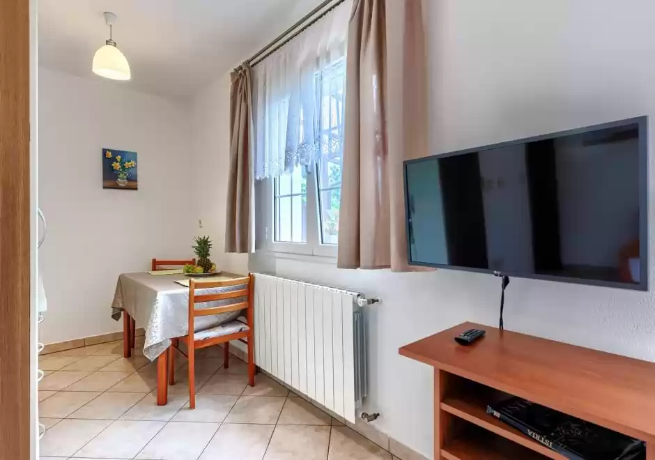 Svaki apartman pažljivo je namješten kako bi zadovoljio sve vaše potrebe, uključujući udobnu spavaću sobu, kuhinju, prostranu kupaonicu i dnevni boravak. Iz apartmana se pruža pogled na prekrasan vrt koji okružuje kuću, pružajući mir i privatnost našim gostima.