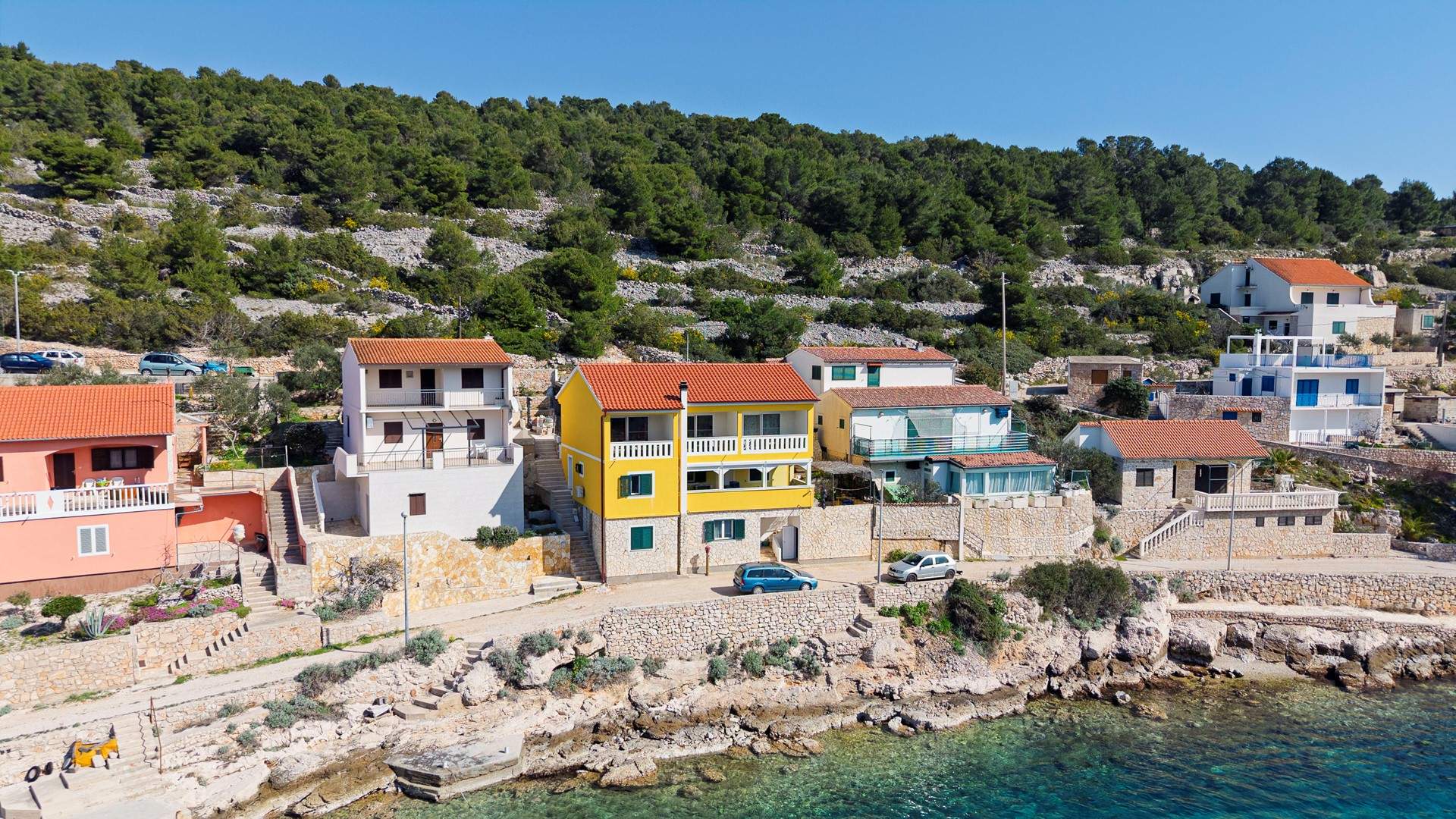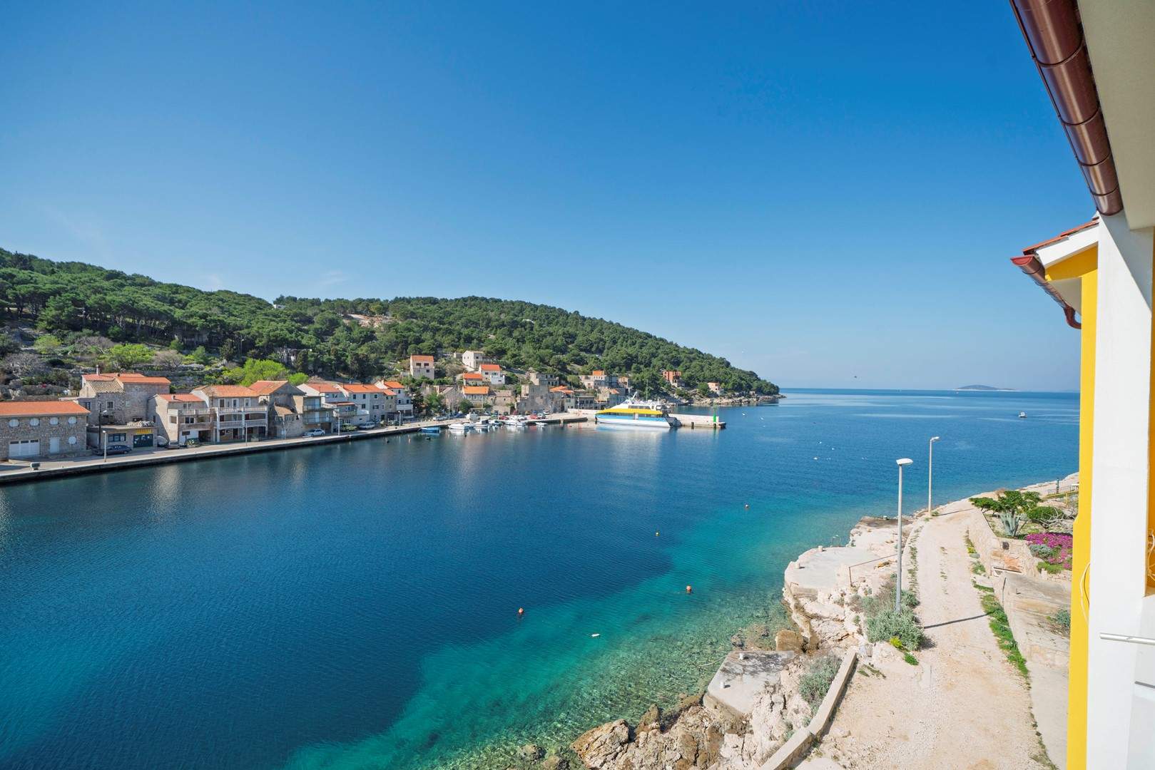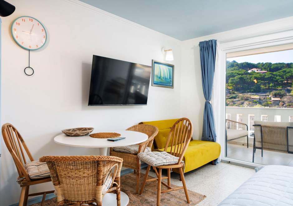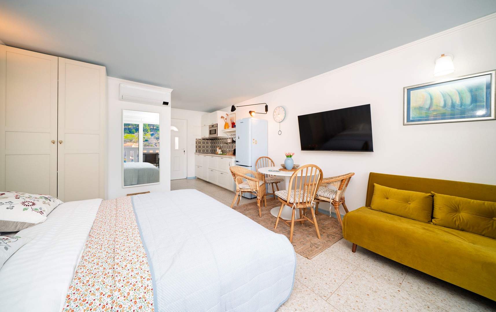 Studio apartman s pogledom na more nalazi se u slikovitom mjestu Uvala Muna na otoku Žirje, koji je ujedno najudaljeniji i najveći otok Šibenskog arhipelaga. Apartman je potpuno opremljen i pogodan za boravak od 2 do 3 osobe, a smješten je na svega 10 metara od mora i plaže, što ga čini idealnim izborom za goste koji žele uživati u neposrednoj blizini mora i mirnom otočnom okruženju. Studio apartman Nada A1 nalazi se na drugom katu kuće koja je raspoređena po etažama. U jedinstvenom prostoru nalazi se bračni krevet za dvije osobe, dok je dodatni ležaj osiguran sofom na razvlačenje koja je pogodna za treću osobu. Gostima je na raspolaganju potpuno opremljena kuhinja s blagovaonicom te kupaonica s tušem. Apartman također ima balkon s garniturom za sjedenje i prekrasnim pogledom na more. Za dulje boravke moguće je koristiti perilicu rublja, uz prethodni dogovor s vlasnikom. U vrtu kuće nalaze se roštilj, ležaljke te vanjski tuš koji gostima pružaju dodatnu udobnost tijekom boravka. Parking je osiguran ispred kuće.