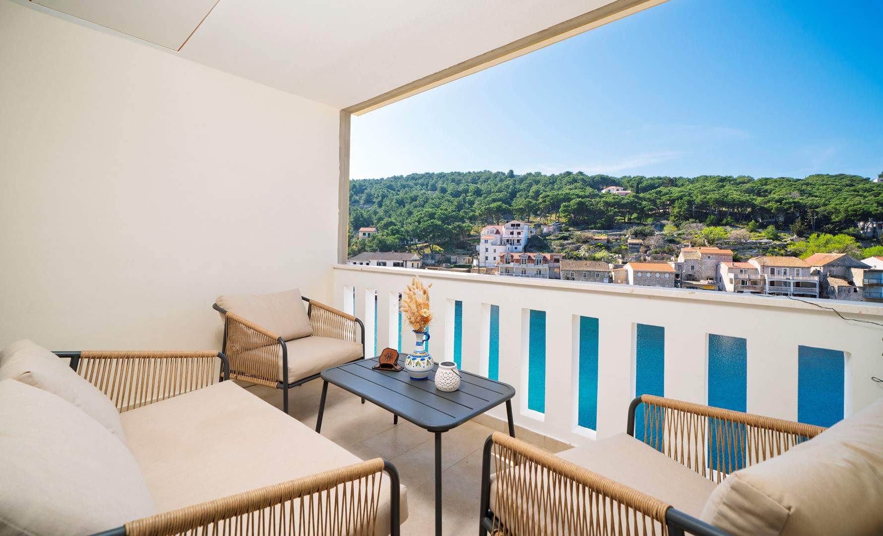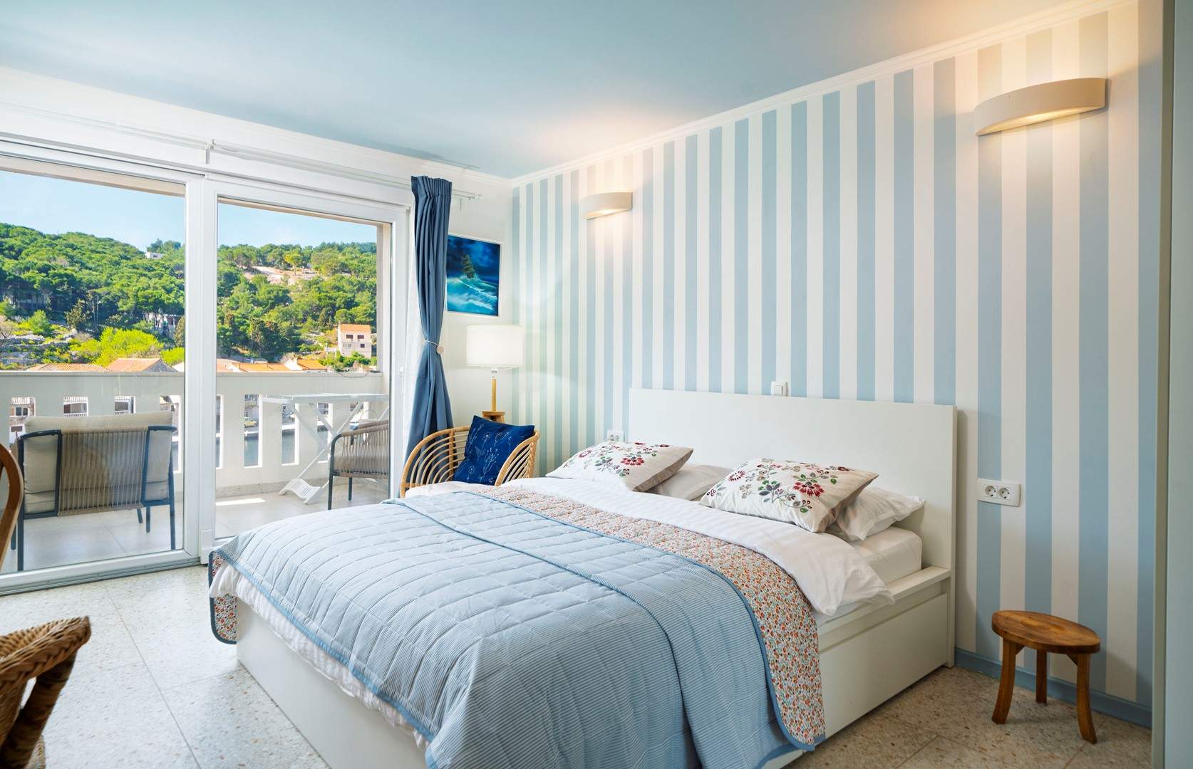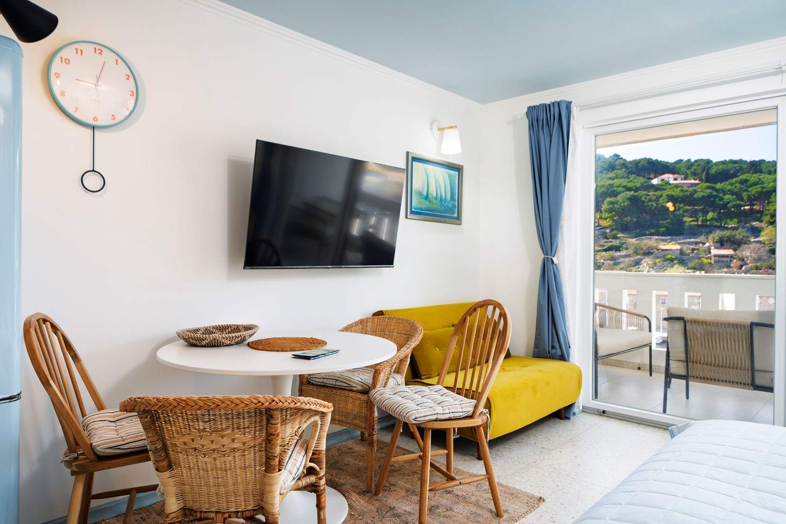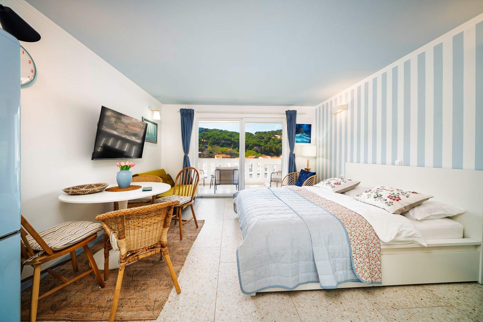 Studio apartman s pogledom na more nalazi se u slikovitom mjestu Uvala Muna na otoku Žirje, koji je ujedno najudaljeniji i najveći otok Šibenskog arhipelaga. Apartman je potpuno opremljen i pogodan za boravak od 2 do 3 osobe, a smješten je na svega 10 metara od mora i plaže, što ga čini idealnim izborom za goste koji žele uživati u neposrednoj blizini mora i mirnom otočnom okruženju. Studio apartman Nada A1 nalazi se na drugom katu kuće koja je raspoređena po etažama. U jedinstvenom prostoru nalazi se bračni krevet za dvije osobe, dok je dodatni ležaj osiguran sofom na razvlačenje koja je pogodna za treću osobu. Gostima je na raspolaganju potpuno opremljena kuhinja s blagovaonicom te kupaonica s tušem. Apartman također ima balkon s garniturom za sjedenje i prekrasnim pogledom na more. Za dulje boravke moguće je koristiti perilicu rublja, uz prethodni dogovor s vlasnikom. U vrtu kuće nalaze se roštilj, ležaljke te vanjski tuš koji gostima pružaju dodatnu udobnost tijekom boravka. Parking je osiguran ispred kuće.