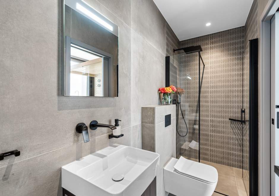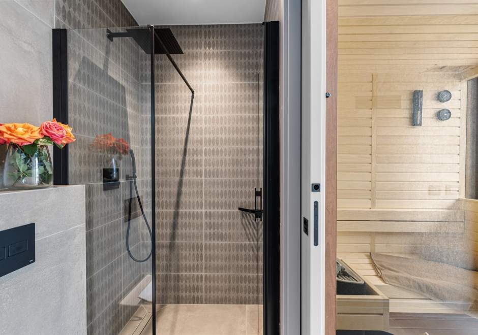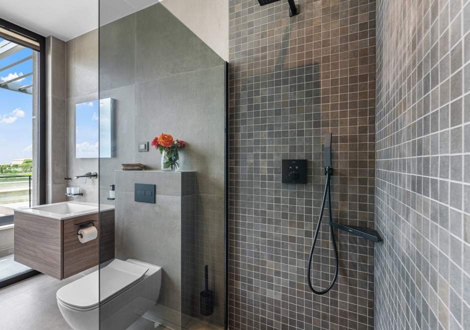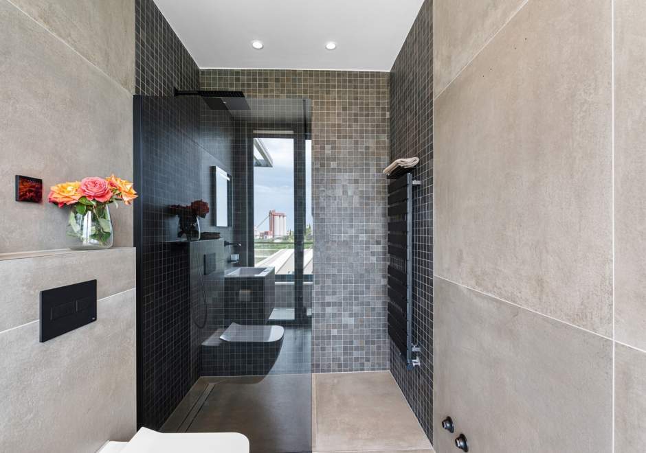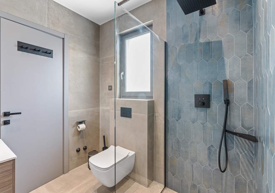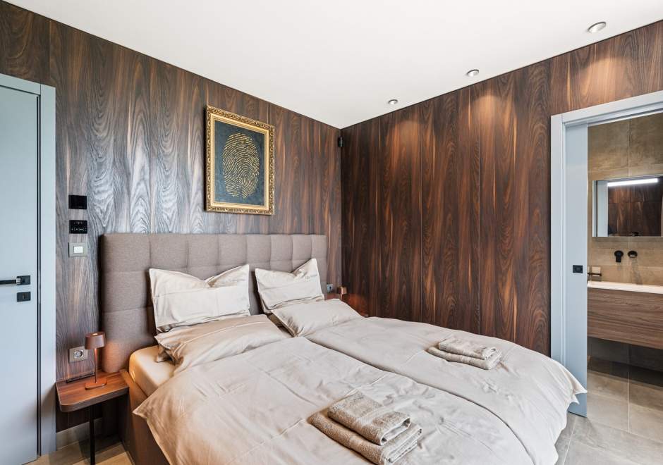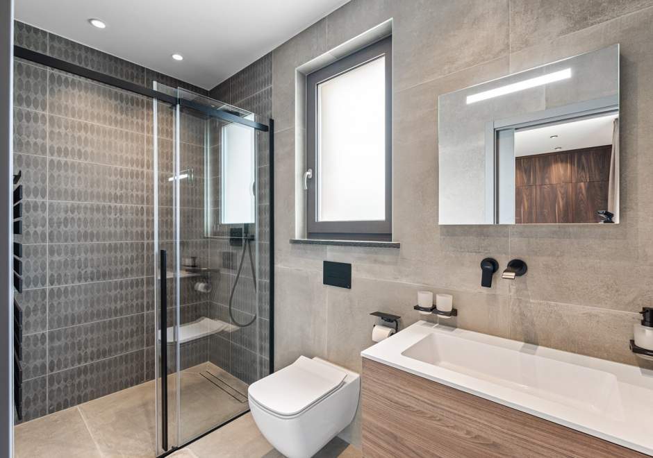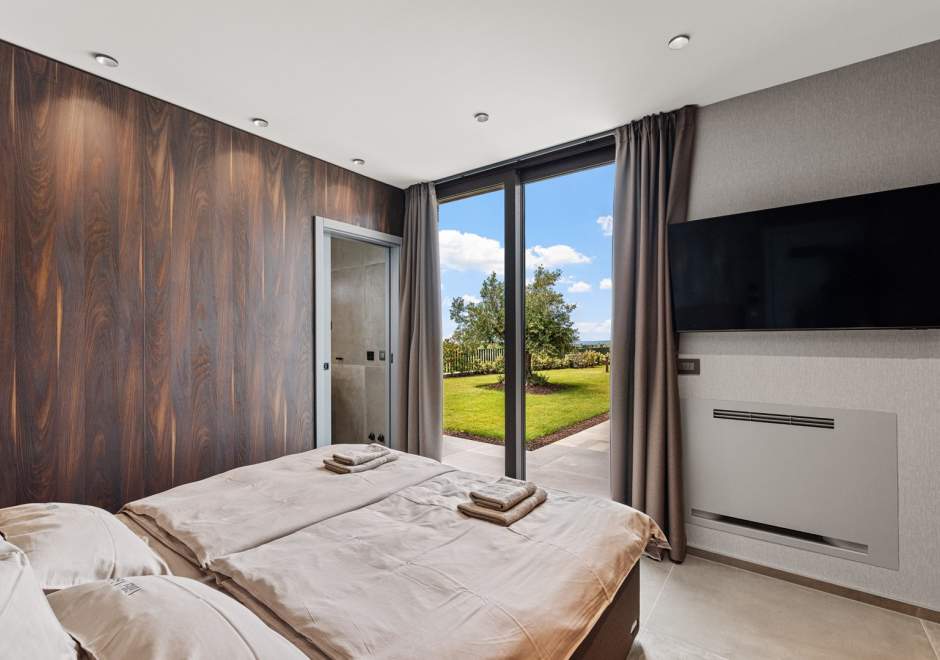 Na katu se nalaze tri elegantno uređene spavaće sobe, svaka s en-suite kupaonicom i izlazom na terasu. Master spavaća soba ističe se prostranom terasom s jacuzzijem i prekrasnim pogledom na more i istarski krajolik.