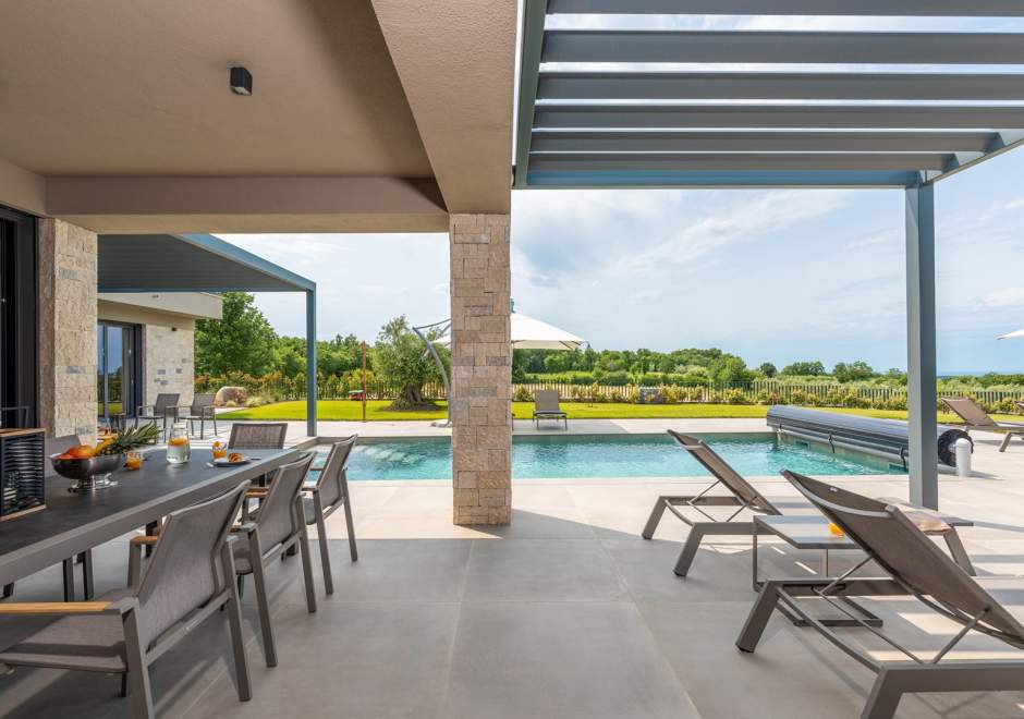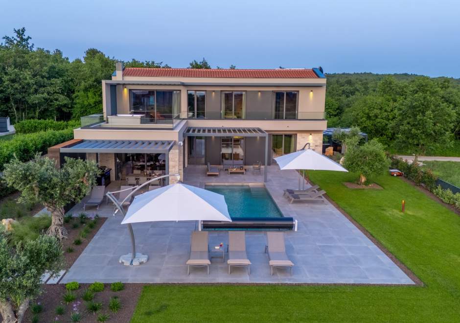 Smještena u mirnom mjestu Višnjan u srcu Istre, Villa Visignano pruža savršen spoj luksuza, udobnosti i moderne elegancije. Ova prostrana vila površine 230 m2 može primiti do 8 gostiju te se nalazi na potpuno ograđenom imanju od 1.144 m2, idealnom za miran i siguran odmor.
