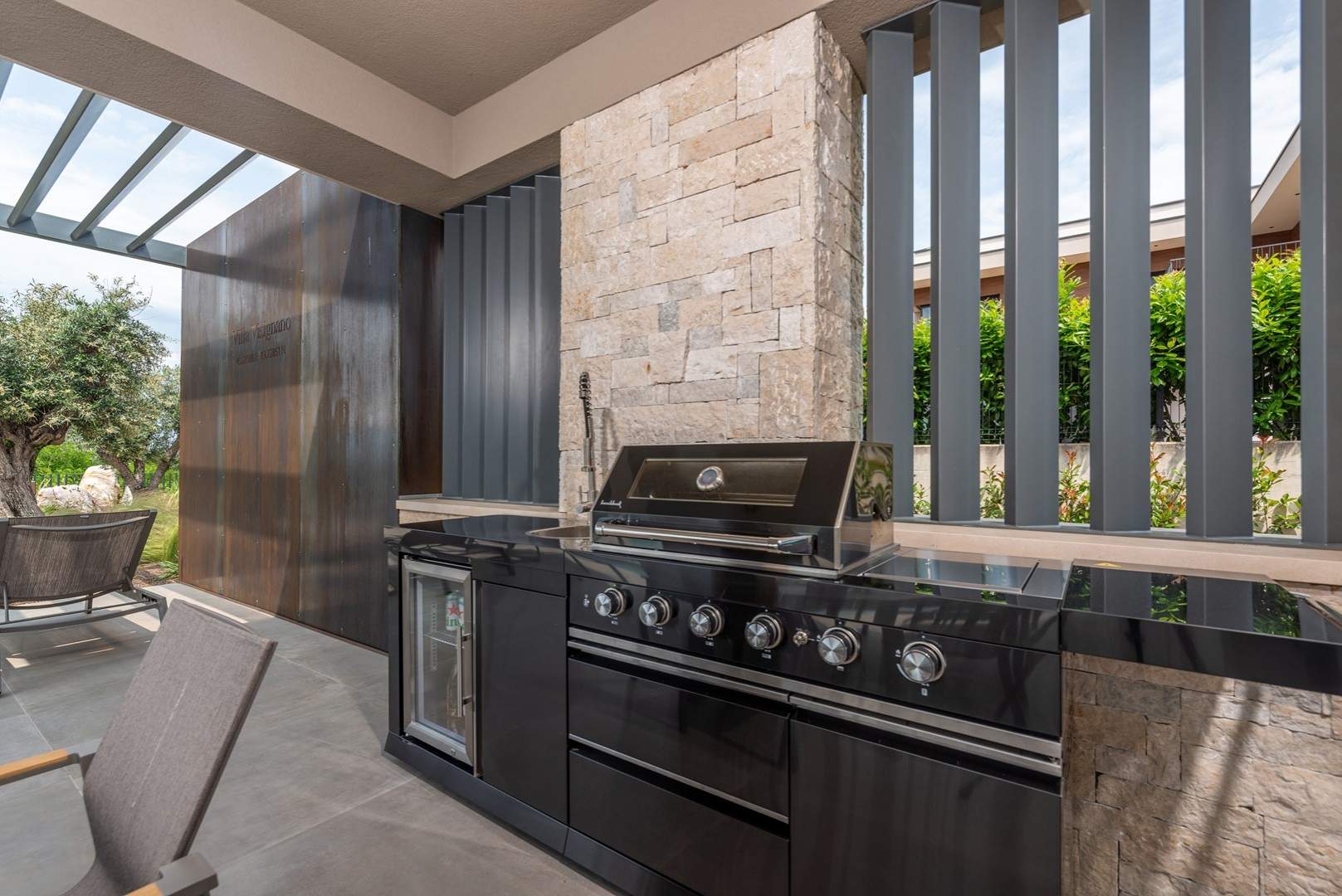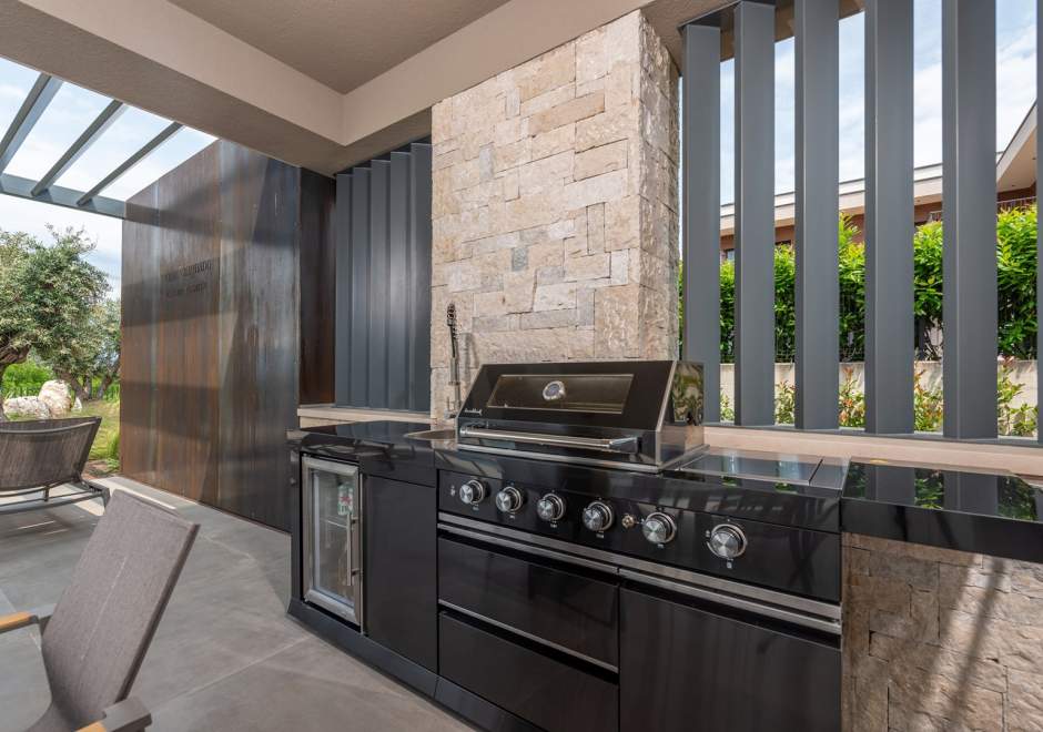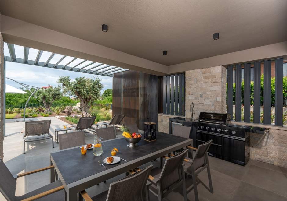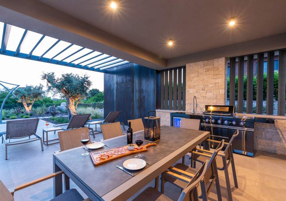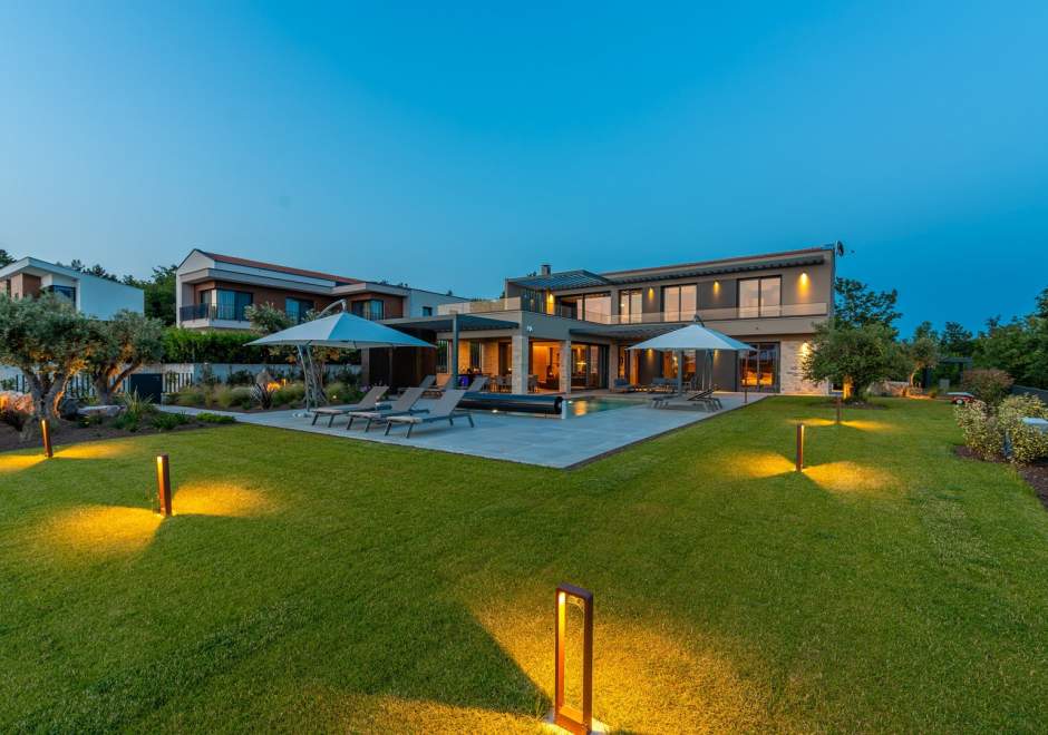 Vila je potpuno klimatizirana i opremljena podnim grijanjem, perilicom i sušilicom rublja, Smart TV-om u svakoj sobi, kao i besplatnim Wi-Fi internetom. Gostima su na raspolaganju 3 privatna parkirna mjesta, plinski roštilj, ležaljke i suncobrani.