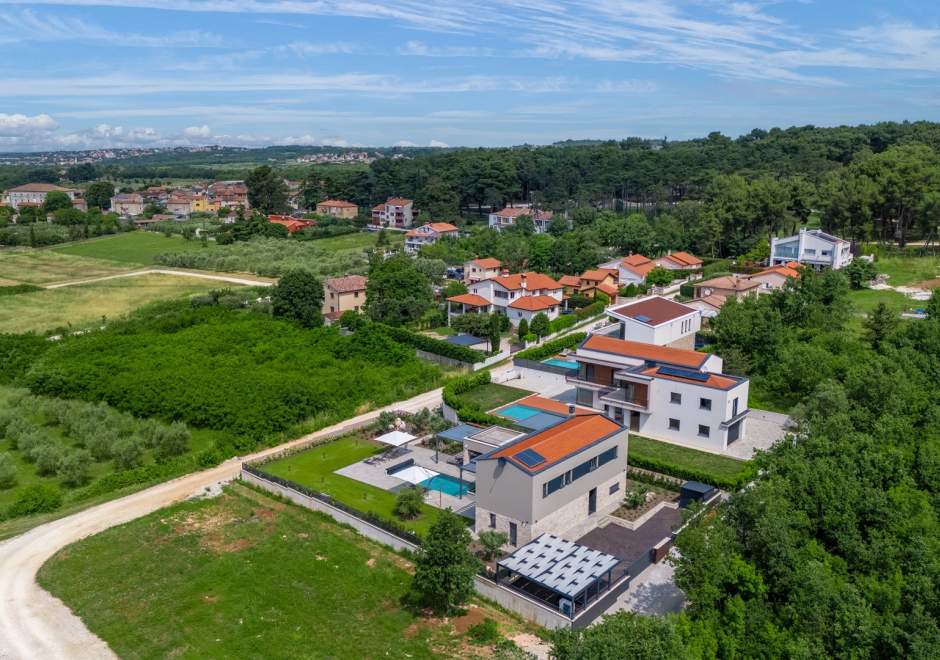 Smještena u mirnom i zelenom dijelu Višnjana, nekretnina pruža savršen bijeg od gradske vreve, a istovremeno je dovoljno blizu svih važnih sadržaja. Centar mjesta, s restoranima, trgovinama i kafićima, udaljen je samo nekoliko minuta hoda, što omogućuje jednostavan pristup lokalnoj ponudi bez potrebe za vožnjom. Okolica nudi brojne mogućnosti za ljubitelje prirode i aktivnosti na otvorenom: pješačke i biciklističke staze kroz istarsku unutrašnjost, vidikovce s prekrasnim panoramskim pogledom te vinograde i maslinike tipične za ovaj kraj. Višnjan je poznat po kulturnim i znanstvenim događanjima, uključujući astronomske manifestacije u Zvjezdarnici Višnjan, koja je svjetski poznata po otkrivanju asteroida. Plaže i morska iskustva dostupni su u obližnjim primorskim gradovima na udaljenosti od 12–15 km, uključujući Rovinj i Poreč. Ljubitelji gastronomije mogu uživati u autohtonim istarskim specijalitetima u restoranima u Višnjanu i okolici, dok su tržnice i lokalne delicije lako dostupne. Ova lokacija idealna je za goste koji žele spoj mirnog odmora, blizine kulturnih i zabavnih sadržaja te lakog pristupa moru i prirodi.