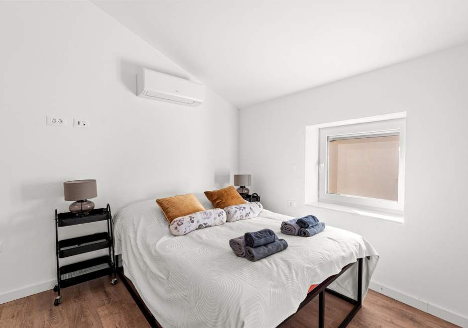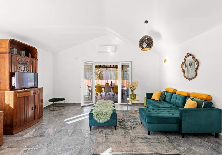 U mirnom mjestu Radini, nedaleko od Novigrada, Umaga i mora, smještena je udobna kuća za odmor idealna za obitelji ili prijatelje. Kuća može primiti do 6 osoba, a raspoređena je na prizemlje i kat. U prizemlju se nalazi prostrani dnevni boravak od 20 m2, mala ali praktična kuhinja, jedna spavaća soba te kupaonica s tušem i perilicom rublja. Na katu su smještene još dvije spavaće sobe i dodatna kupaonica. Poseban šarm pruža prostrana ograđena terasa, idealna za zajednička druženja, dok uređeni vrt poziva na opuštanje. Gostima je na raspolaganju i privatni parking. Zahvaljujući mirnoj lokaciji i blizini mora (7 km), ova kuća nudi savršen spoj mira, udobnosti i praktičnosti.