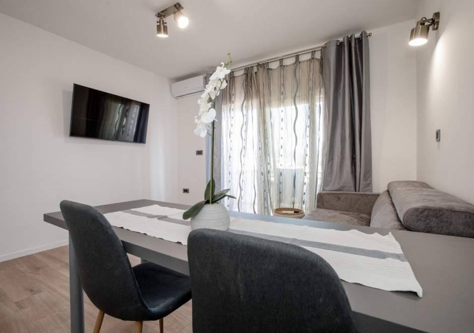 Bellissimo appartamento con vista mare situato a Palit, una cittadina vicino ad Arbe. Adatto a 4 persone, dista solo 50 metri dalla prima spiaggia. Questo appartamento climatizzato si trova al primo piano ed e composto da una camera da letto con letto matrimoniale e un divano letto aggiuntivo per altre 2 persone in soggiorno. E composto da una cucina completamente attrezzata (lavastoviglie, piano cottura, bollitore, frigorifero, forno a microonde), sala da pranzo, soggiorno e bagno con doccia. Durante il vostro soggiorno, potrete godervi la splendida vista dal balcone sorseggiando il caffe del mattino. Gli ospiti possono utilizzare il giardino e il barbecue in comune. Il parcheggio e disponibile di fronte alla proprieta. Con 30 spiagge sabbiose, Arbe e un'isola davvero felice con numerose piccole e pittoresche baie, che i turisti di tutto il mondo hanno riconosciuto quasi 125 anni fa, e ancora oggi, per il mare cristallino, caldo e poco profondo, ideale per tutta la famiglia.