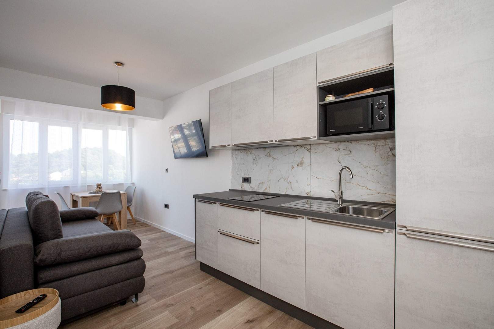 La casa vacanze Bolero si trova a Palit, sull'isola di Rab. La proprieta e situata in una posizione tranquilla, a soli 50 metri dal mare. L'appartamento Mare si trova al primo piano. L'appartamento dispone di una camera da letto con letto matrimoniale e un letto supplementare per altre persone in soggiorno, una cucina con lavastoviglie, un bagno con doccia e un balcone con una splendida vista mare. Tavoli da giardino e un barbecue sono a vostra disposizione. Le peculiarita dell'isola di Rab sono le spiagge rocciose della penisola di Frkanj e la spiaggia nudista di Kandalora. Il lungomare collega la casa Bolero alle spiagge vicine e all'incantevole centro storico di Rab, raggiungibile in dieci minuti a piedi lungo la passeggiata costiera. La posizione delle unita abitative e tale da offrire ai nostri cari ospiti la pace e la tranquillita di cui hanno bisogno durante le loro vacanze. Gli ospiti possono godersi lunghe passeggiate, andare in bicicletta, fare immersioni, pescare o correre. A dieci minuti a piedi dalla casa si trovano campi sportivi e da tennis, una stazione degli autobus e un centro commerciale (negozi, banca, panetteria, mercato, ristoranti).