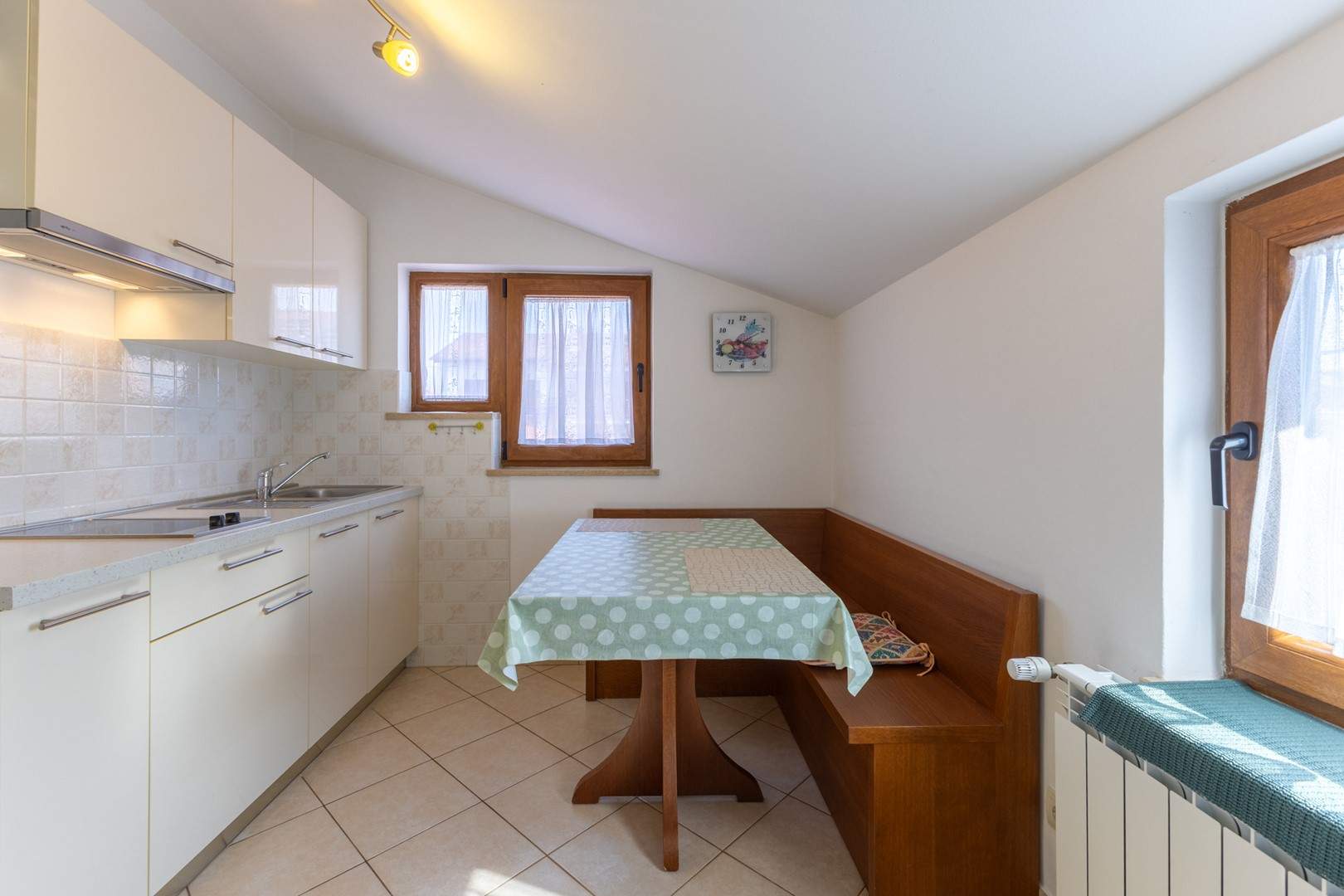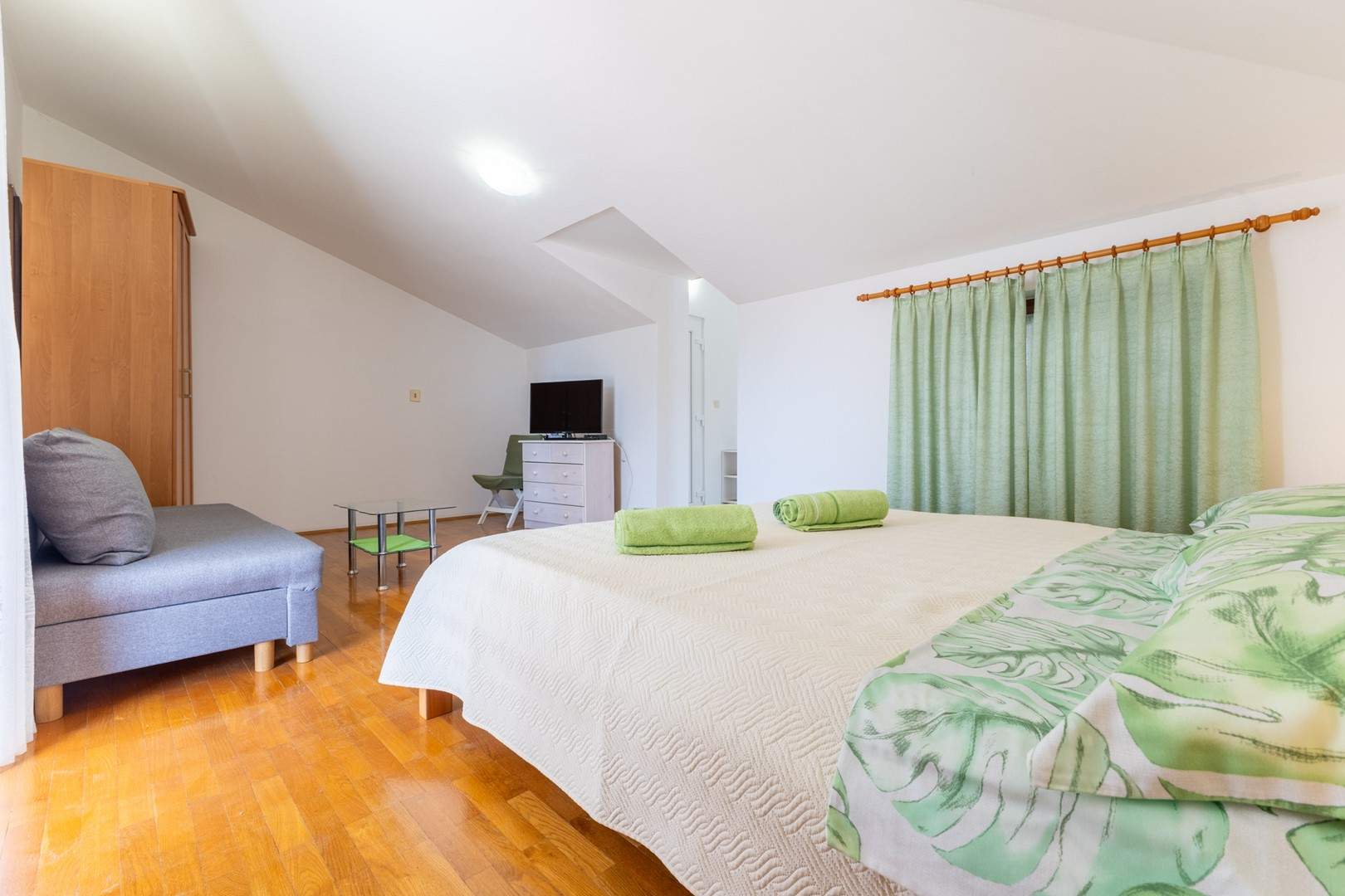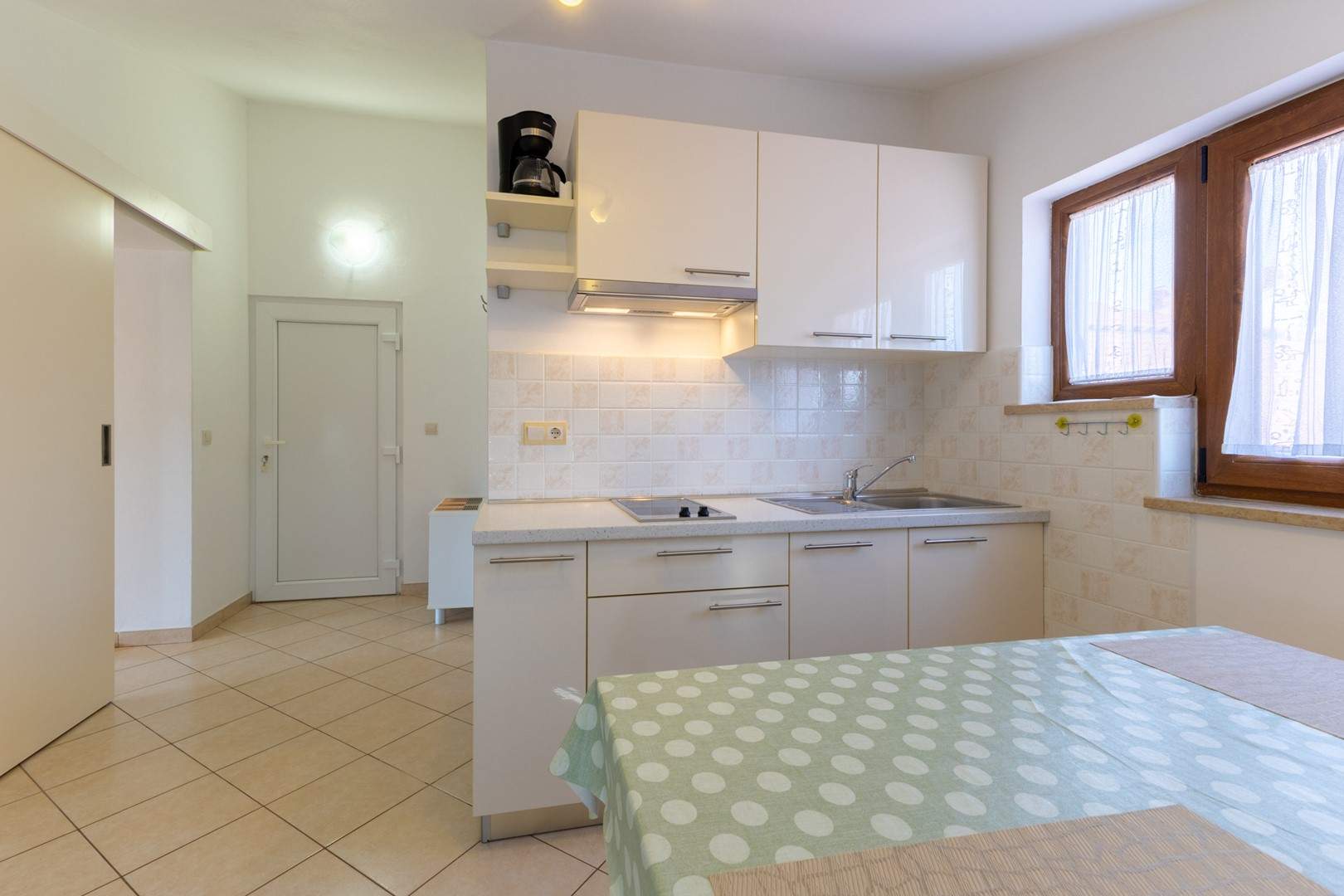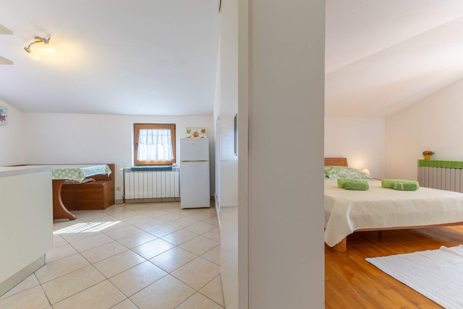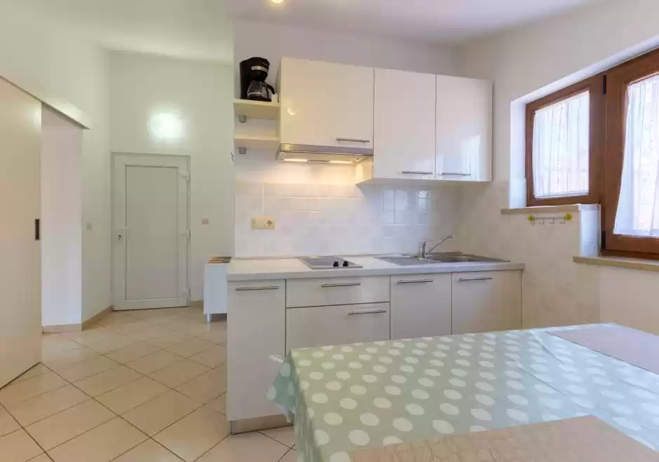Gli Appartamenti Grace si trovano in una zona tranquilla di Parenzo, all’interno di una casa familiare, e rappresentano la scelta ideale per una vacanza rilassante per coppie. La struttura offre tre appartamenti arredati con gusto – uno al piano terra e due al primo piano – ciascuno adatto ad ospitare fino a 2 persone. Tutti gli appartamenti dispongono di una confortevole camera da letto con letto matrimoniale, una cucina con zona giorno, un bagno con doccia e TV satellitare. Anche se gli appartamenti non sono dotati di aria condizionata, grazie all’ottimo isolamento garantiscono una temperatura piacevole durante i mesi estivi. La spiaggia piu vicina dista circa 450 metri, mentre il centro di Parenzo e raggiungibile con una piacevole passeggiata sul lungomare di circa 1 km. Nelle immediate vicinanze si trova anche un piccolo centro commerciale dove gli ospiti possono acquistare tutto il necessario per la vita quotidiana. Gli Appartamenti Grace sono la scelta perfetta per chi cerca tranquillita, vicinanza al mare e un’atmosfera piacevole durante il soggiorno a Parenzo.