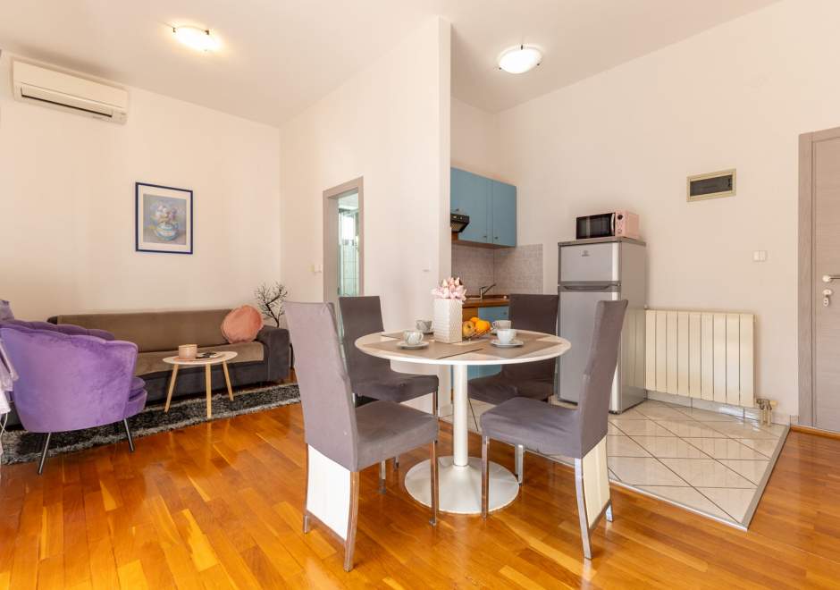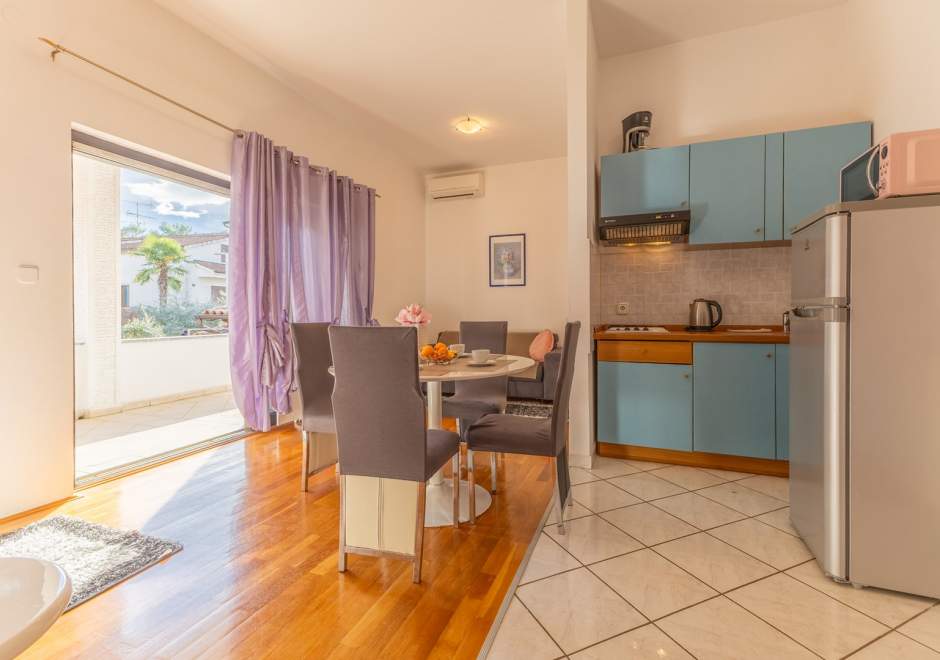 Questo monolocale al primo piano, parte di un'accogliente casa familiare, e perfetto per gli ospiti che cercano un soggiorno tranquillo e pratico vicino alla costa. E completamente attrezzato per un soggiorno piacevole e include aria condizionata, Wi-Fi gratuito e un posto auto riservato di fronte alla casa. La camera da letto ha un comodo letto matrimoniale, mentre il soggiorno offre un divano letto per altre due persone e un bagno con doccia. L'open space collega la cucina, la zona pranzo e un piccolo angolo relax, fornendo tutti gli elettrodomestici essenziali e tutto il necessario per un soggiorno confortevole. Dall'appartamento si accede a una terrazza coperta e al giardino in comune, attrezzato con barbecue e mobili da esterno, il luogo ideale per gustare il caffe del mattino o un drink serale rilassante. Il suo design semplice e funzionale rende questo appartamento un'ottima base per esplorare le attrazioni, le spiagge e i servizi locali nelle vicinanze.