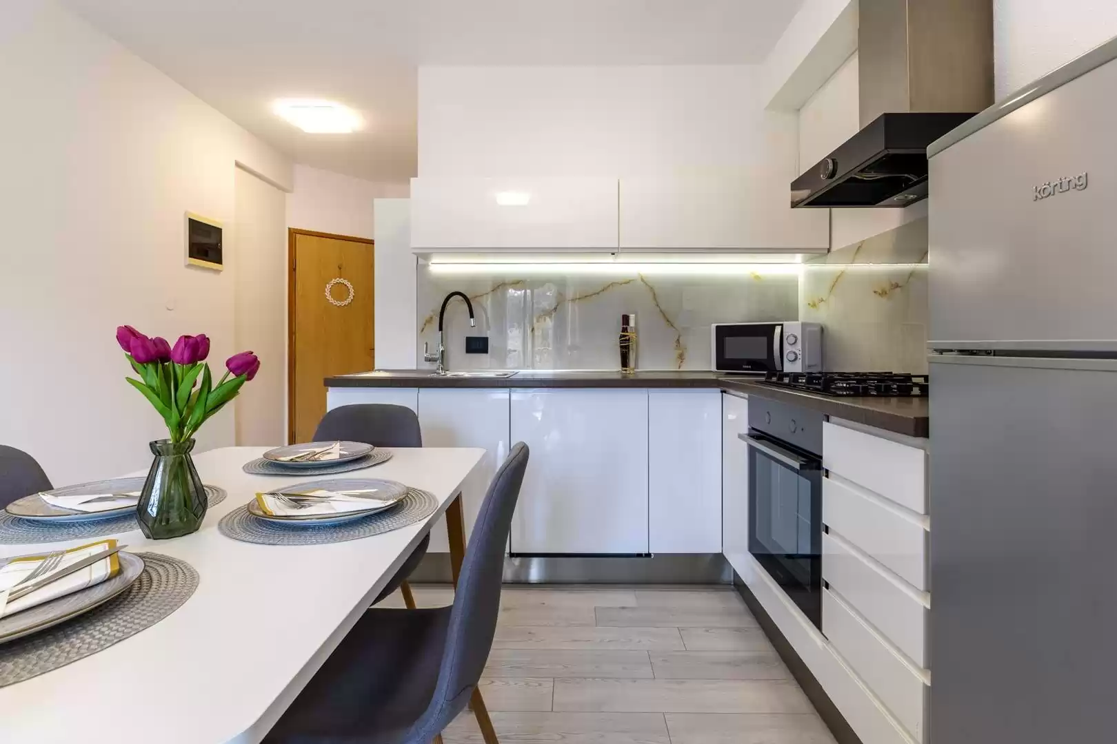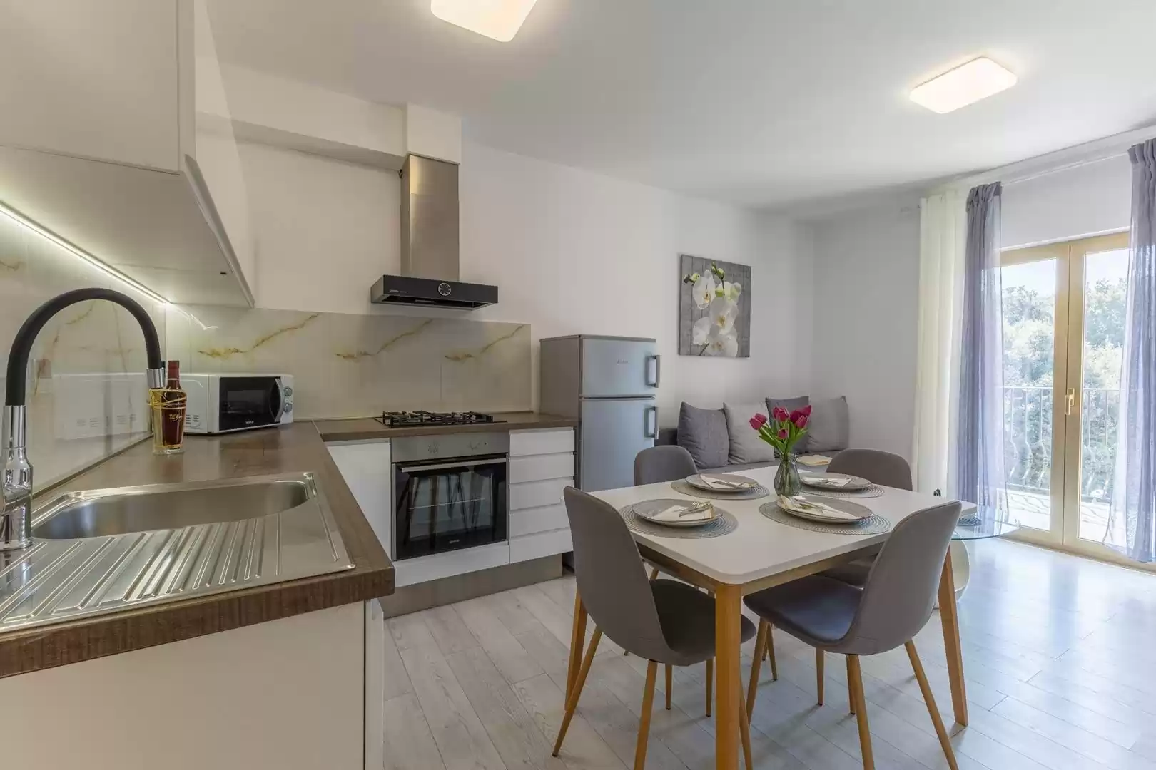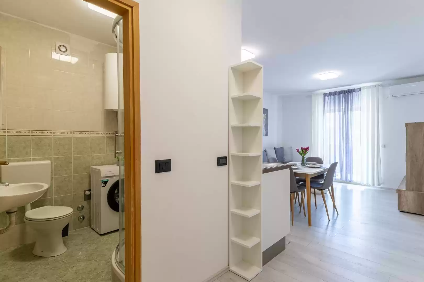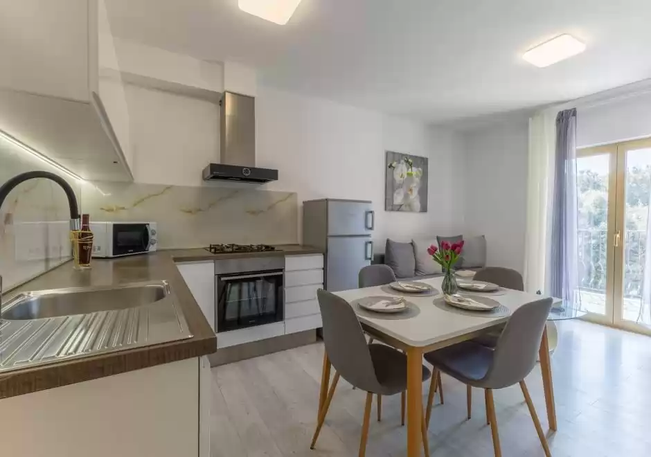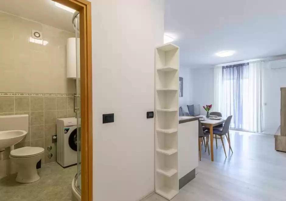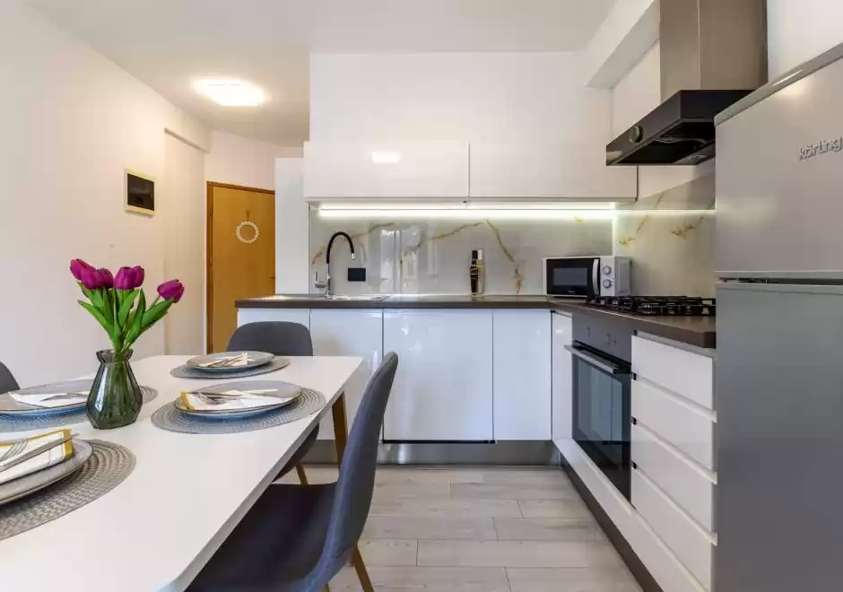 Gli ospiti hanno a disposizione una cucina completamente attrezzata con zona pranzo, un bagno con doccia e lavatrice, nonché un balcone perfetto per gustare un caffe al mattino o rilassarsi la sera. L'appartamento include anche un posto auto custodito. Il proprietario fornisce anche tessere per il parcheggio nel centro di Vrsar. Si trova a circa 1000 metri dal mare e a 800 metri dal centro di Vrsar, il che consente un facile accesso alle spiagge, ai ristoranti e a tutti i principali servizi, garantendo al contempo pace e privacy durante il soggiorno.