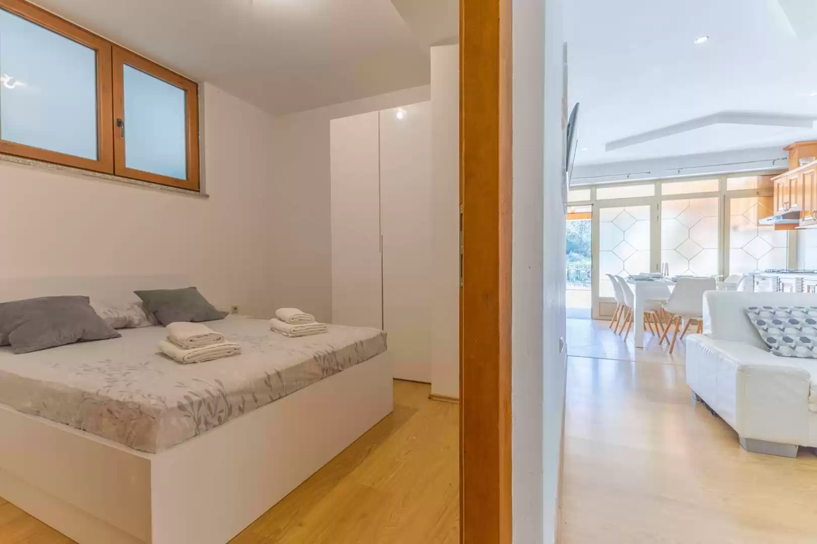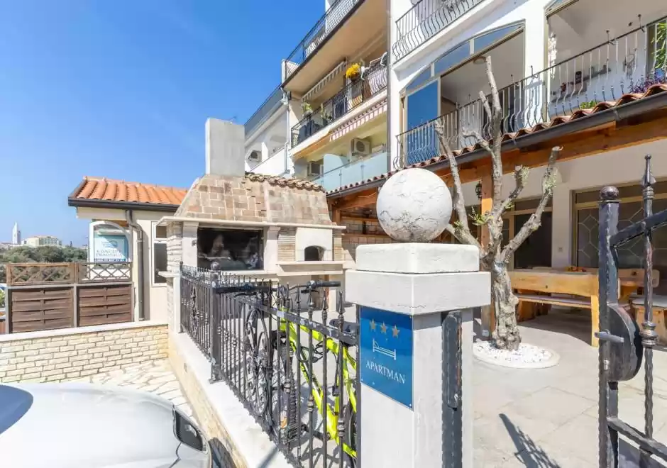 Questo accogliente appartamento a Vrsar si trova al piano terra ed e ideale per una vacanza in famiglia o un soggiorno con amici fino a 6 persone. E composto da tre comode camere da letto, due bagni, una cucina e un soggiorno che offre un'atmosfera familiare. Un vantaggio particolare dell'appartamento e l'ampia terrazza con barbecue esterno, perfetta per rilassarsi e godersi le calde serate con buon cibo e in compagnia. L'appartamento si trova in una posizione tranquilla, a soli 1000 metri dal mare e a 800 metri dal centro di Vrsar, il che consente un facile accesso a spiagge, ristoranti e tutti i servizi necessari. Gli ospiti hanno a disposizione un posto auto gratuito, che contribuisce ulteriormente a un soggiorno senza pensieri. Il proprietario fornisce anche tessere per il parcheggio nel centro di Vrsar.