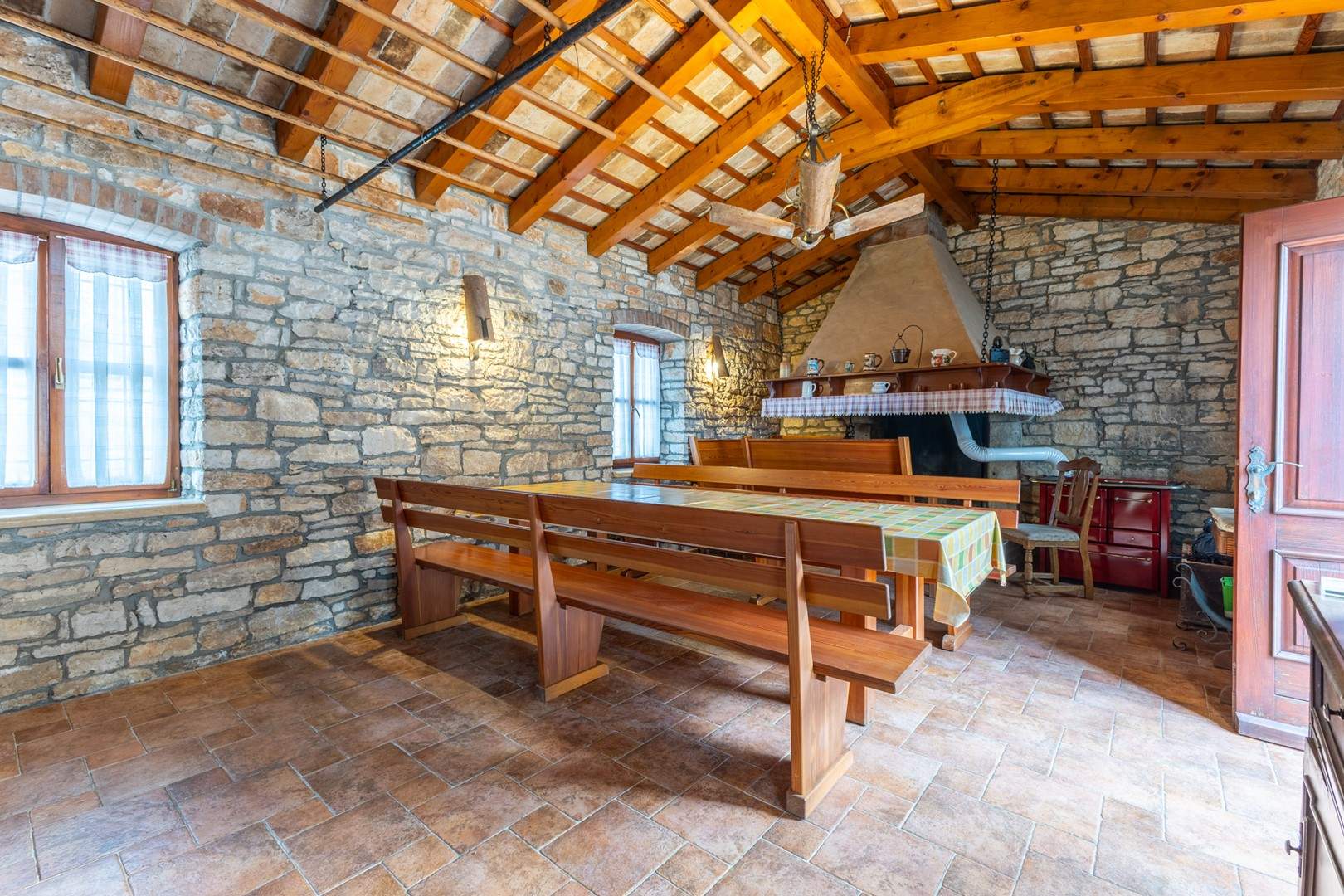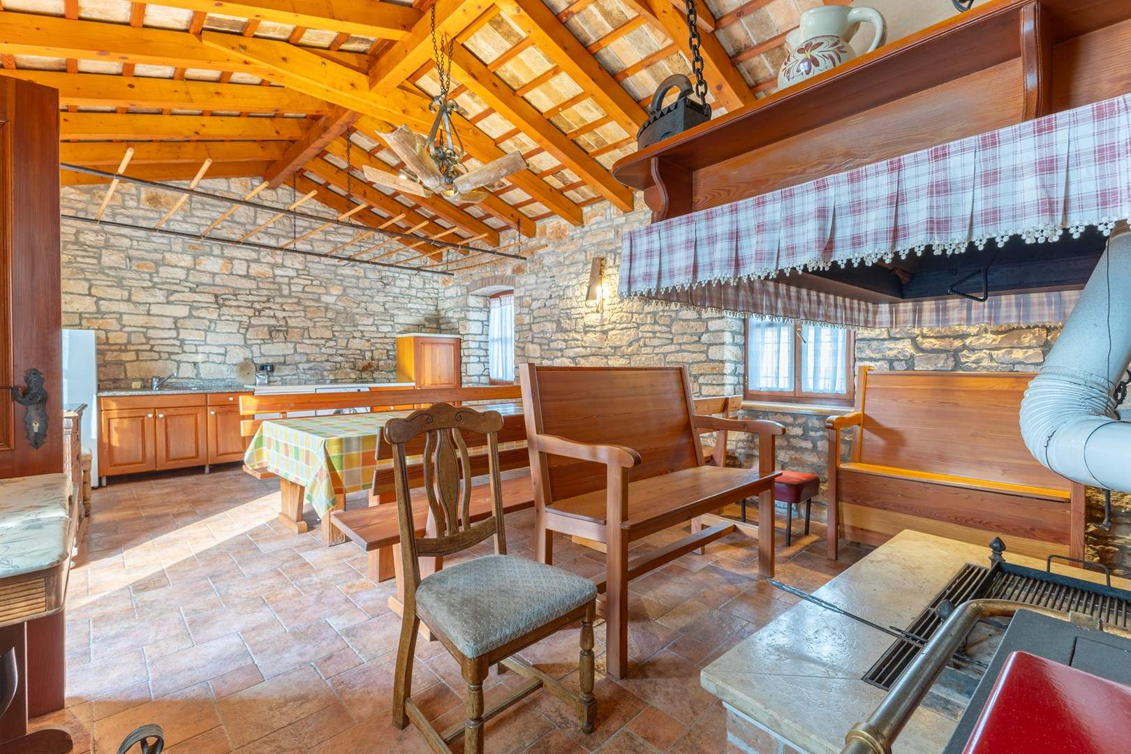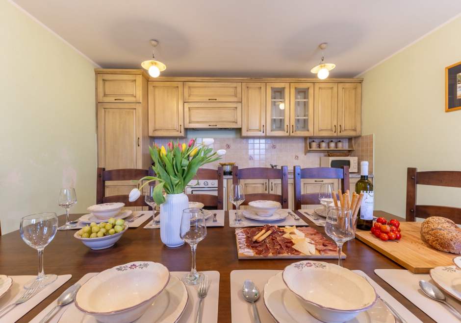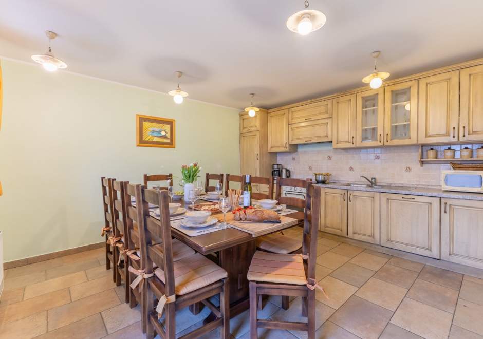 Questa affascinante casa in pietra, costruita nel 1870, coniuga perfettamente tradizione e comfort moderni grazie a un'accurata ristrutturazione effettuata nel 2009. Offre alloggio per un massimo di 10 persone, garantendo un soggiorno spazioso e piacevole in un ambiente autentico. La casa dispone di quattro camere da letto, diversi bagni e una cucina modernamente attrezzata con tutti gli elettrodomestici necessari per un soggiorno spensierato. Di particolare pregio e l'area esterna con un terreno naturale recintato di 400 m2, dove e disponibile una piscina di 24 m2 durante i mesi piu caldi, oltre a numerose dotazioni per il relax e il divertimento come barbecue, trampolino e attrezzature sportive. Gli ospiti hanno inoltre accesso a terrazze coperte, ideali per godersi l'aria aperta. La casa e dotata di internet, aria condizionata, camino e numerose dotazioni multimediali, il che la rende la scelta perfetta per una vacanza in famiglia o un ritrovo tra amici.
