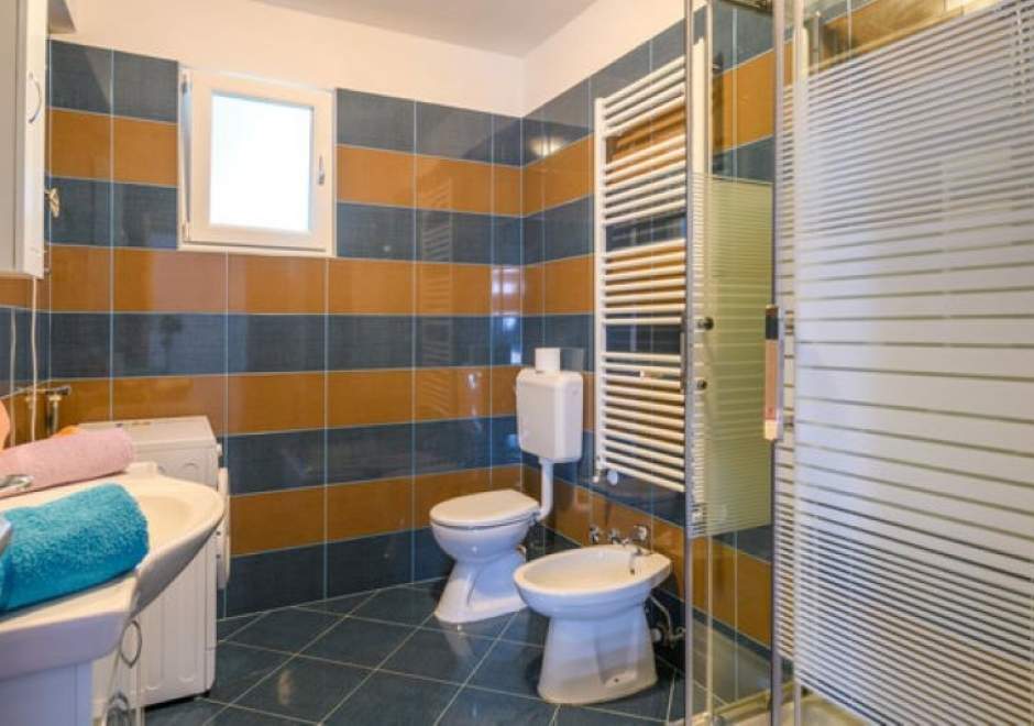 Situati a soli 2 chilometri dal centro citta, gli Appartamenti Paola rappresentano la scelta ideale per gli ospiti che cercano una combinazione di privacy, comfort e funzionalita. Sono disponibili due appartamenti completamente separati all’interno della stessa casa, rendendo questa proprieta perfetta per famiglie numerose o gruppi di amici che desiderano soggiornare insieme mantenendo i propri spazi. La casa viene affittata interamente, garantendo cosi la massima privacy durante il soggiorno. Il primo appartamento si trova al piano terra e si estende su 120 m2. E composto da tre camere da letto – due con letto matrimoniale (160 x 200 cm) e una con due letti singoli (90 x 200 cm), due bagni, una cucina completamente attrezzata con soggiorno e una spaziosa terrazza esterna ideale per il relax. Il secondo appartamento si trova al piano superiore, con una superficie di 70 m2, ed e composto da due camere da letto – una con letto matrimoniale (160 x 200 cm) e una con due letti singoli (90 x 200 cm), un bagno, un WC separato, una cucina con soggiorno e una terrazza privata. Ogni appartamento dispone di un ingresso indipendente, garantendo comfort e autonomia. Gli ospiti hanno a disposizione l’intera casa, assicurando completa privacy. Durante il periodo invernale la piscina non e disponibile, ma e presente una vasca idromassaggio esterna per un massimo di 5 persone, con temperatura fino a 40°C, perfetta per rilassarsi. La casa e molto spaziosa e offre un soggiorno confortevole anche per gruppi piu numerosi. Si prega di notare che feste con musica ad alto volume non sono consentite e i gruppi giovani sono accettati solo su richiesta.