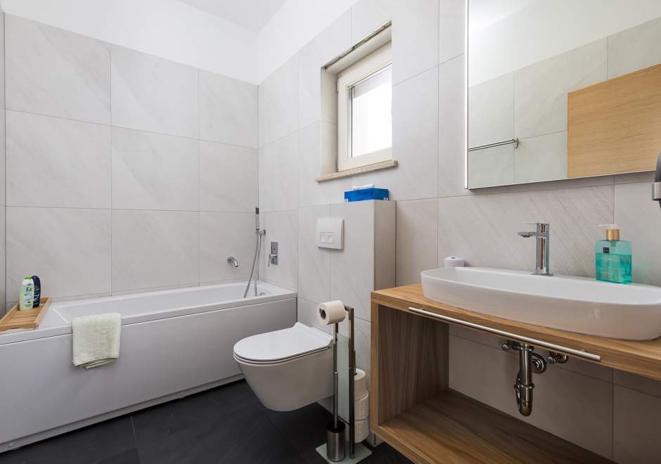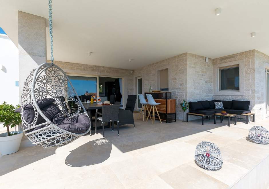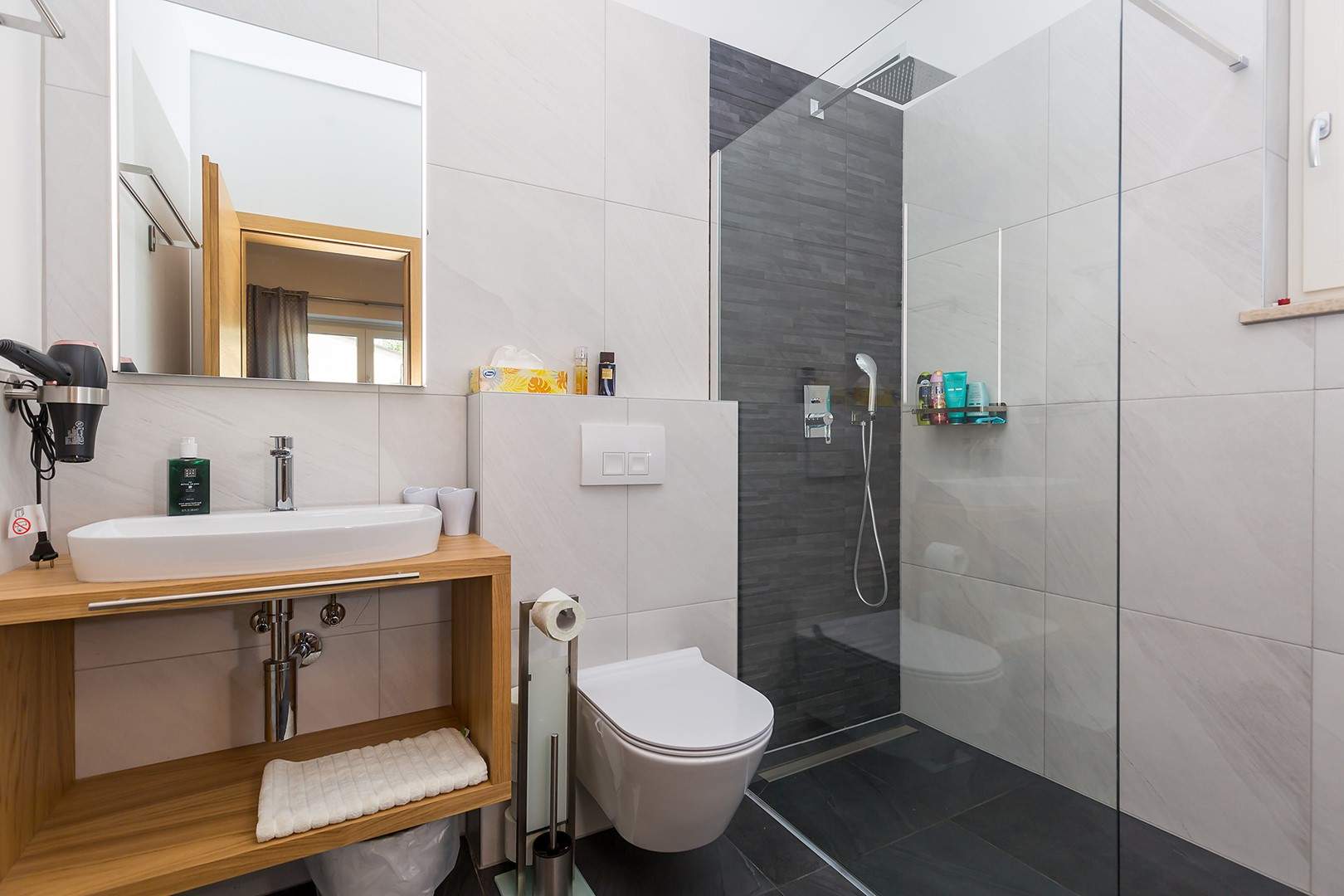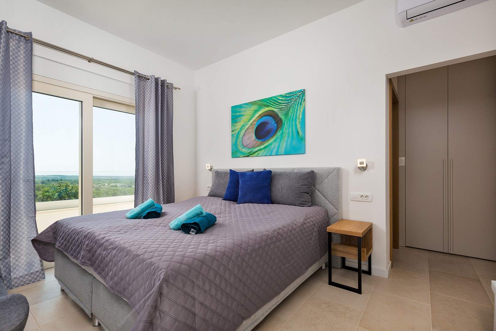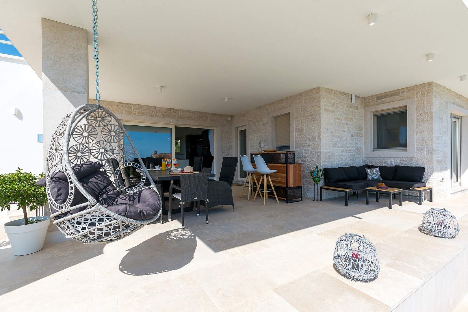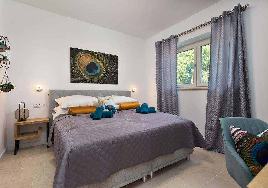 Elegante casa vacanze con piscina privata nel villaggio di Kastelir, vicino a Parenzo, ideale per 8 persone. Dopo una lunga giornata in spiaggia, rinfrescati nella piscina privata di 10 x 4 metri. Diversi ombrelloni offrono una piacevole ombra durante il peggior caldo di mezzogiorno. Se fa troppo caldo, puoi rinfrescarti comodamente nella doccia esterna. Tre gradini conducono alla terrazza, dove le persone si incontrano per un pasto insieme. I maestri della griglia possono preparare piatti sostanziosi sulla griglia mobile. L'interno spazioso della casa offre comfort e intimita su 243 m2 e due livelli abitativi. Il soggiorno e modernamente attrezzato in modo da poter guardare la TV o leggere in un'atmosfera elegante. TV satellitare con canali tedeschi e disponibile. Accanto si trova la zona pranzo, dove 8 ospiti possono riunirsi attorno al tavolo da pranzo. La cucina spaziosa e luminosa offre un piano cottura a gas, un forno elettrico, una lavastoviglie e un forno. Al piano terra si trovano due moderne camere matrimoniali con guardaroba e accesso alla terrazza e un bagno con doccia. Nella parte alta della casa c'e un soggiorno e una cucina, oltre a un secondo terrazzo, anch'esso arredato. Anche in questo caso, gli ombrelloni obbligatori, cosi da poter mangiare all'aperto anche a mezzogiorno. Le due restanti camere da letto sono al primo piano. Ogni camera ha il proprio bagno. La lavatrice resta a tua disposizione. Ogni camera dispone di aria condizionata. Non sono ammesse feste o eventi simili. Gli animali non sono ammessi.