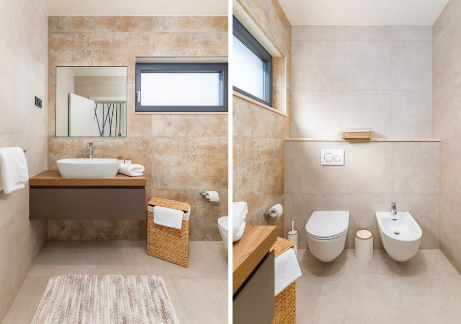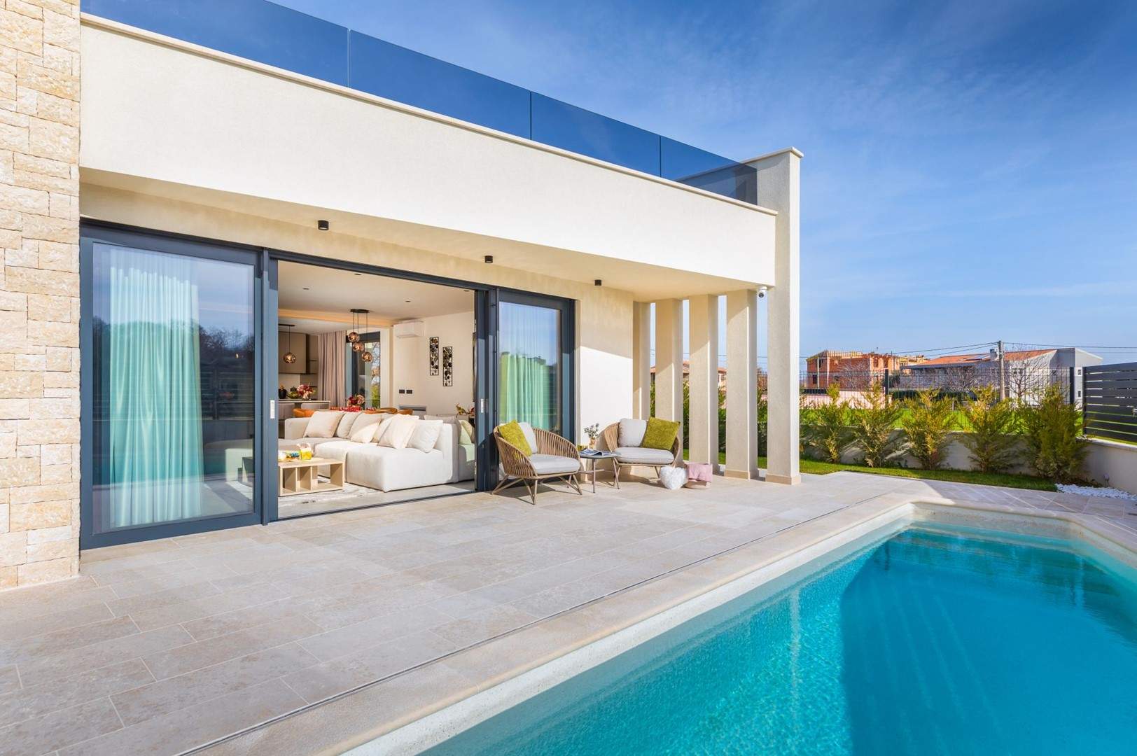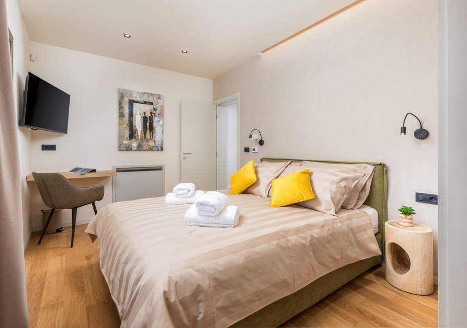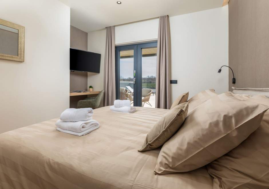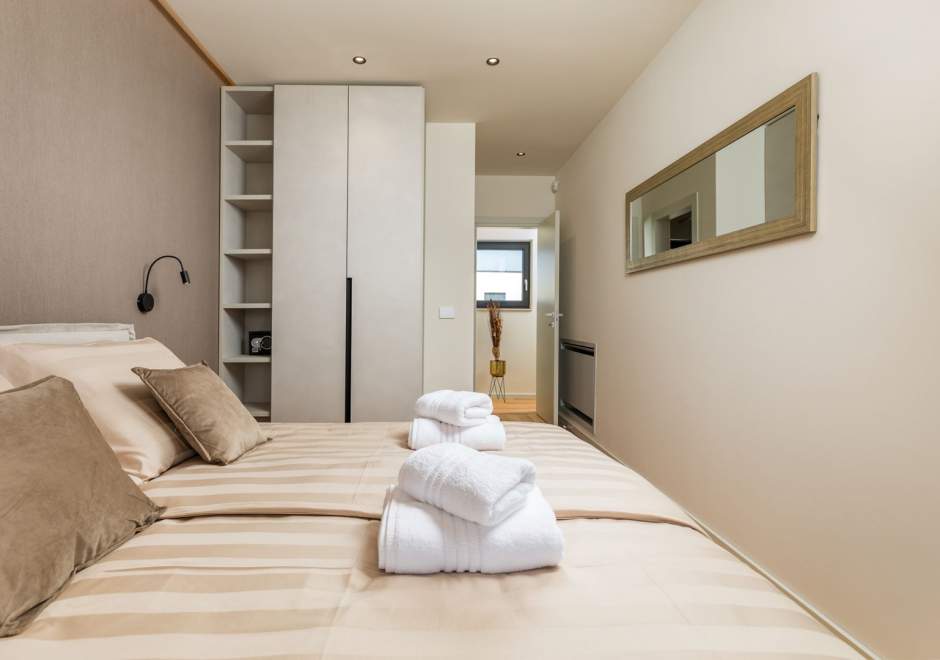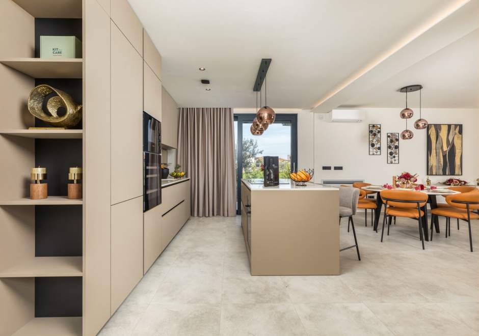 Situata alla periferia di Parenzo, Villa Pelin offre un soggiorno tranquillo e lussuoso vicino a spiagge e attrazioni. Sorge su un terreno di 600 m² con vista sul verde ed è arredata con mobili di alta qualità ed elegante design. Al piano terra si trovano soggiorno open space con TV, cucina completamente attrezzata, zona pranzo con accesso al giardino e alla piscina, una camera matrimoniale con bagno privato e TV, WC separato e lavanderia. Al piano superiore due camere matrimoniali, ciascuna con bagno privato e TV, con accesso a un ampio balcone con pergola e jacuzzi. All’esterno piscina privata, giardino, cucina esterna, zona pranzo, barbecue elettrico e parcheggio per due auto.