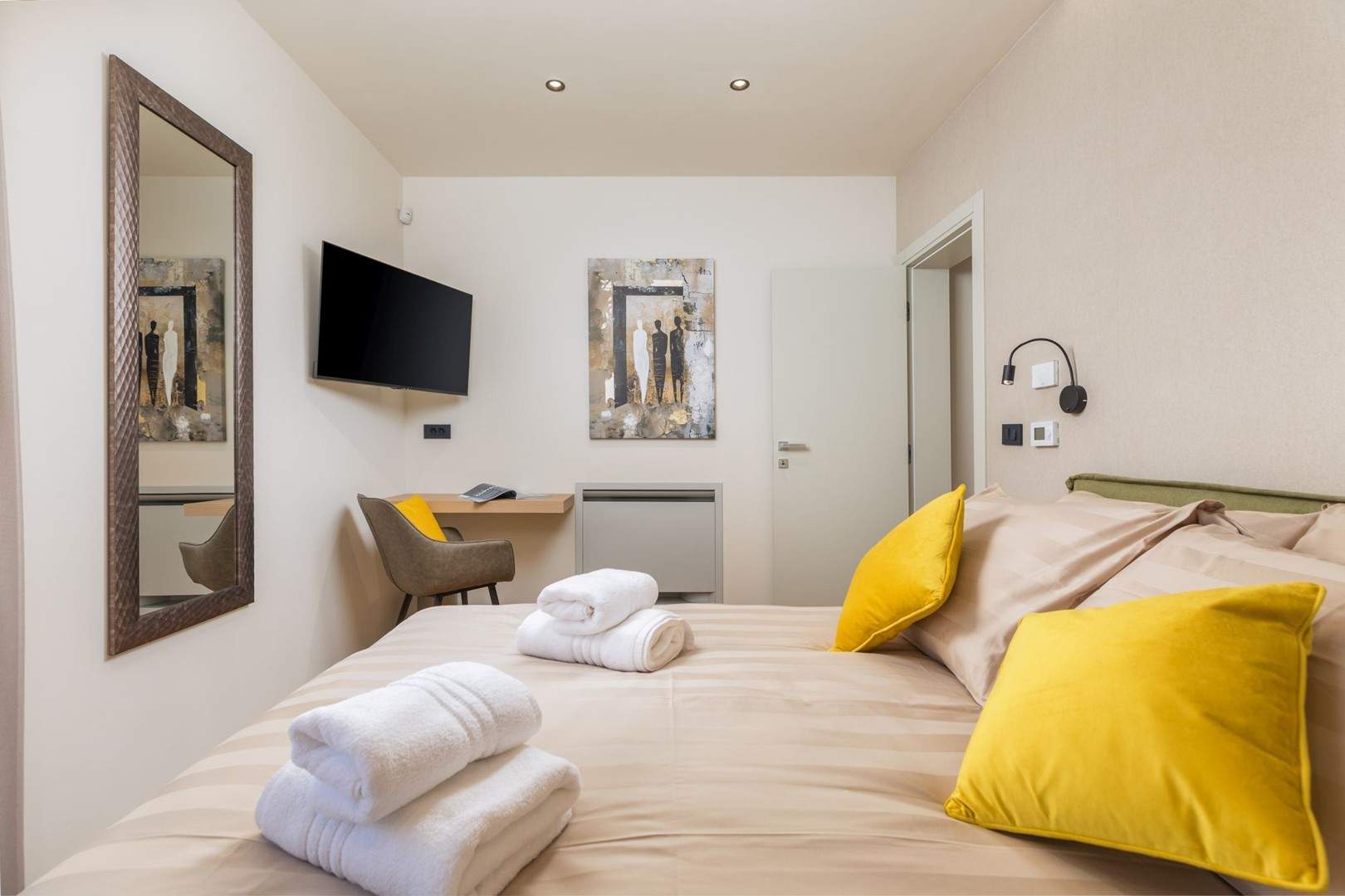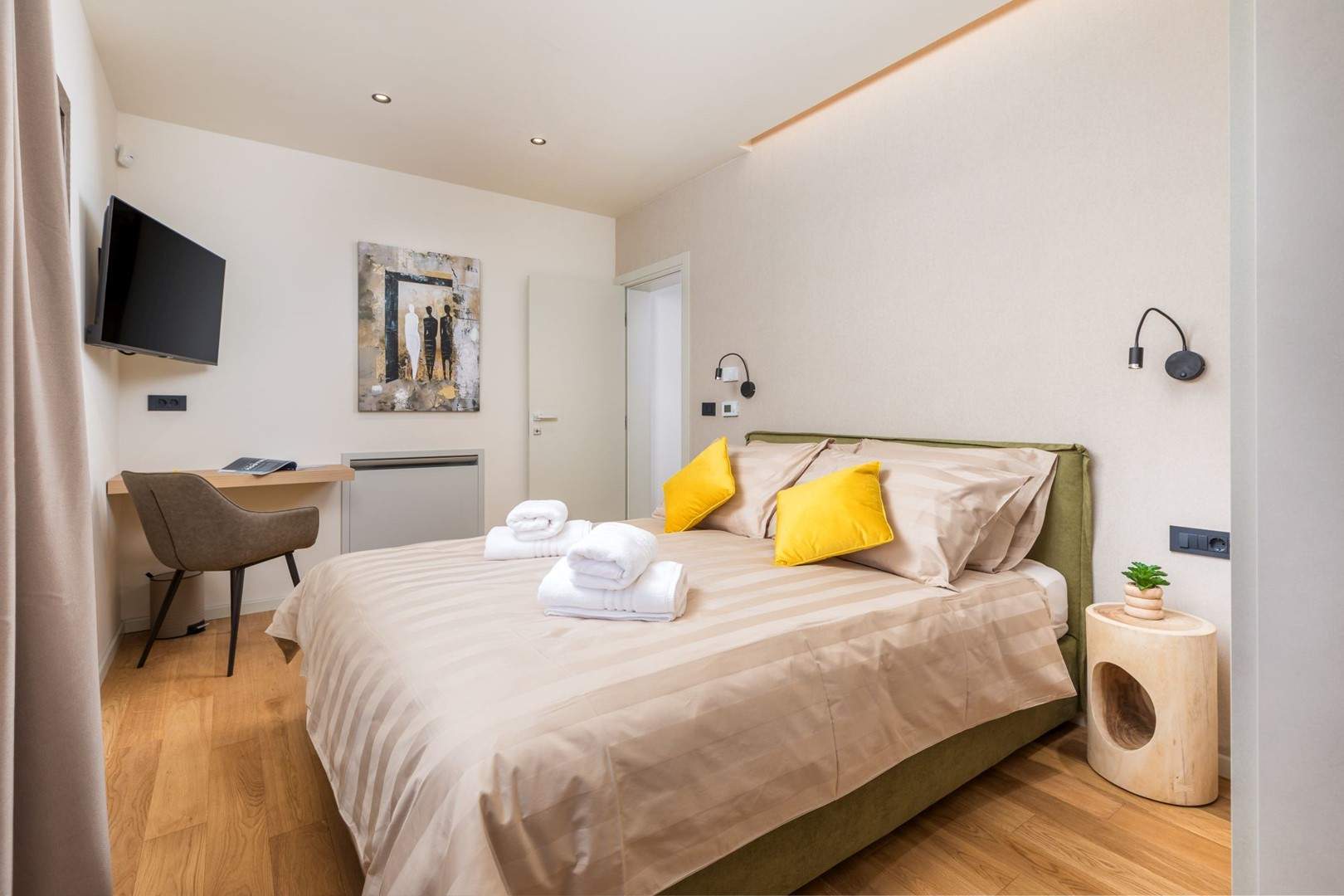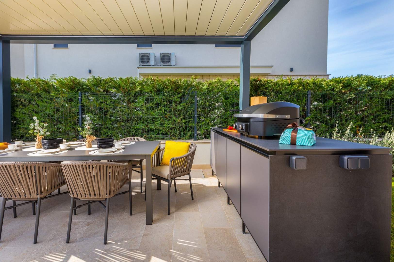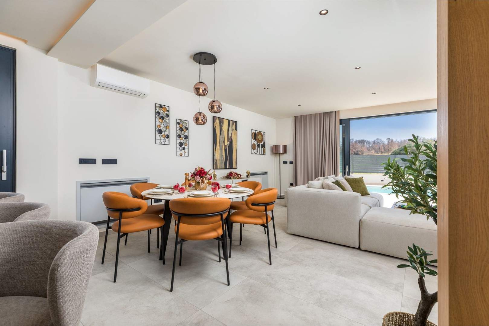 Situata alla periferia di Parenzo, Villa Pelin offre un soggiorno tranquillo e lussuoso vicino a spiagge e attrazioni. Sorge su un terreno di 600 m² con vista sul verde ed è arredata con mobili di alta qualità ed elegante design. Al piano terra si trovano soggiorno open space con TV, cucina completamente attrezzata, zona pranzo con accesso al giardino e alla piscina, una camera matrimoniale con bagno privato e TV, WC separato e lavanderia. Al piano superiore due camere matrimoniali, ciascuna con bagno privato e TV, con accesso a un ampio balcone con pergola e jacuzzi. All’esterno piscina privata, giardino, cucina esterna, zona pranzo, barbecue elettrico e parcheggio per due auto.